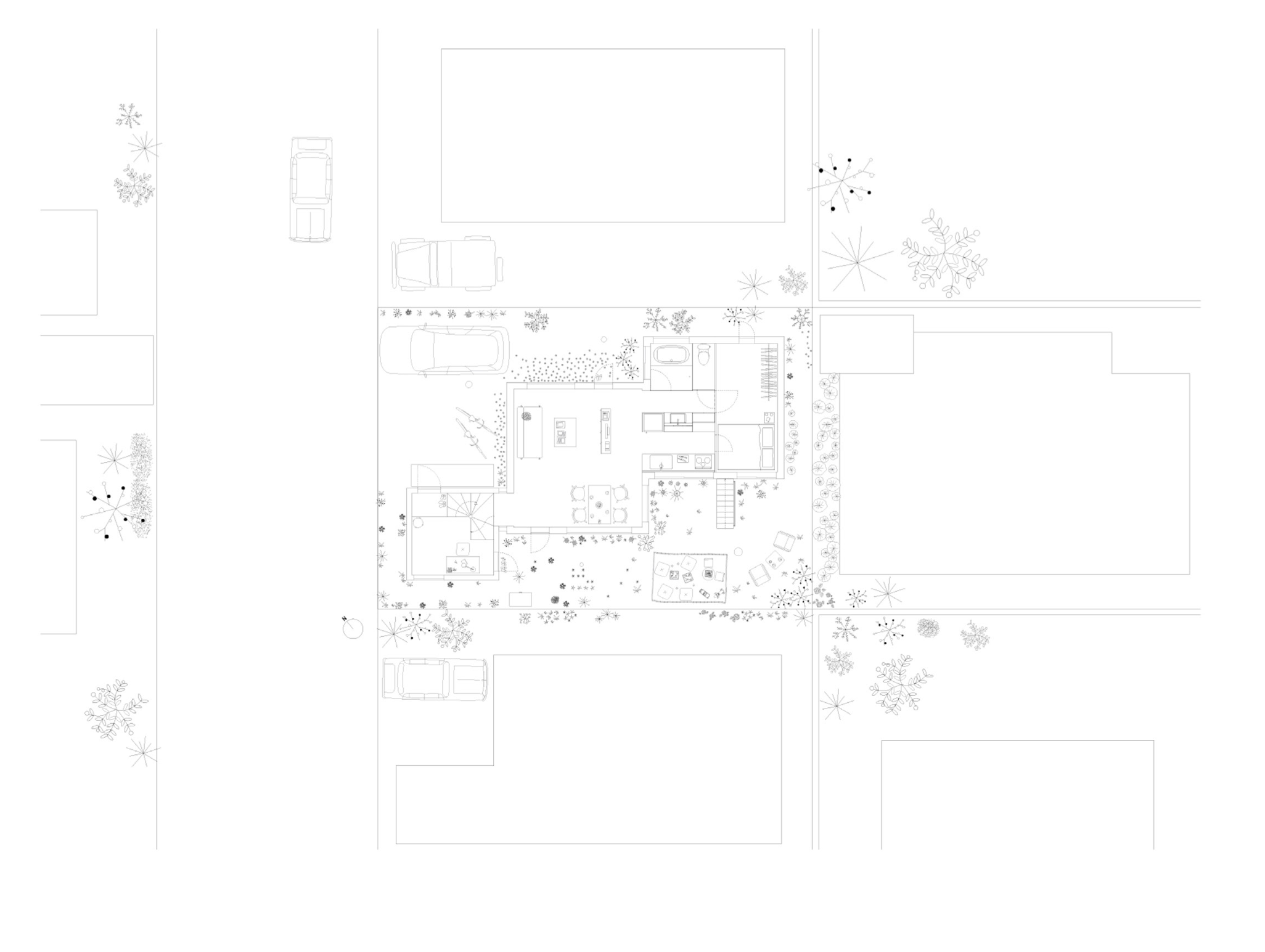 In the spaces left open to sunlight by this design, neighbors plant greenery, yards find connection, and site boundaries begin to fade. I have slightly changed the concept of ownership and created a condition somewhere between public and private. This approach, I felt, would best realize the advantages posed by clustered living.