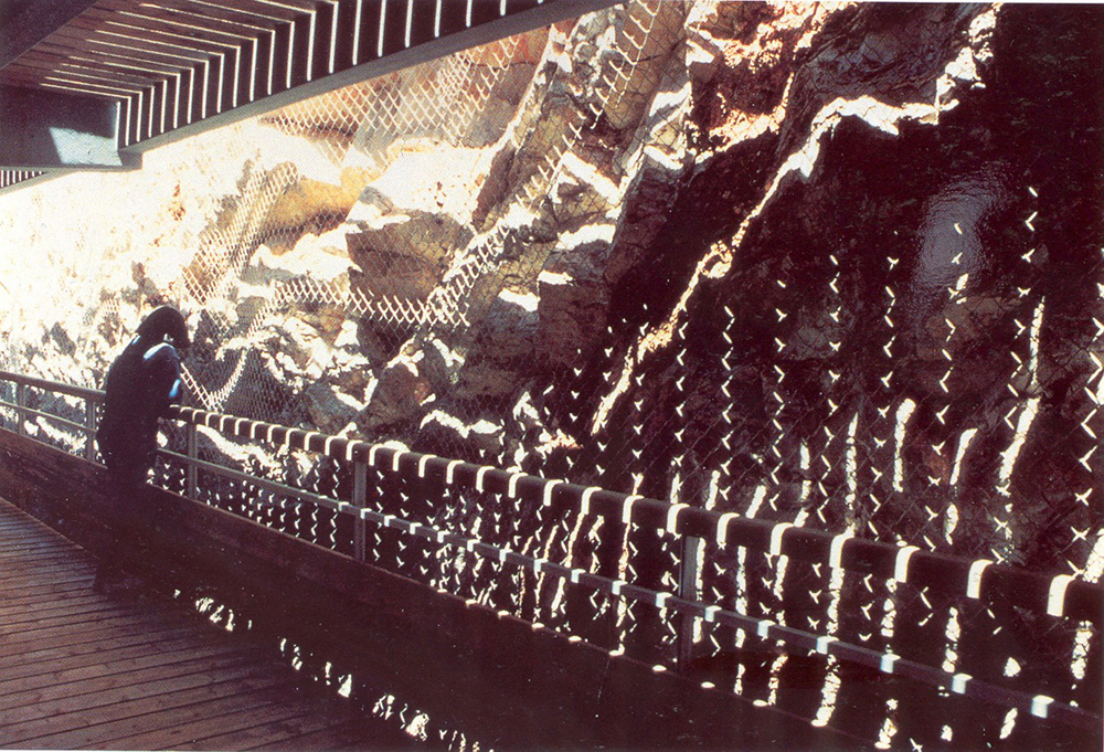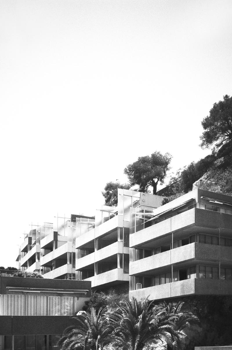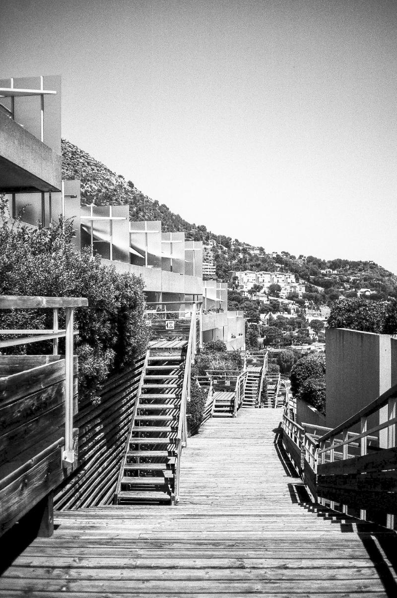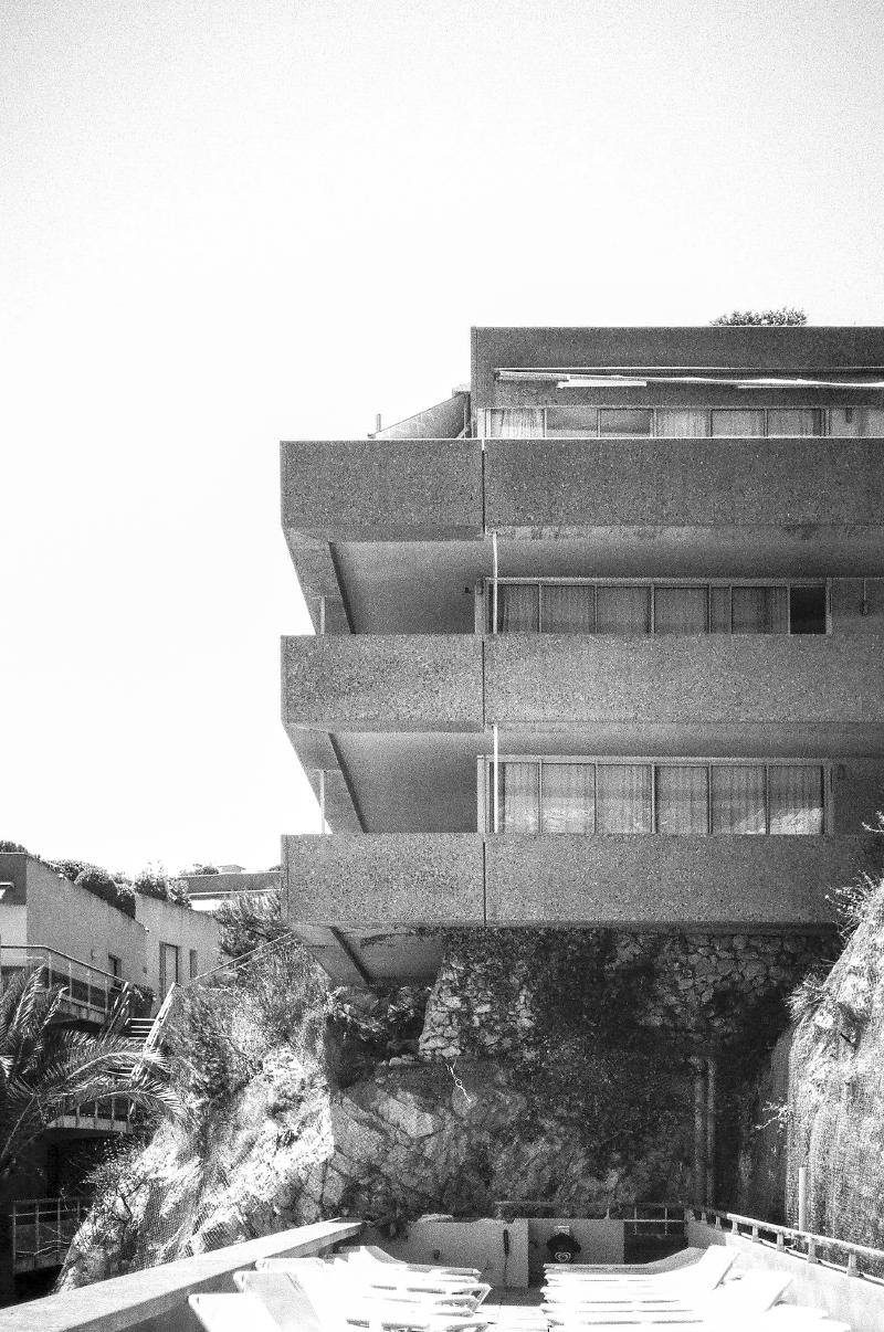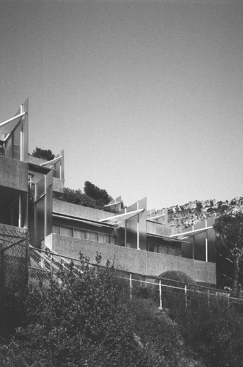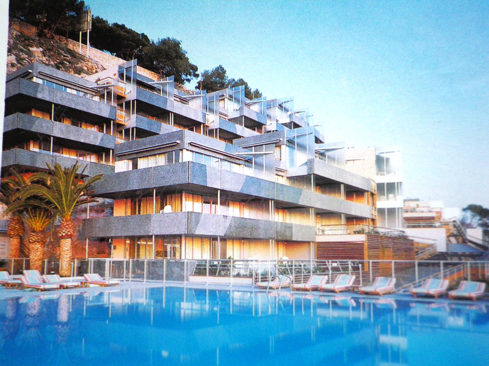 Seen from the inside, the architecture of the garages hollowed out of the rock, lit by long horizontal slits, is crypt-like. Yet with the CinemaScope view of the landscape from each apartment, it is panoramic. It seeks to be restful, serene, and immutable in the simplicity of its contours and the harmony of its materials – polished marble stone, which, whether in shadow or sunlight, calls out to be touched. The thickness of the medium, the freshness related to its mass and to the depth of space create an impression of architecture engraved in the rock, a recollection, an awareness of what architecture has always been: a shelter, a strategic place from which to face time and the elements.