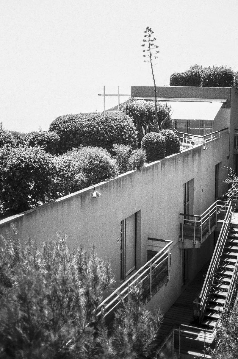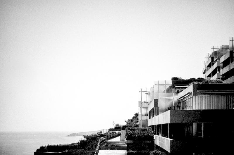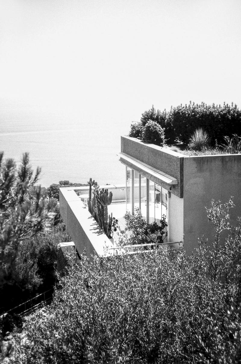 The site? It’s steep. Rocky. Partly hollowed out by a quarry. Almost a cliff. Pine trees and agaves cling to its surface between the rocks, on the slope overlooking the sea. Architecture also clings to it. It lodges itself deep down, reinforcing the cracks in the rocks. It is mineral. It is minimal. Made out of the simplicity of polished rock – reconstituted in actual fact. It plays on shiny and matt surfaces – affirmations of simple, rhythmic volumes – and on the disappearance of these in the rock, behind the pines, beneath the loose stones and aloes.