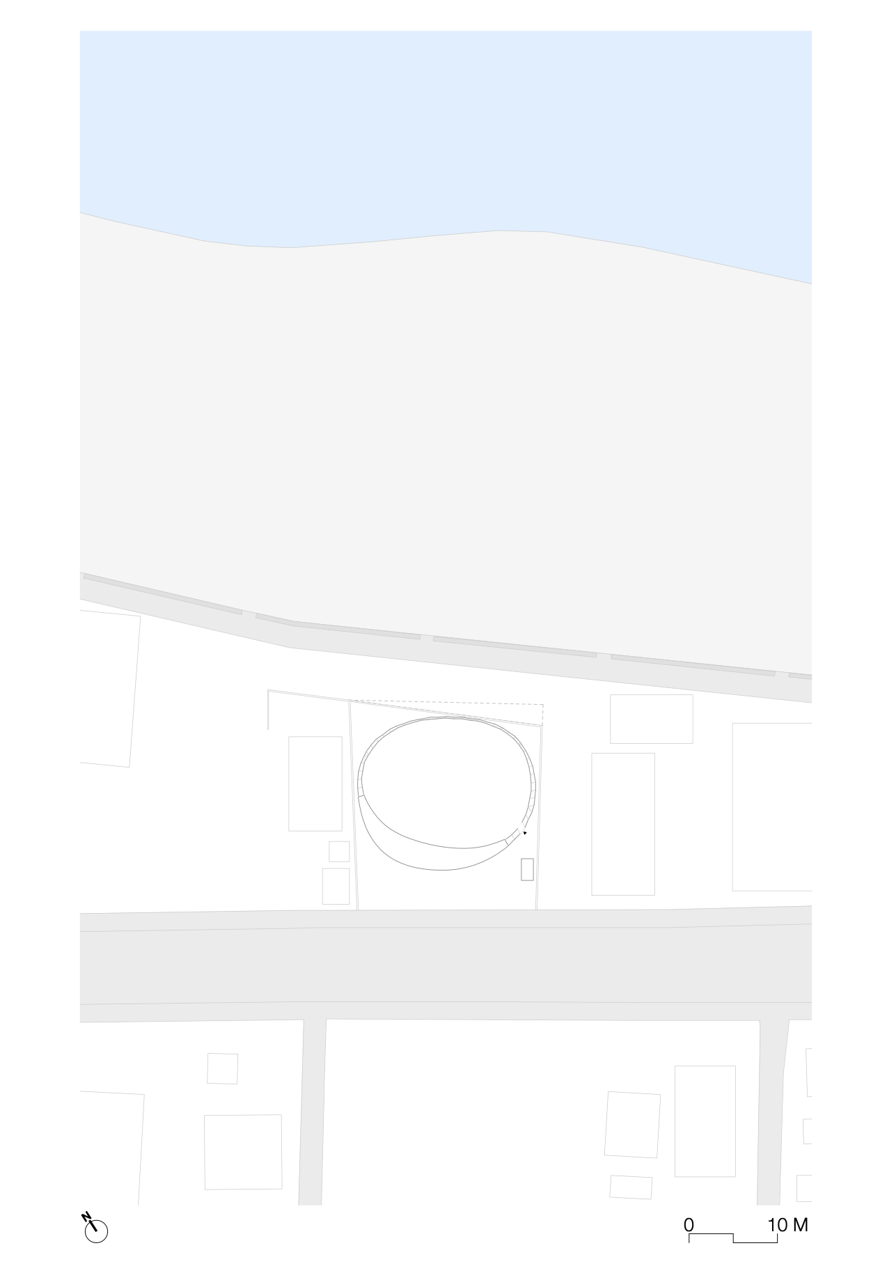 The circular form enhances the ambiguity of the site boundaries, which is characteristic of coastal settings, reinforcing a sense of territory defined by the architecture. Over time, the spaces formed by trees and small plants will expand beyond this architectural boundary.