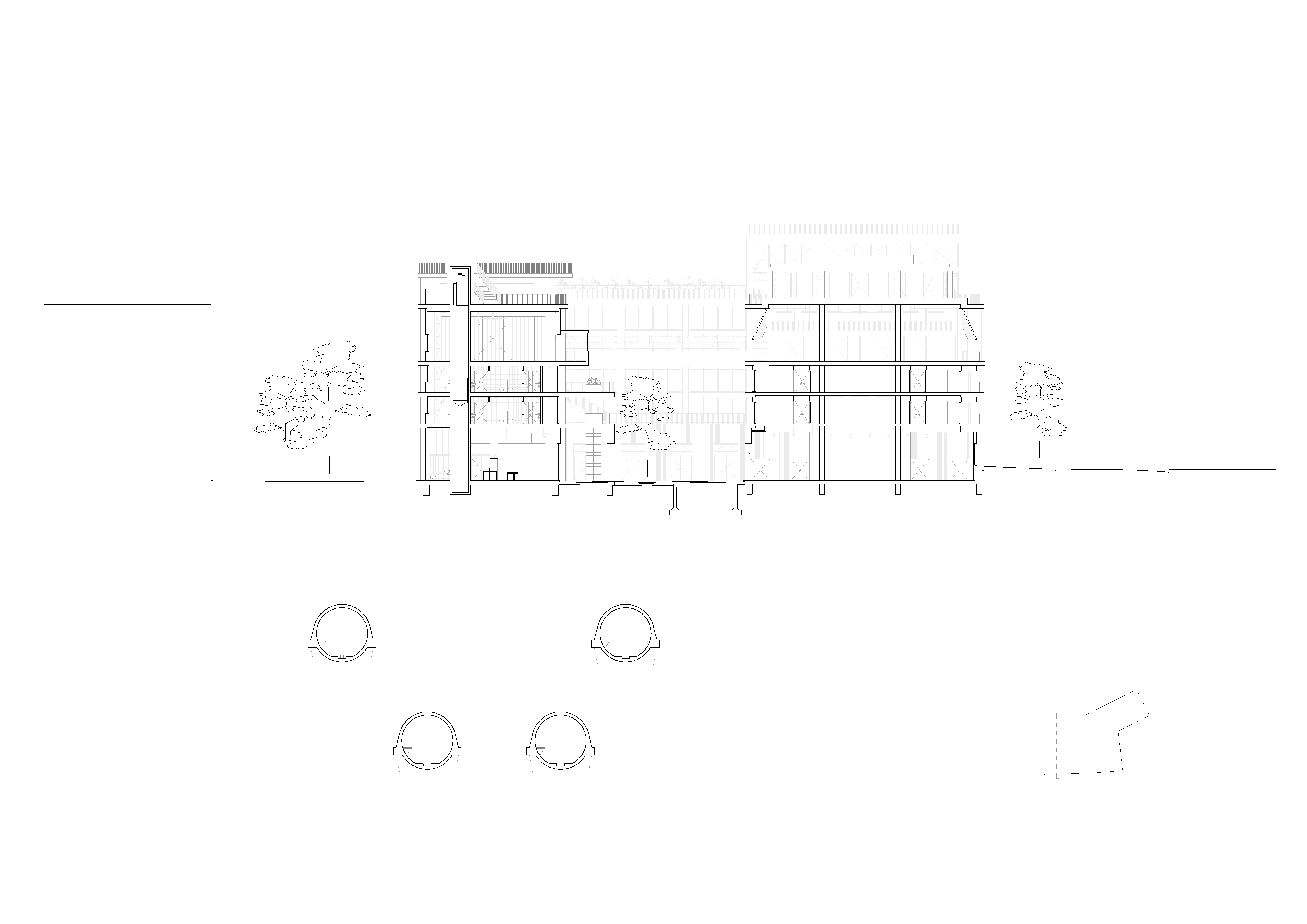 -The experiment and research center is accompanied by a courtyard which can accommodate artistic or technical installations. The building is mainly designed for its capacity to accommodate significant loads in relation to the machines it houses.