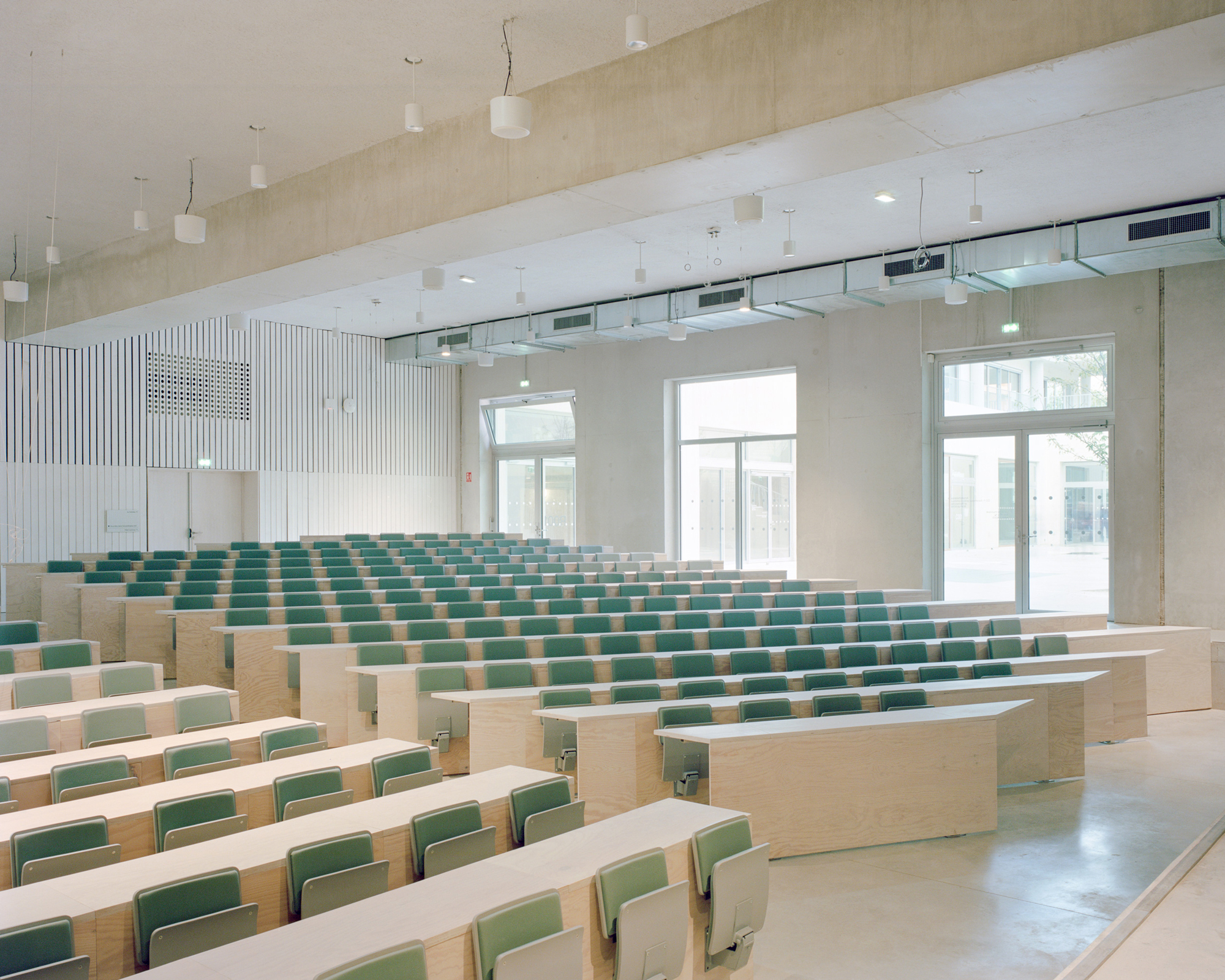 The Institute gives its full place to transversality between schools, it presents itself as a platform for exchanges between students. Thus, instead of housing each of the three administrations in 3 separate buildings, the IMVT brings together the programs according to technical and spatial needs.