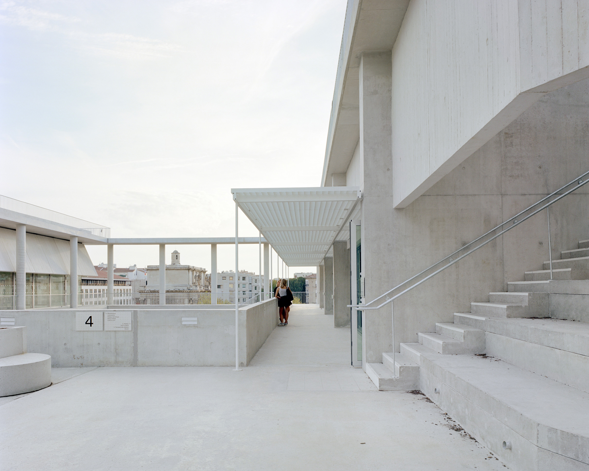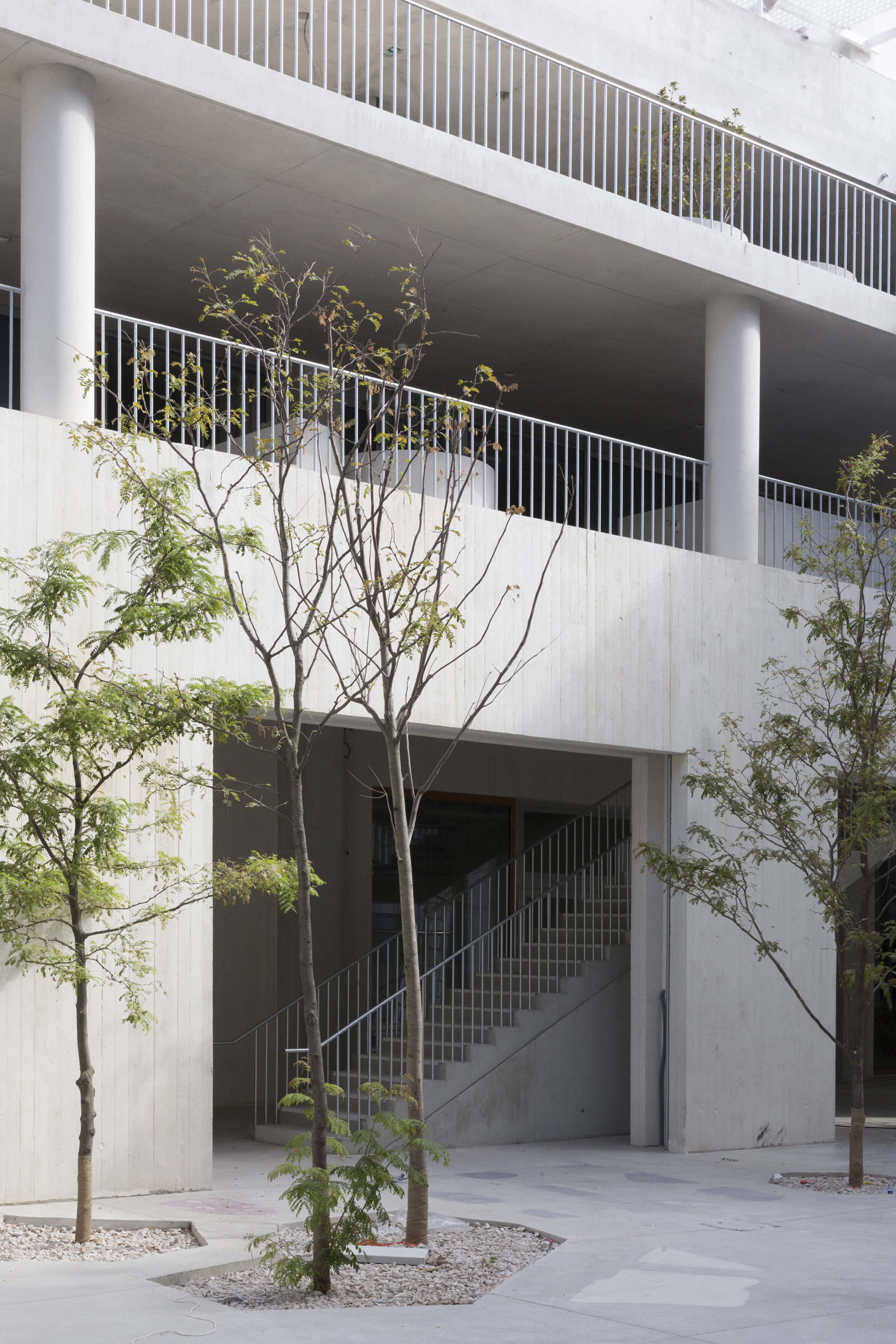 From a distance the IMVT appears as a regular and unitary system: a light framework integrating posts, beams and slabs, is built in light gray concrete, it is permanent.