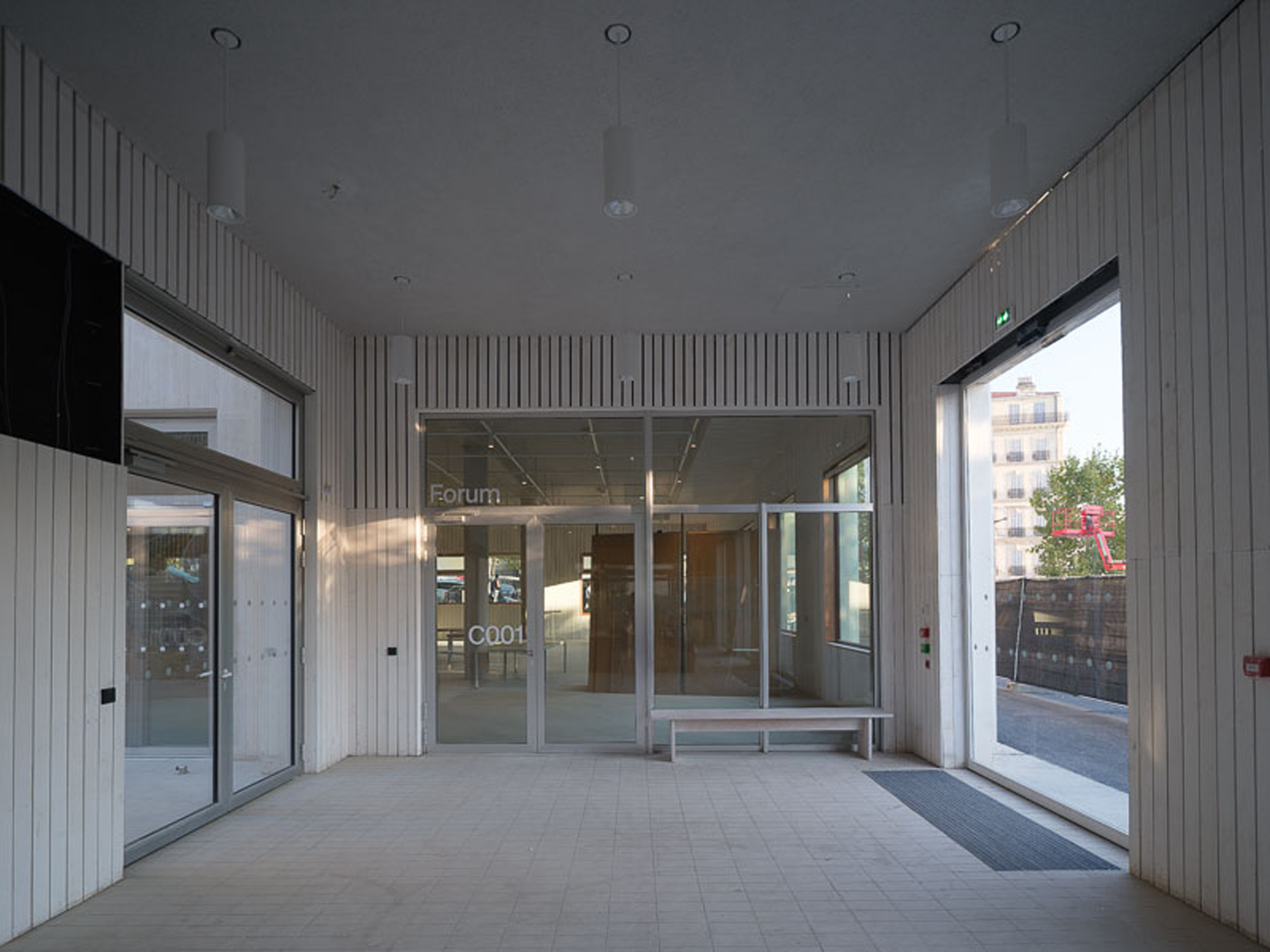 The building appears day and night in public space as a benevolent presence. Each place that makes up this mini-campus is visible: the IMVT lives to the rhythm of the profound changes in the district, formerly infrastructure and roads, which has become a public square and popular park.