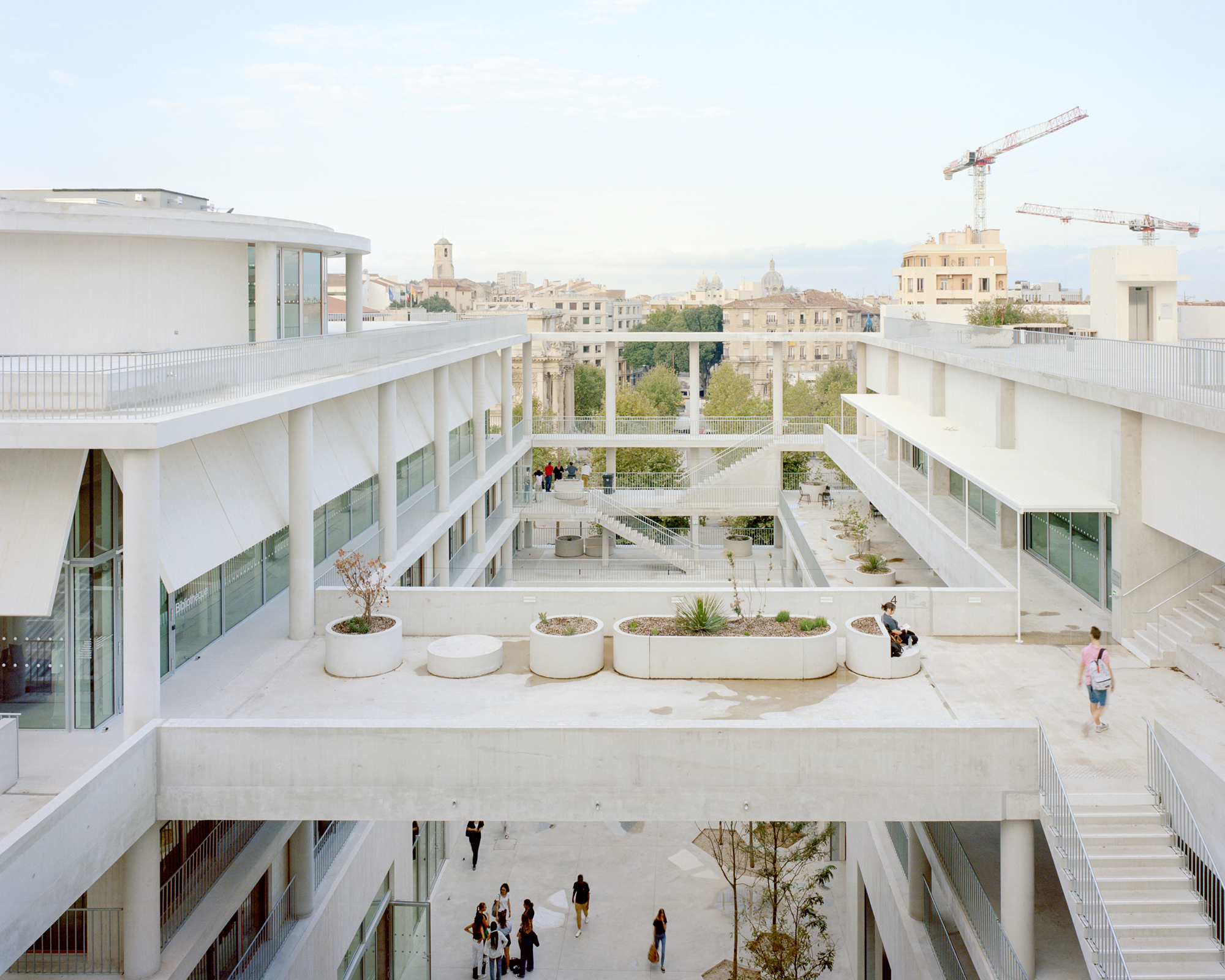 Located near Saint-Charles station, on the Porte d’Aix esplanade, three establishments come to you. The Ecole Nationale Supérieure d’Architecture de Marseille (ENSAM) which was until now located in Luminy, the Marseille branch of the Ecole Nationale Supérieure de Paysage (ENSP) and the Institute of Town Planning and Regional Planning (IUAR) of Aix-Marseille University, are now brought together in the Mediterranean Institute of the City and Territories (IMVT).