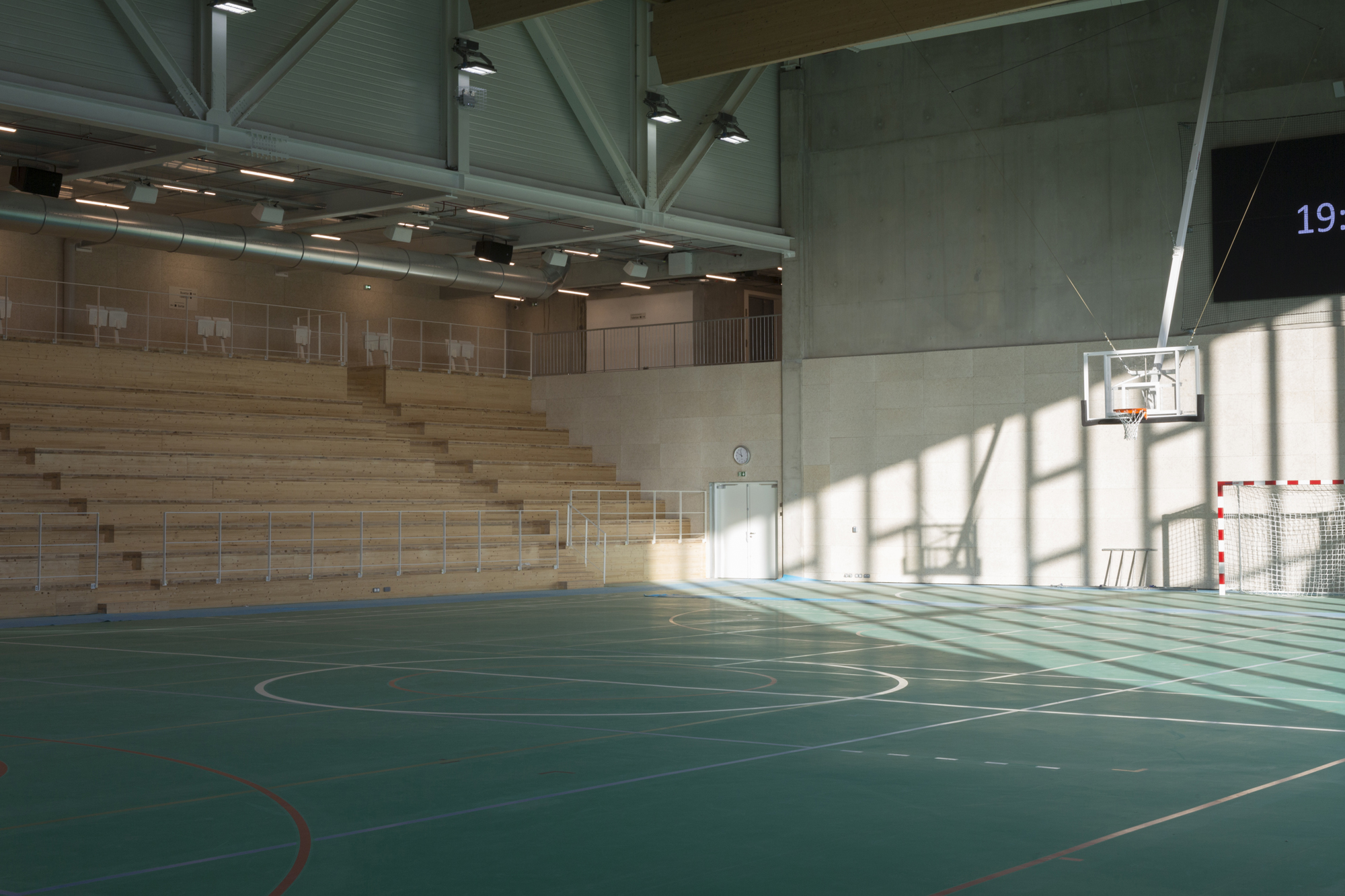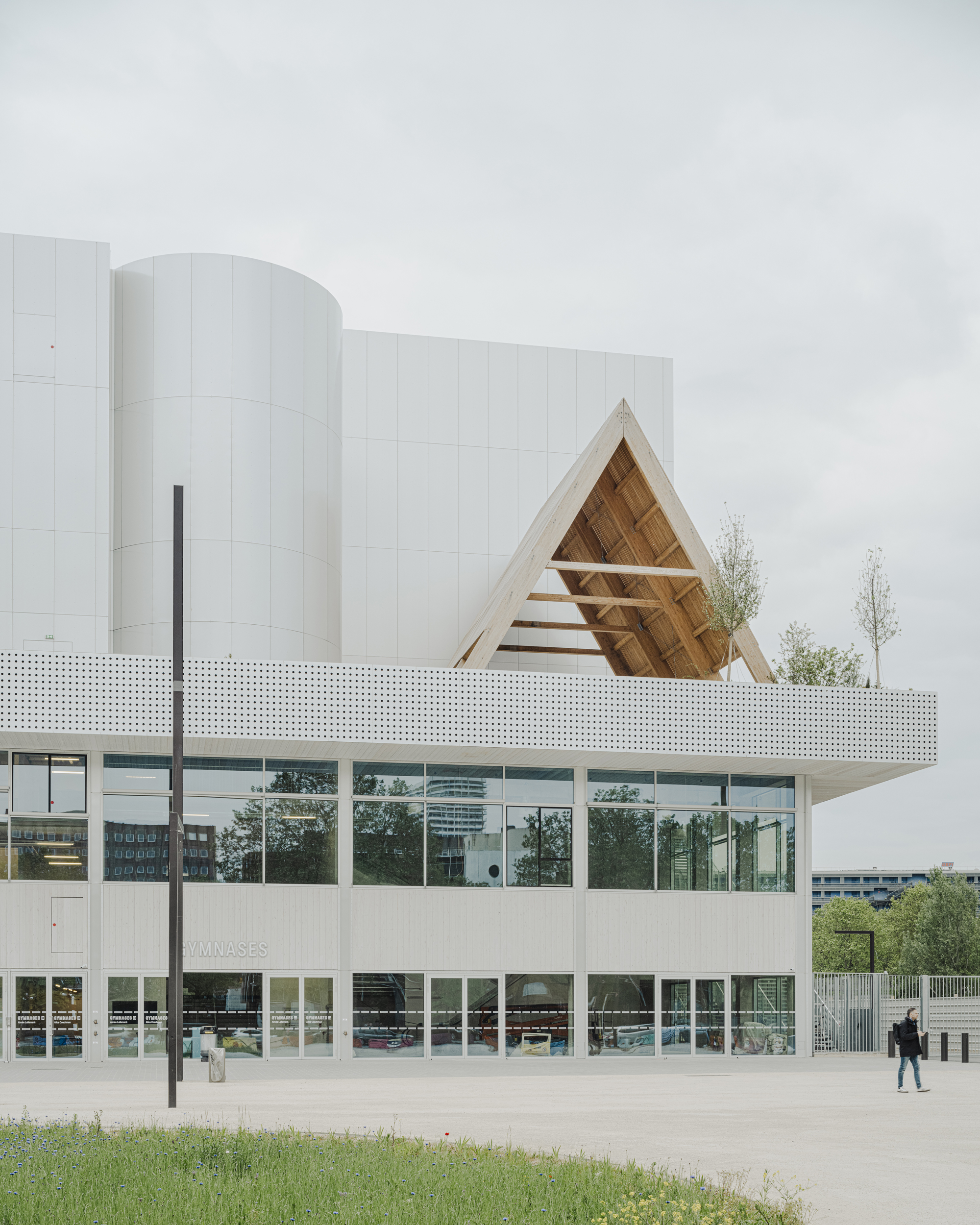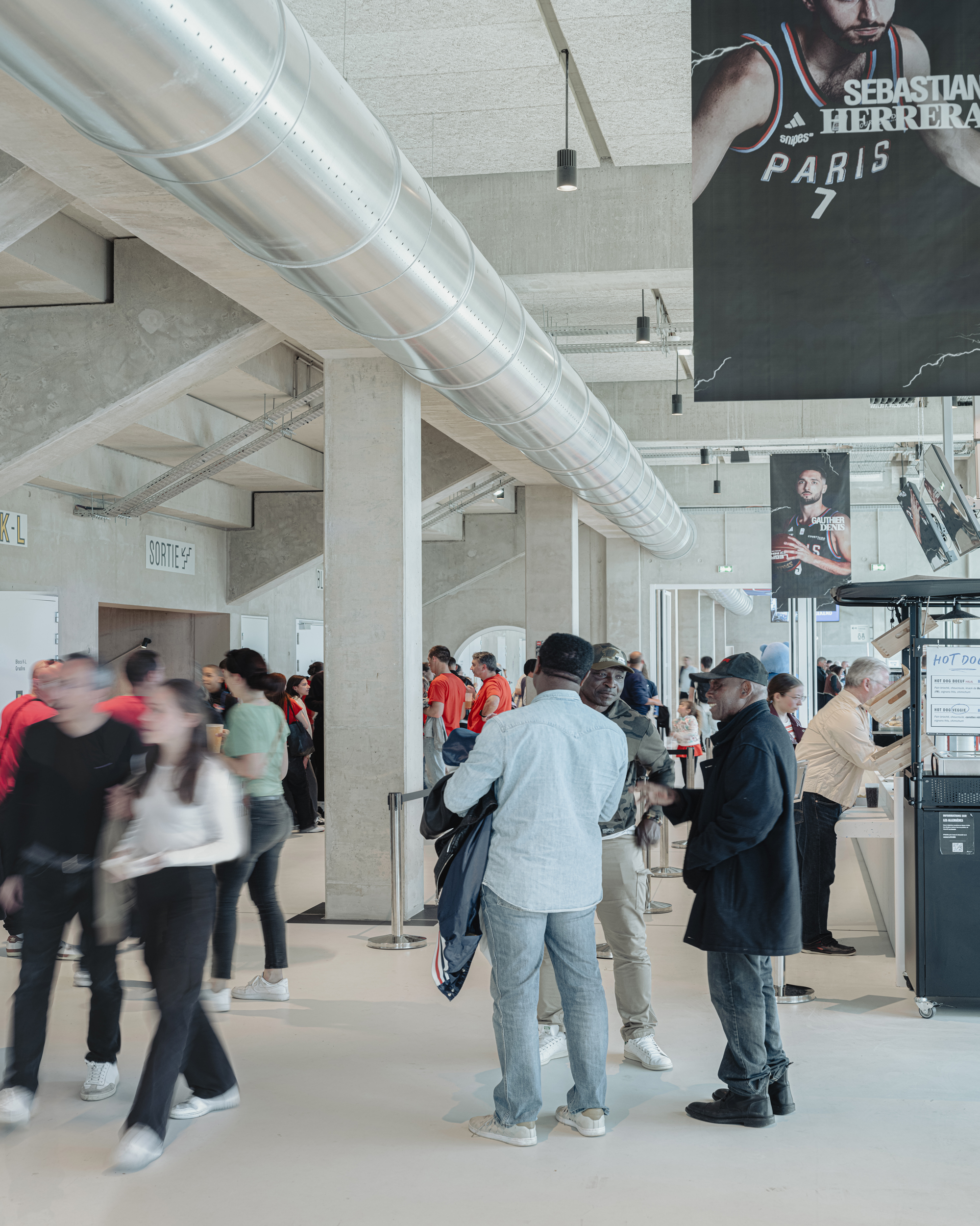 Aluminum volumes, reduced to a minimum, host major events – JOP 2024, concerts, Paris Basket matches – but also a smiling gymnasium.