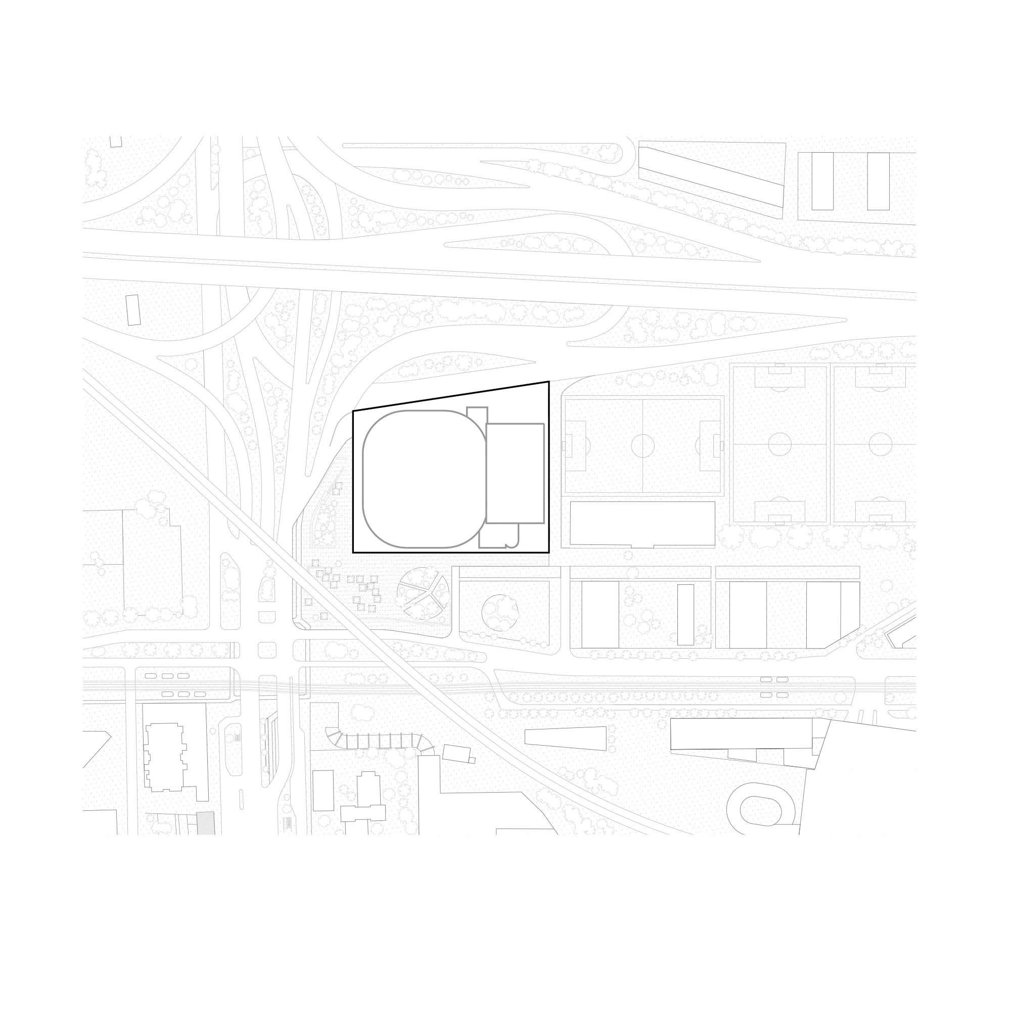 The equipment is in a very specific situation, in a neighborhood undergoing profound change. Along the historic road to Saint-Denis, almost equidistant from the Sacré Cœur and the Stade de France, in contact with a dense infrastructural network – the ring road, the A1 motorway -, it is fully part of Paris and Greater Paris.