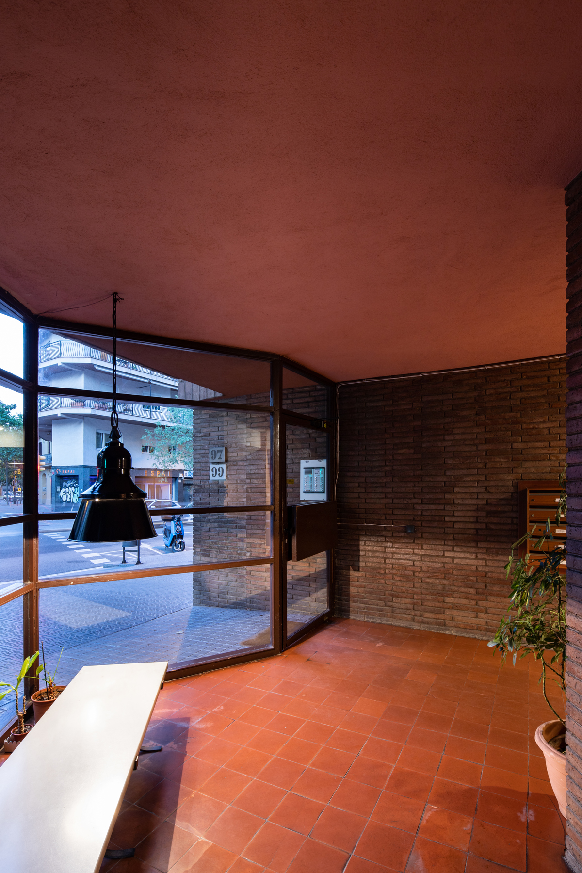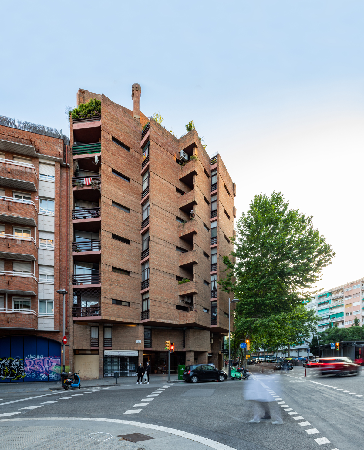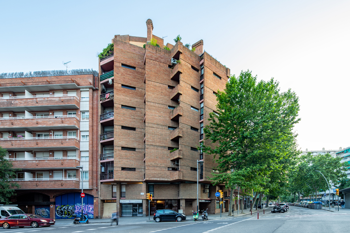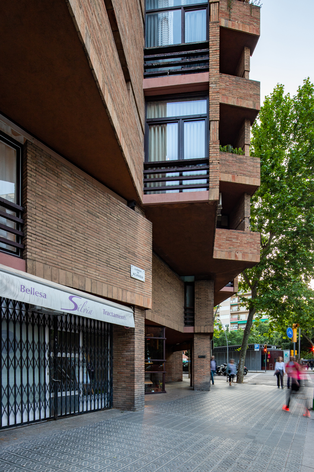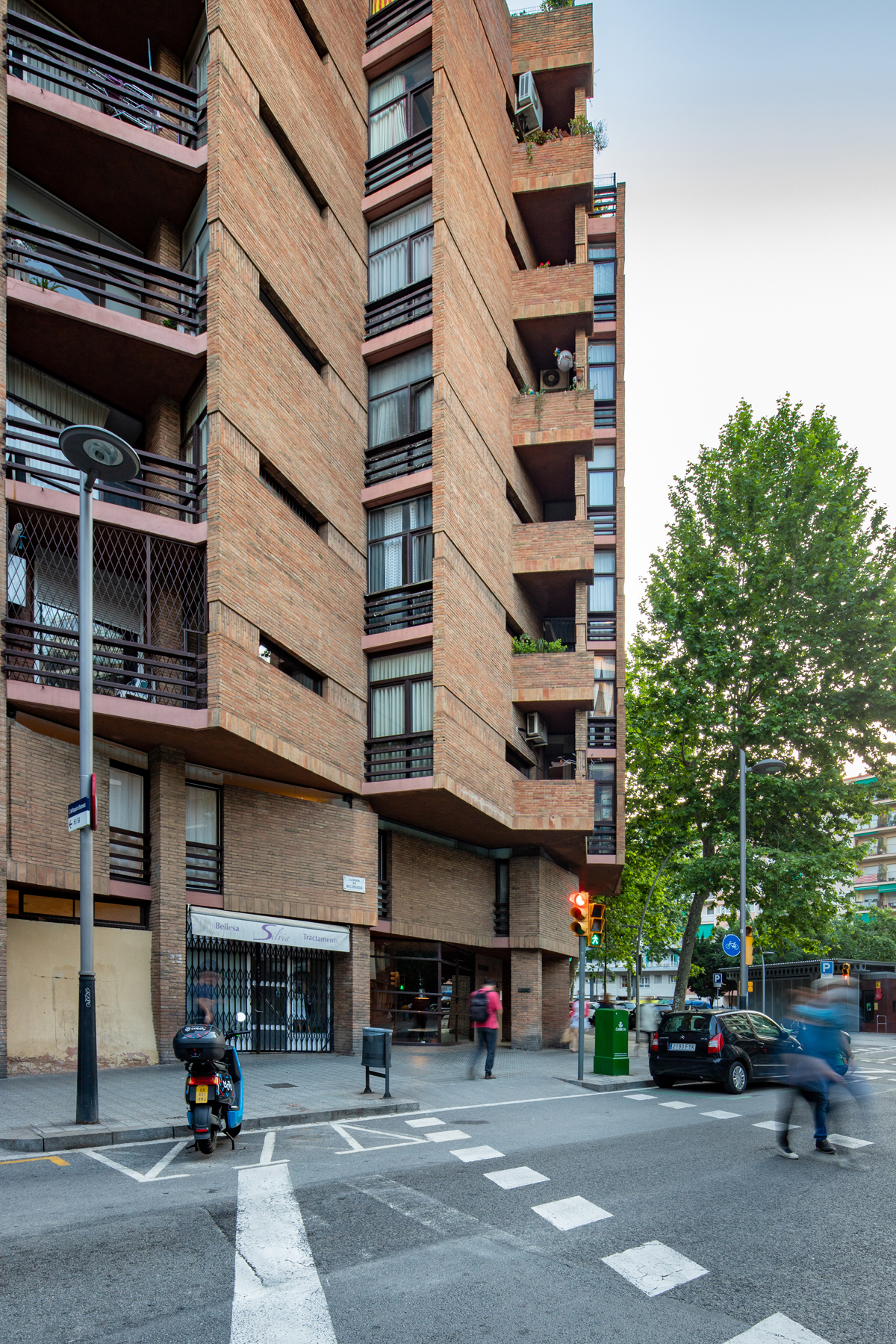 Este edificio de apartamentos de ocho plantas, está ubicado en un solar pequeño de la calle Nicaragua, en un barrio popular de Barcelona. Las características del solar (ubicado en una esquina, paredes medianeras a ambos lados, orientación norte) determinaron en gran medida el proyecto final.