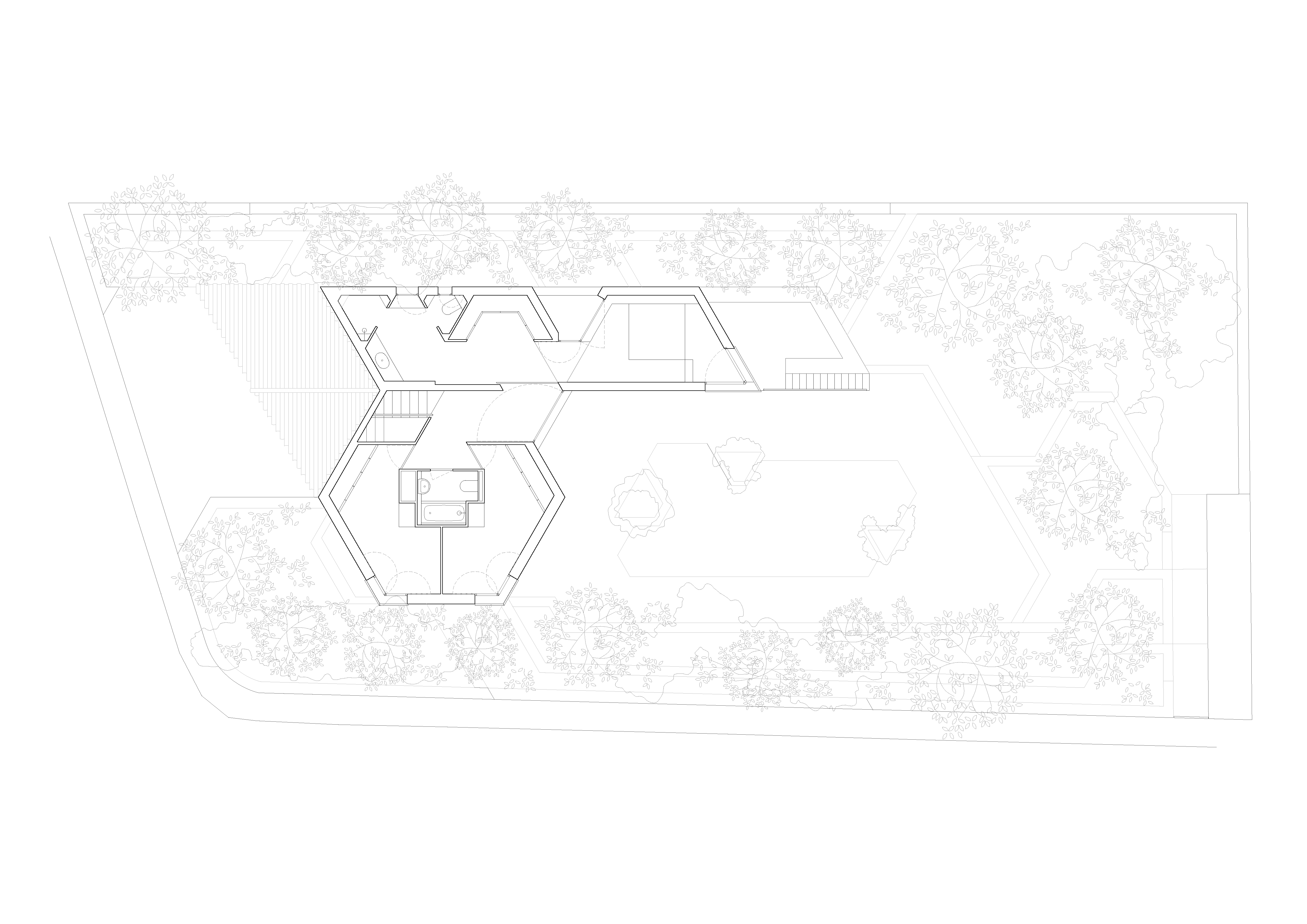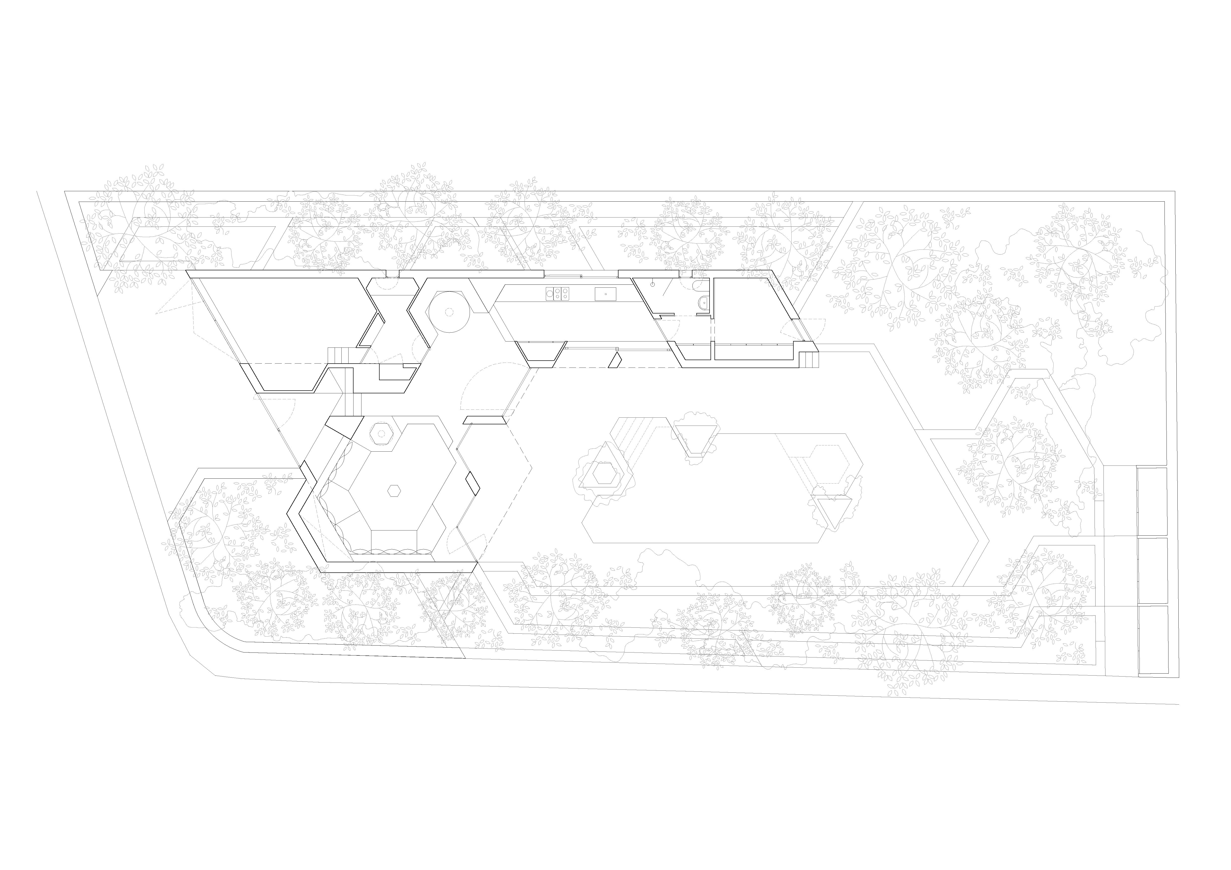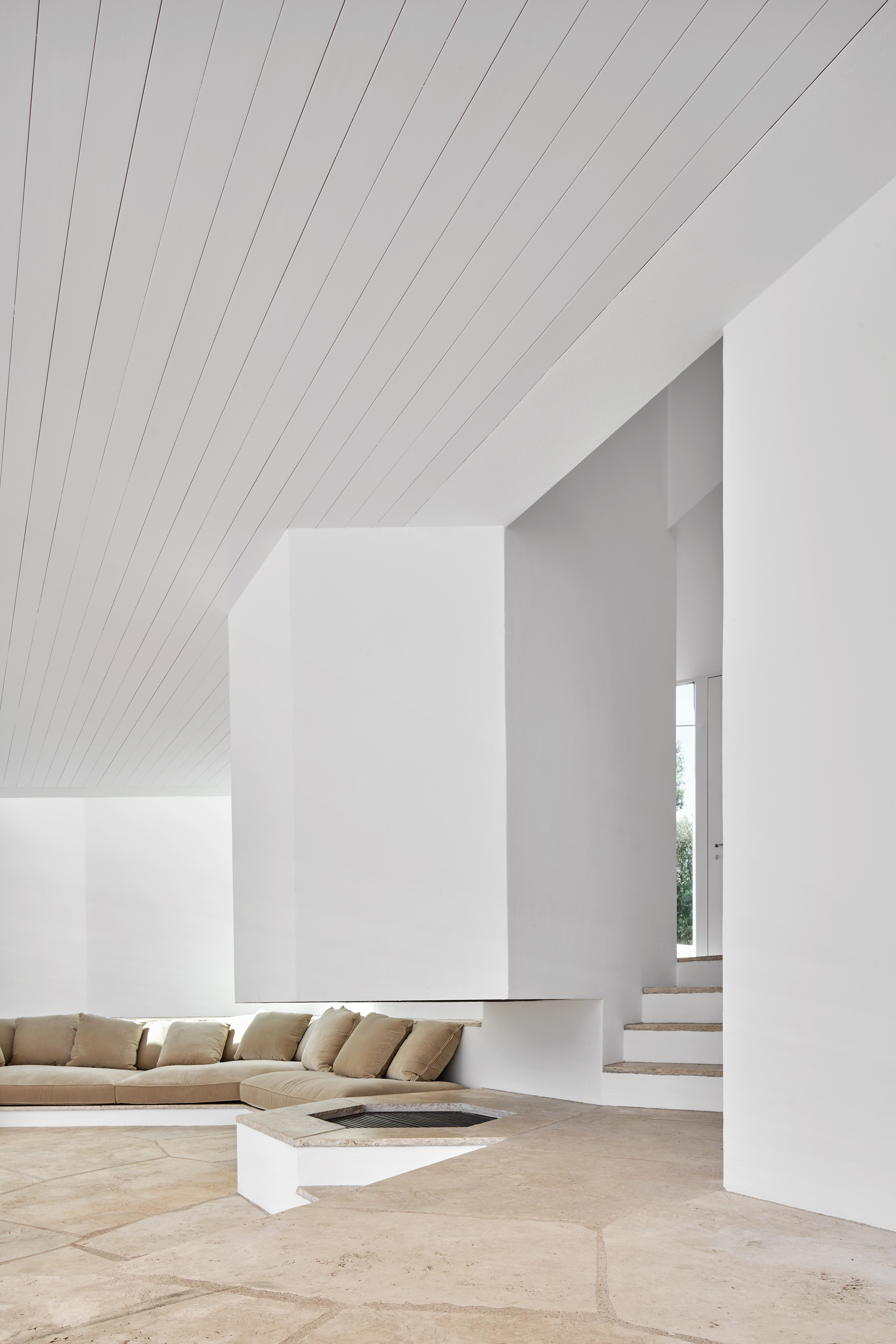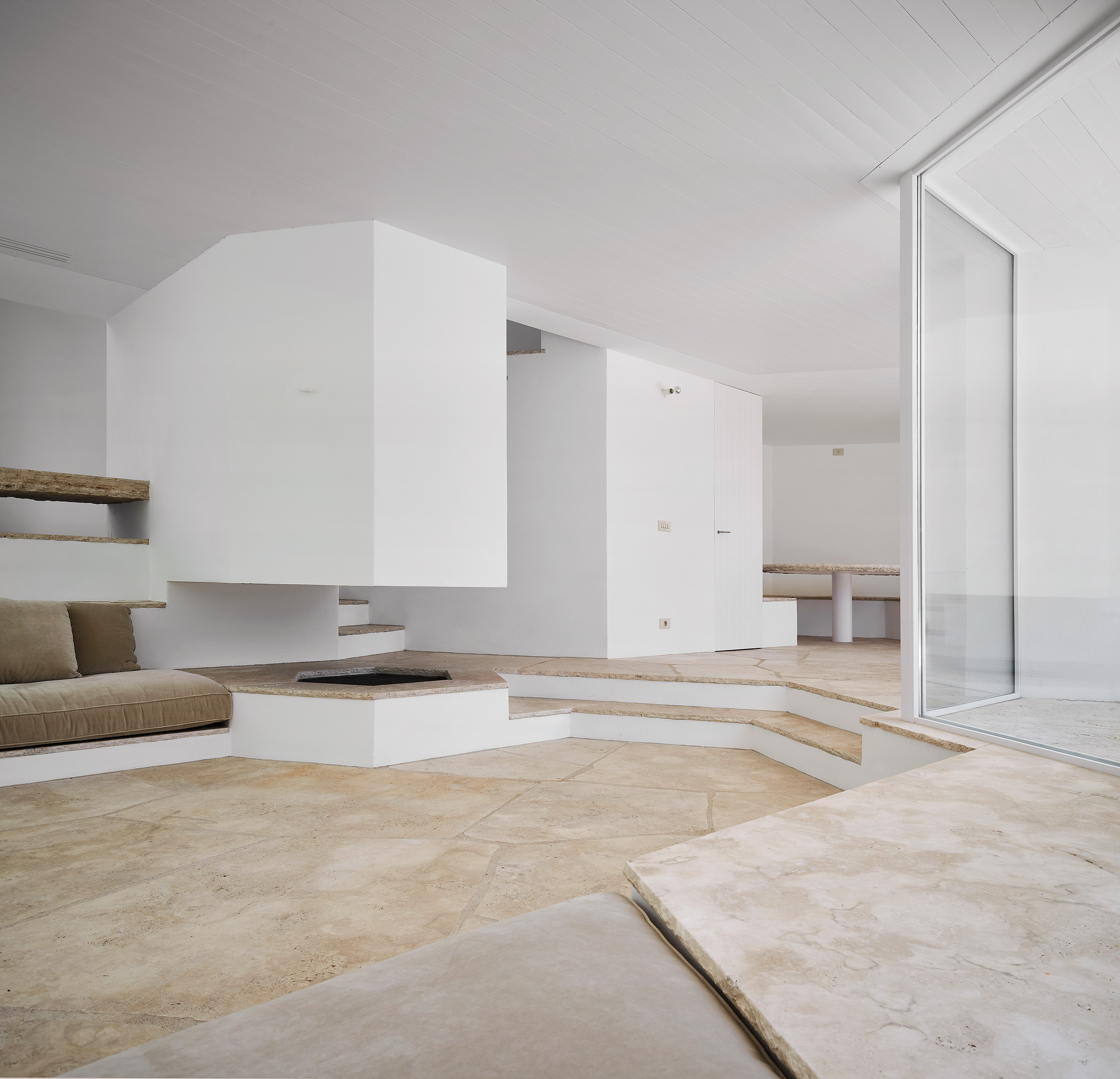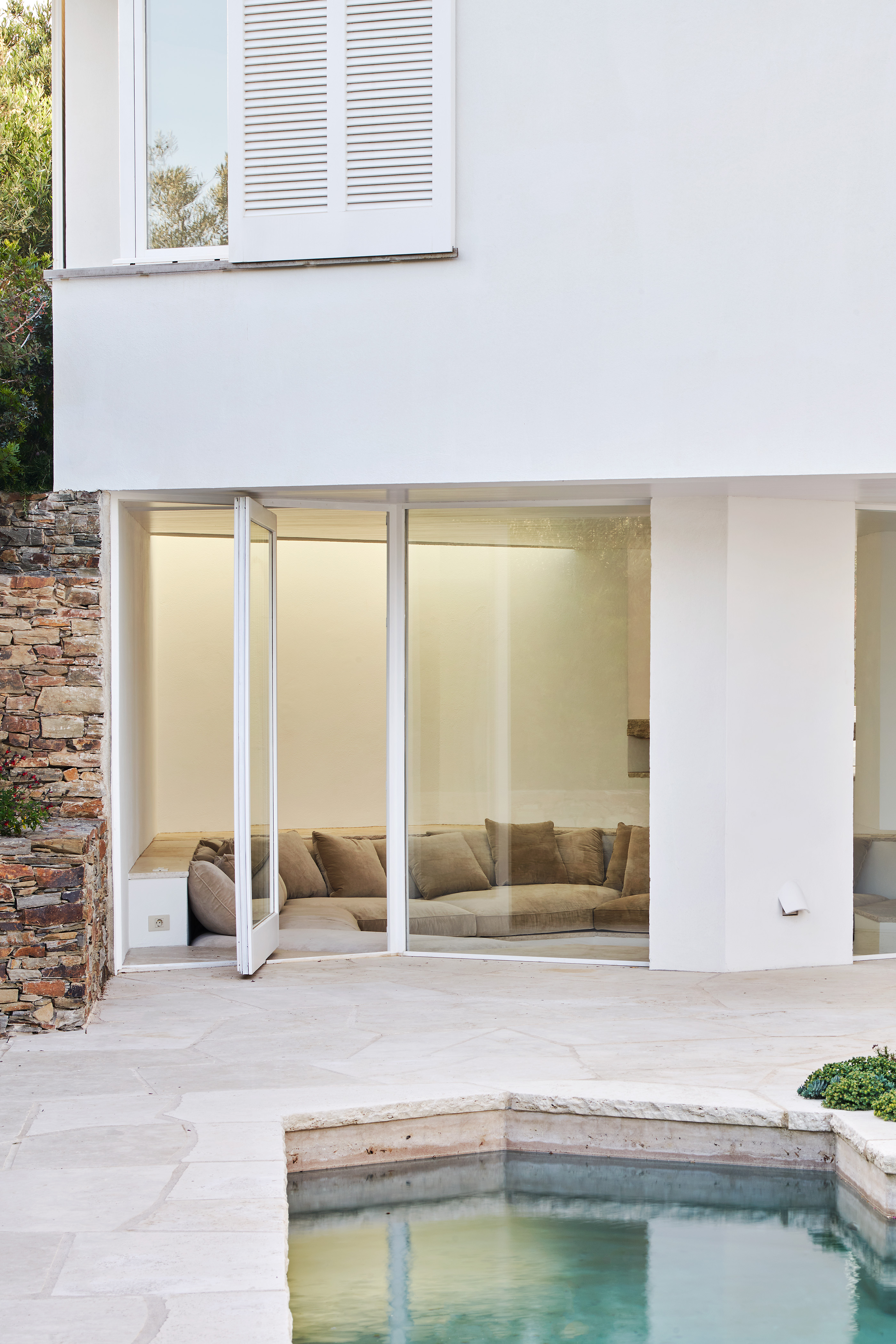 An adaptation to the site’s topography and orientation that turns the house’s back to the tramontane wind and opens it to face towards the pool