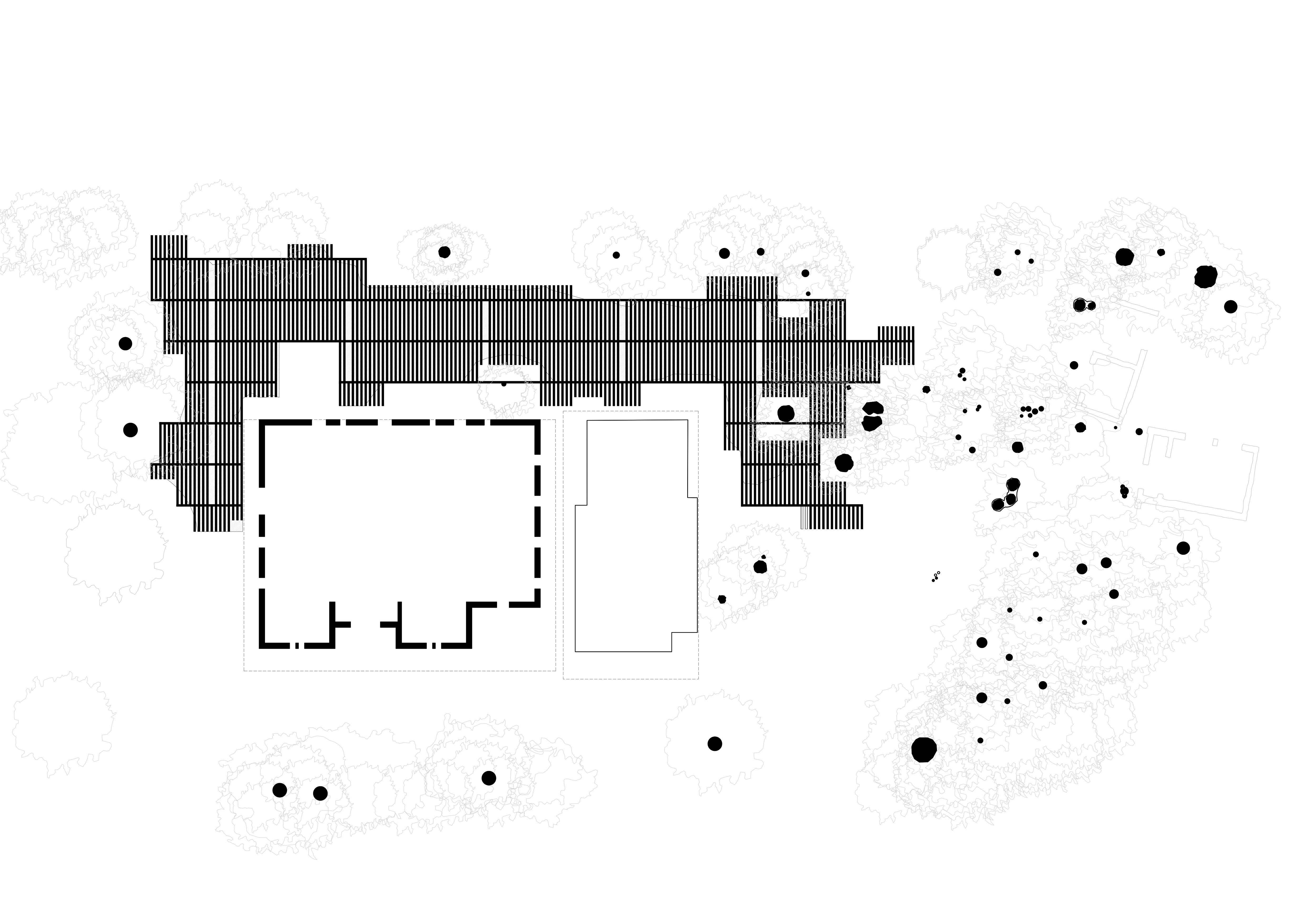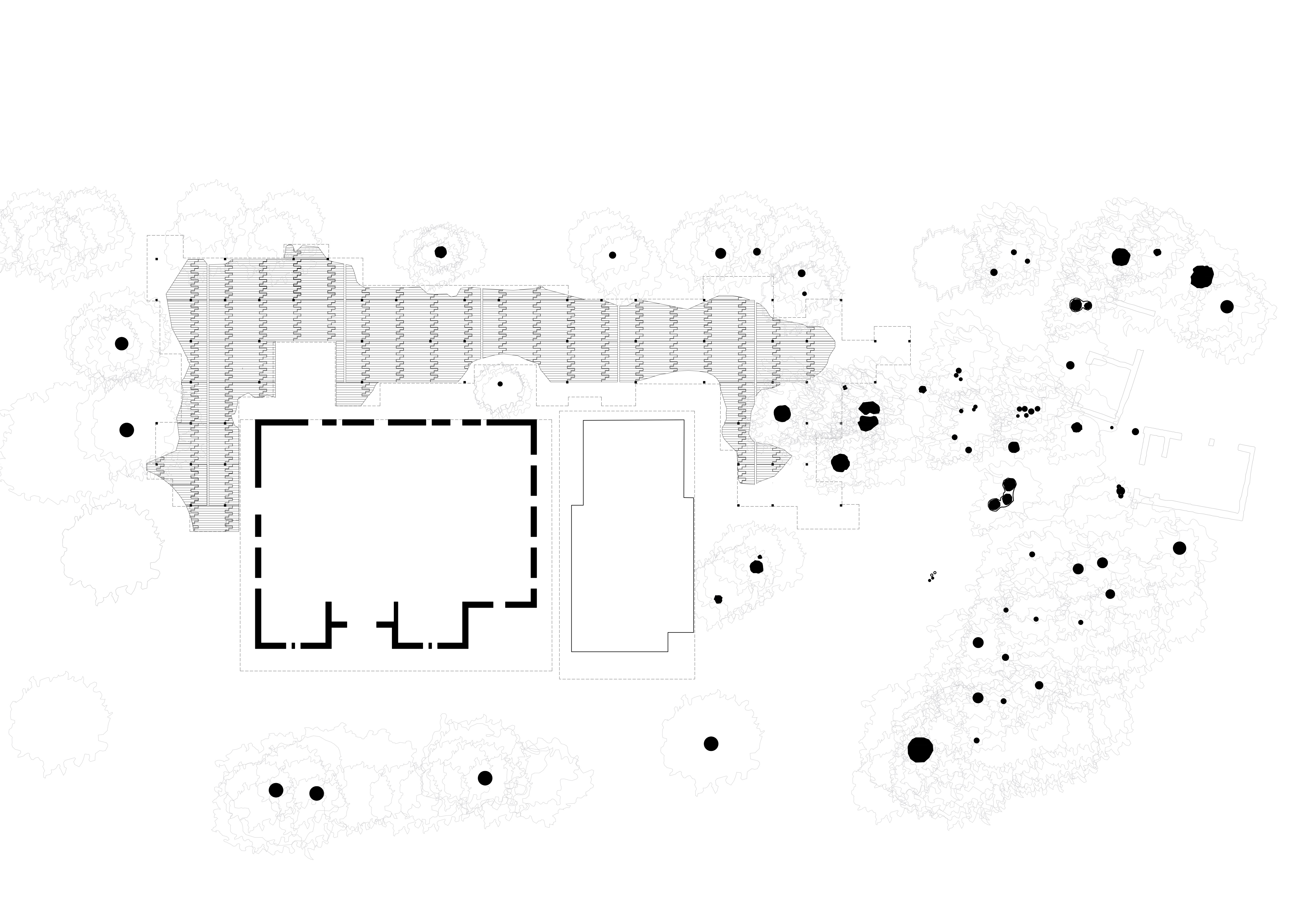 Musiktopa recupera los fragmentos de naturaleza, muros y rincones del antiguo museo vinculándolos entre sí y construyendo en torno a ellos pabellones, mobiliario, naturalezas, vivas y muertas. Una propuesta que no busca motivos aislados o superfluos, sino métodos eficaces de organización espacial capaces de relacionar lo particular para crear un programa de actuación contundente que desde la compresión global definan una solución particular al programa.