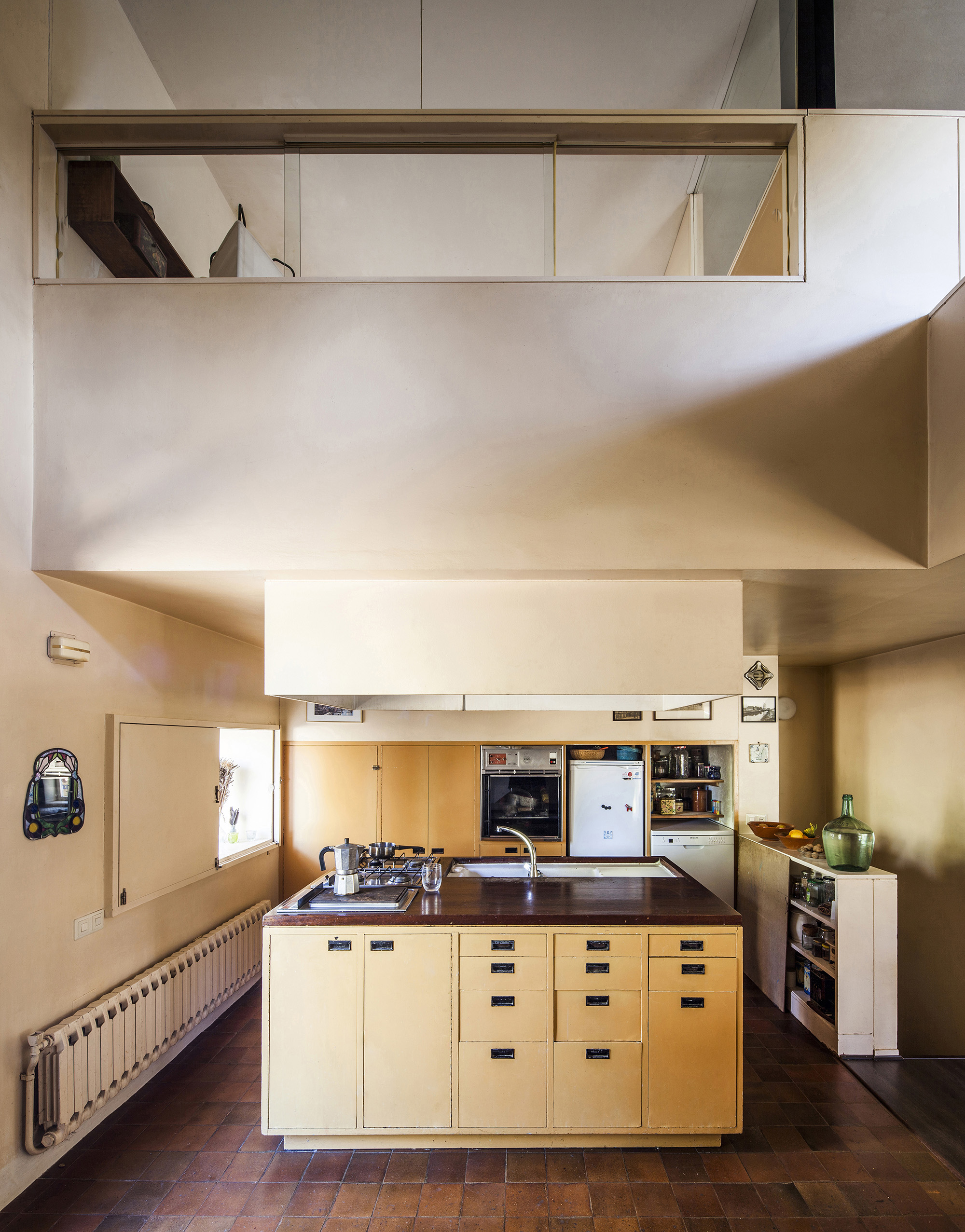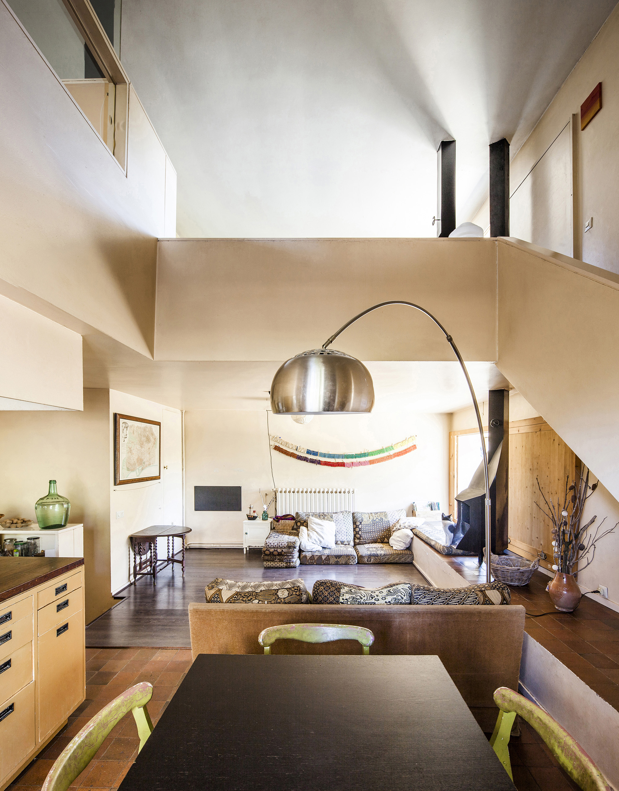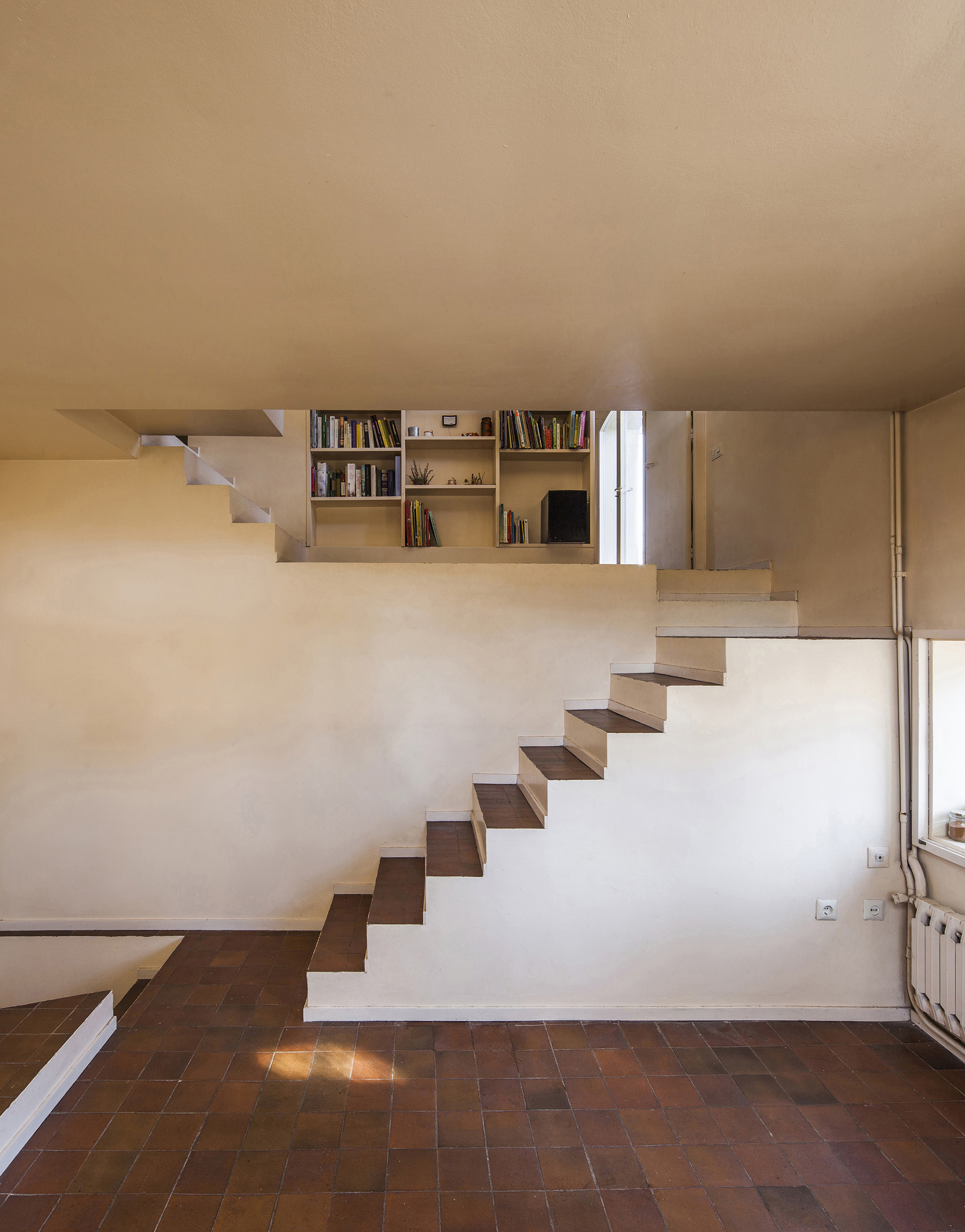 The space in question, a unique storeroom that was being used as a container, had varying topography: its two ends were adapted to deal with the uneven terrain, while its central part was raised above the ground due to the wine barrels kept there. All of this was under one roof, a Catalan-style flat rooftop terrace on one level (unlike the different floors inside).