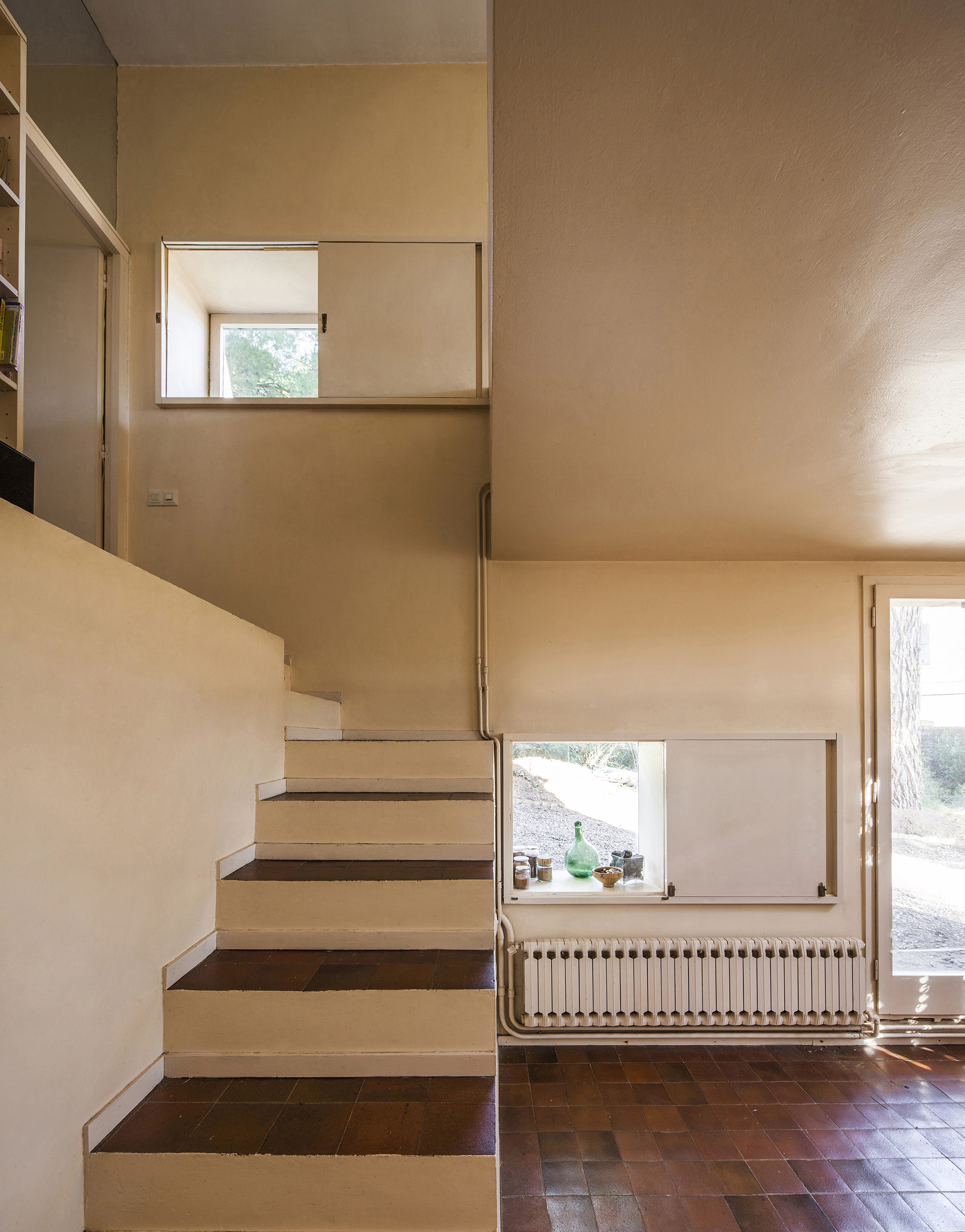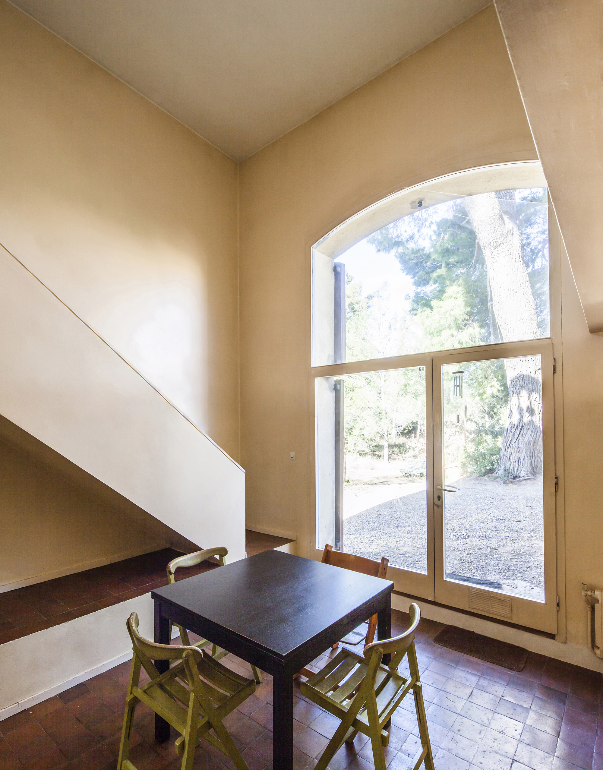 The unusual layout of the house, in terms of form and composition, offered certain freedom when it came to renovating the interior and the façade: the large window on the main façade was thus removed, and a new window setup was installed, through which the garden could be accessed directly.