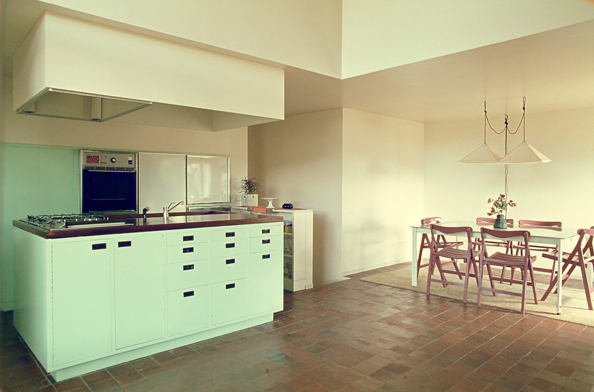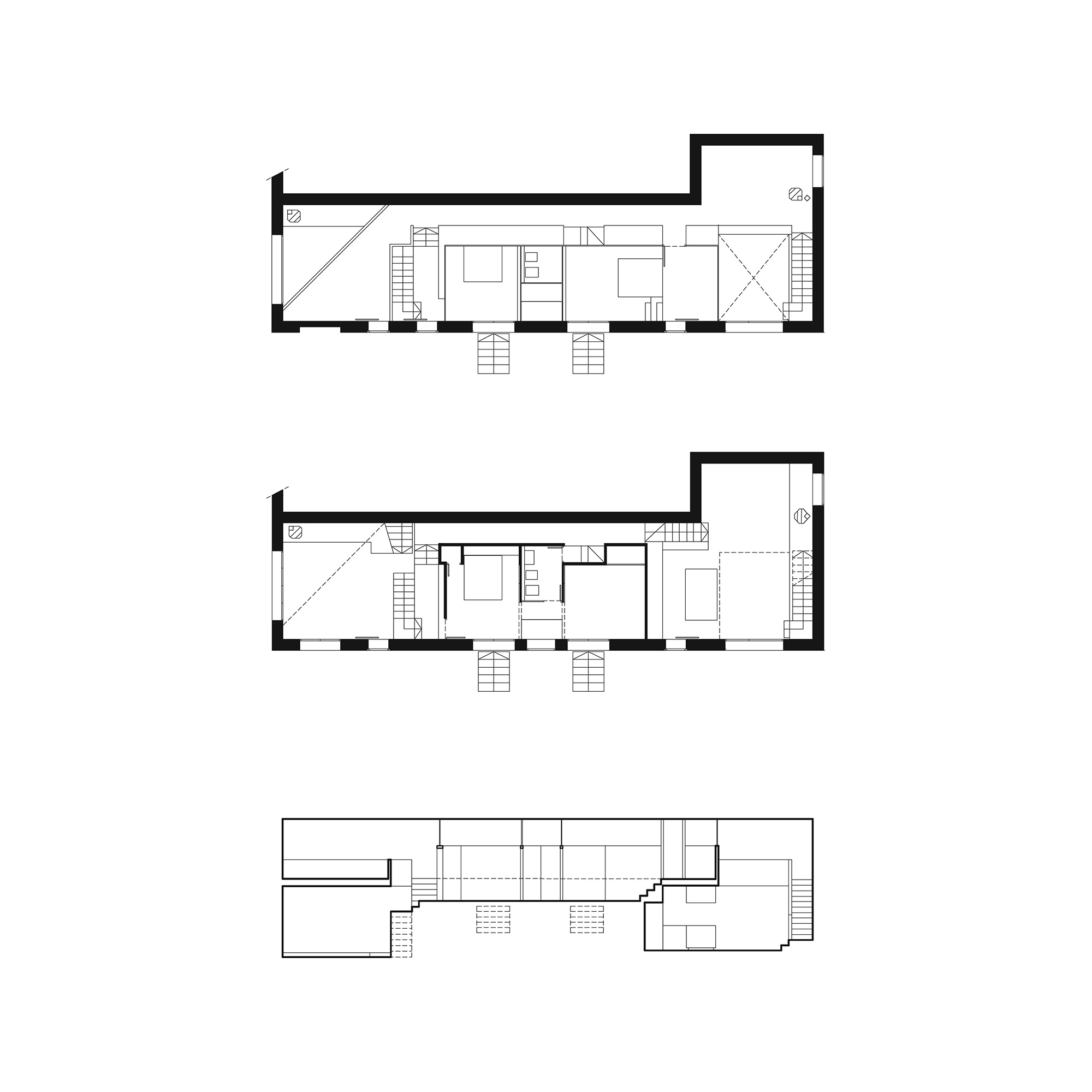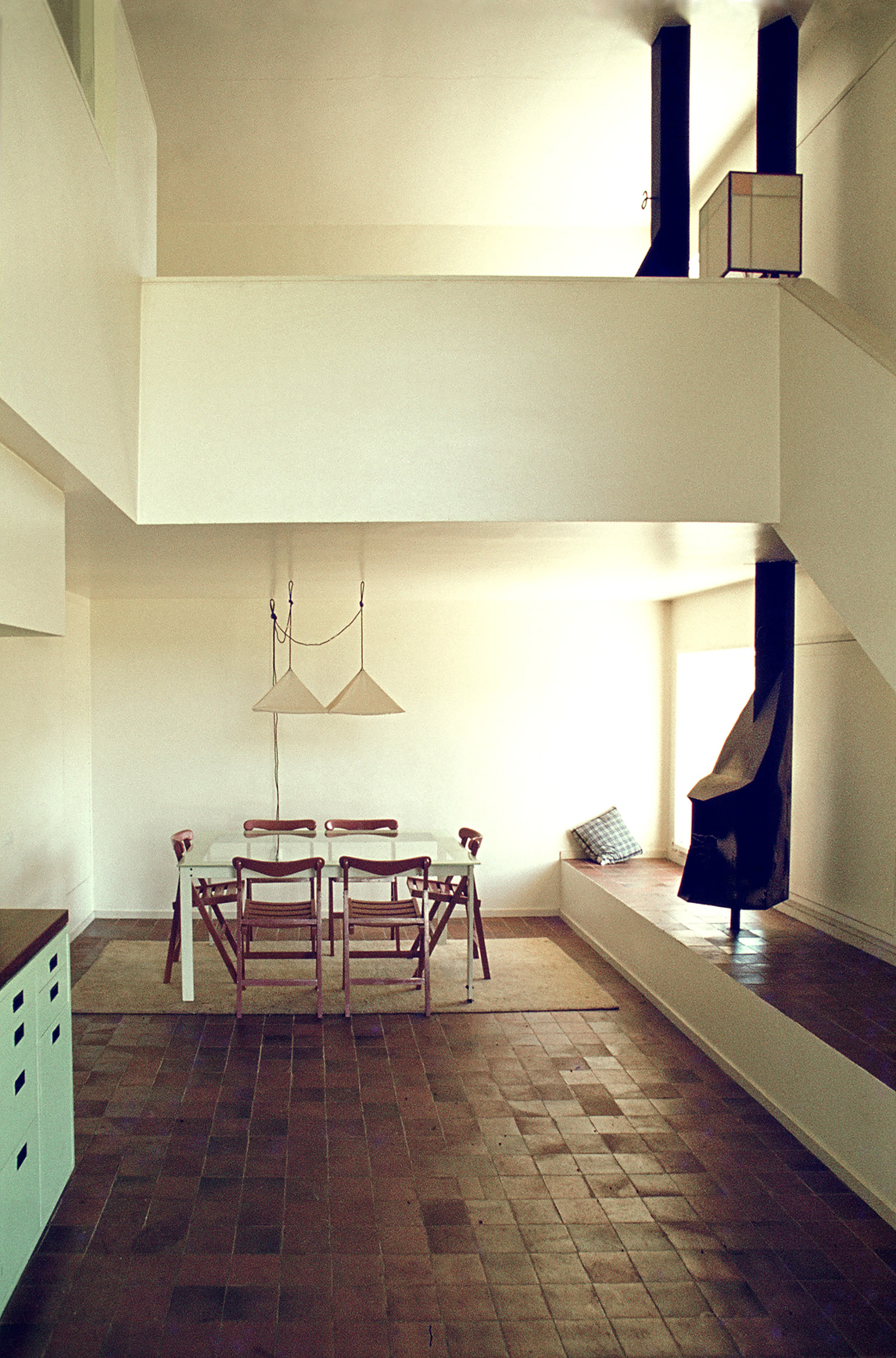 The house’s two differing approaches had been resolved by means of a pair of small stair-cases, linking the flat roof space with the varying levels within the annex.