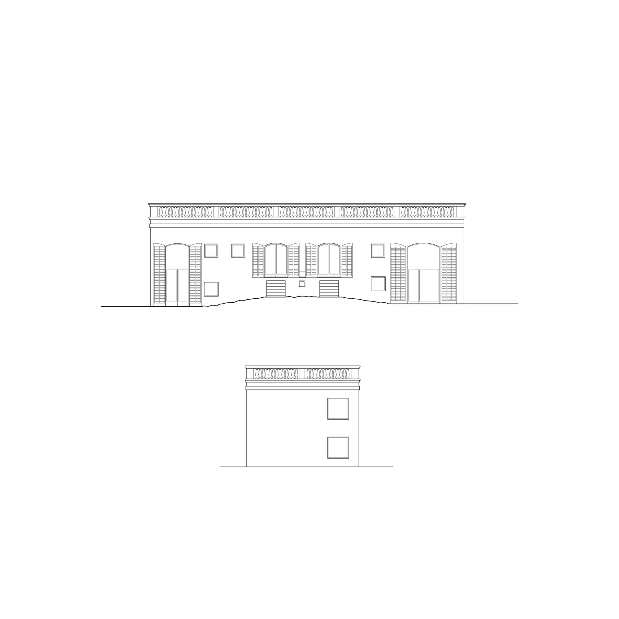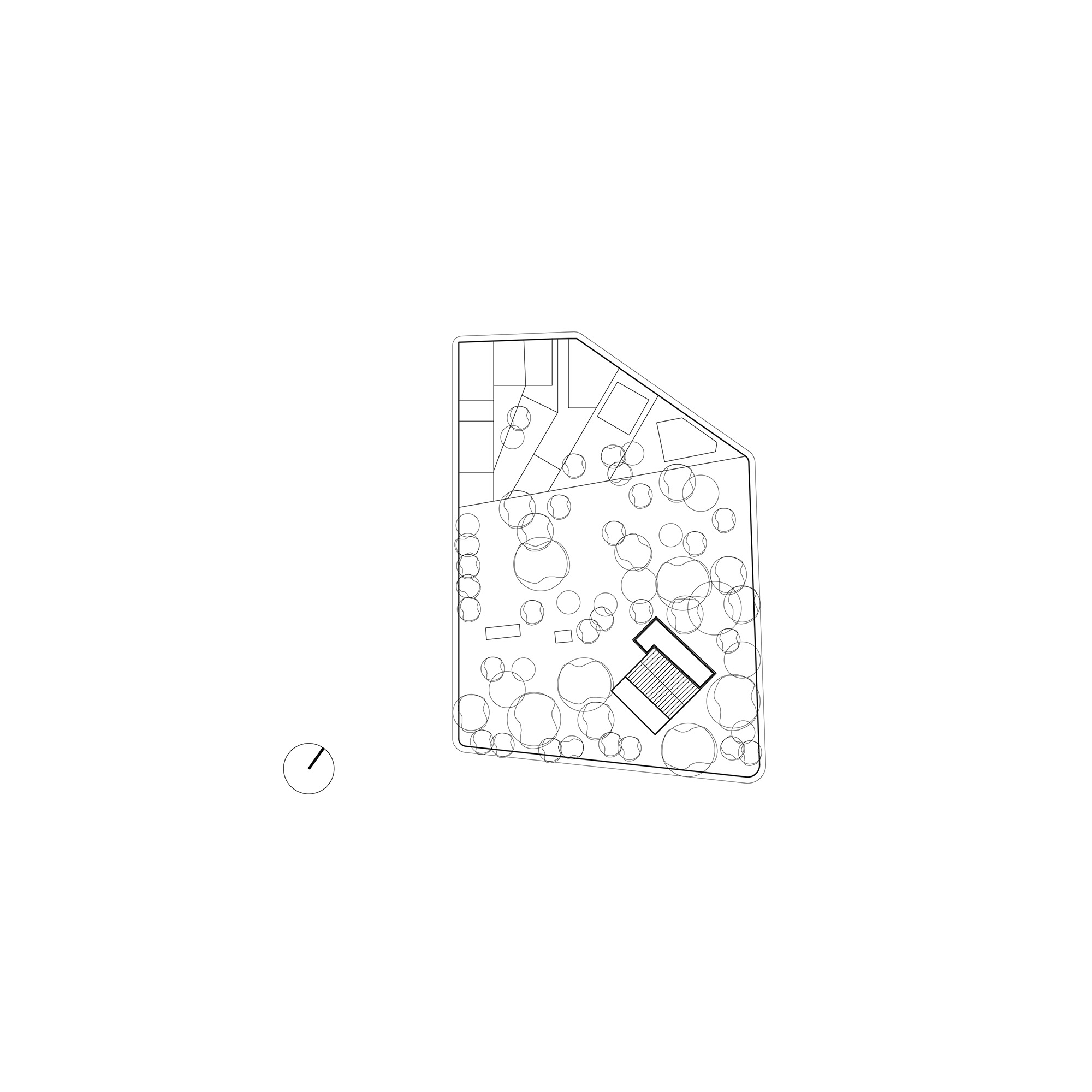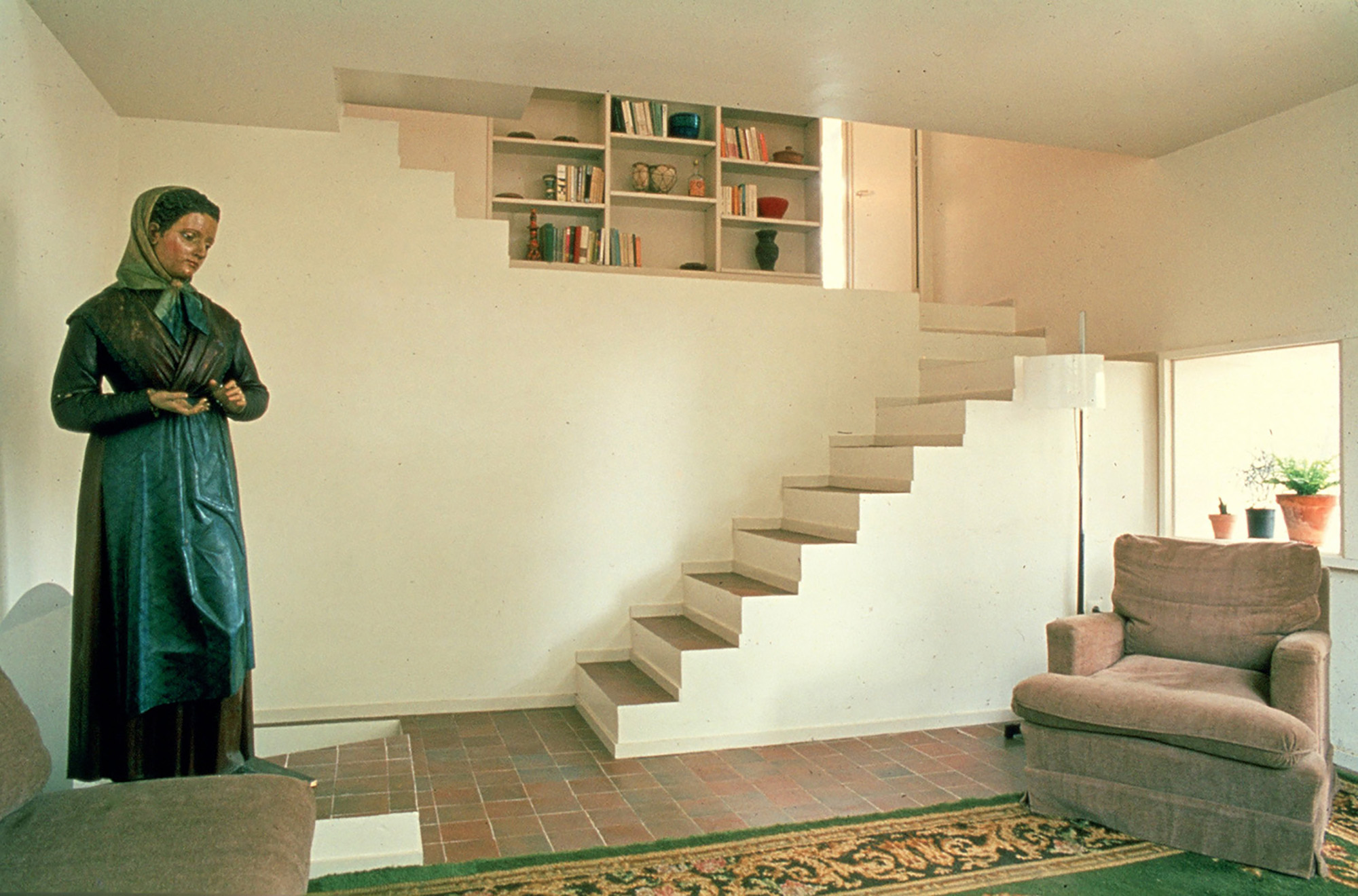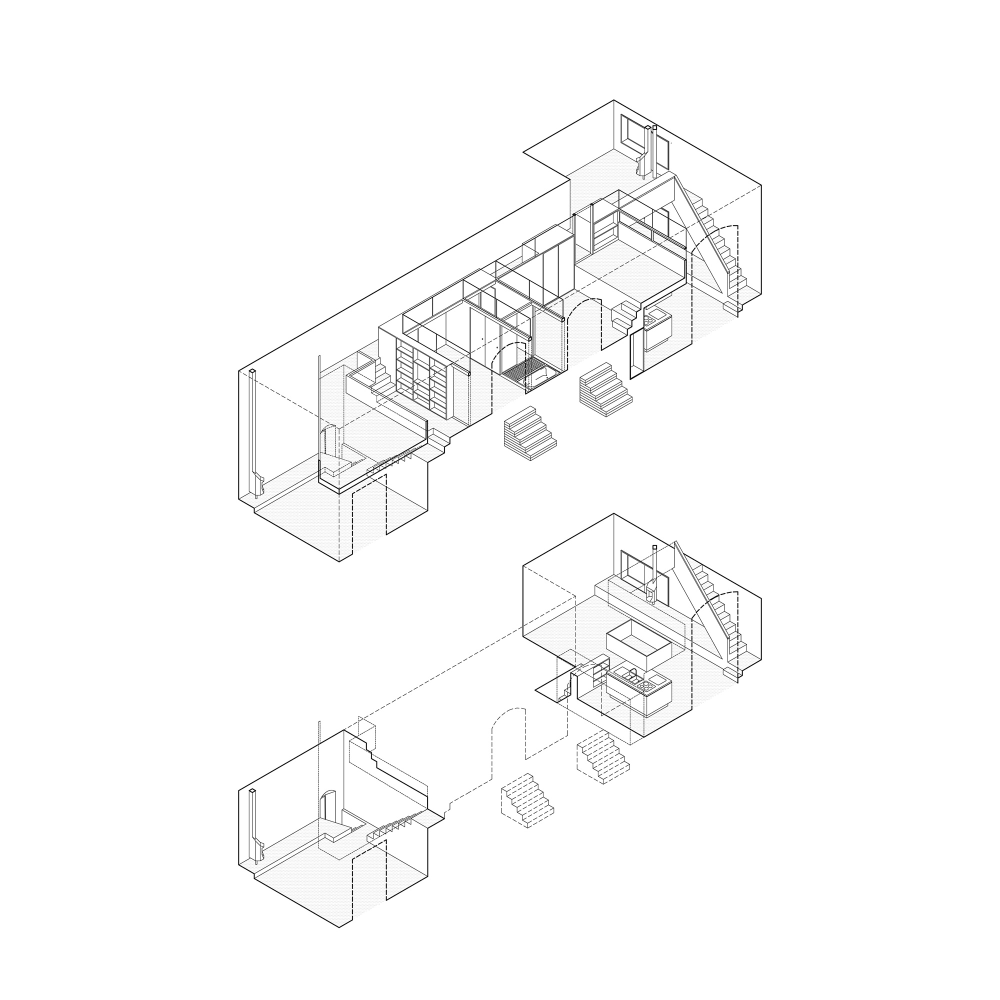 The house’s two differing approaches had been resolved by means of a pair of small stair-cases, linking the flat roof space with the varying levels within the annex.