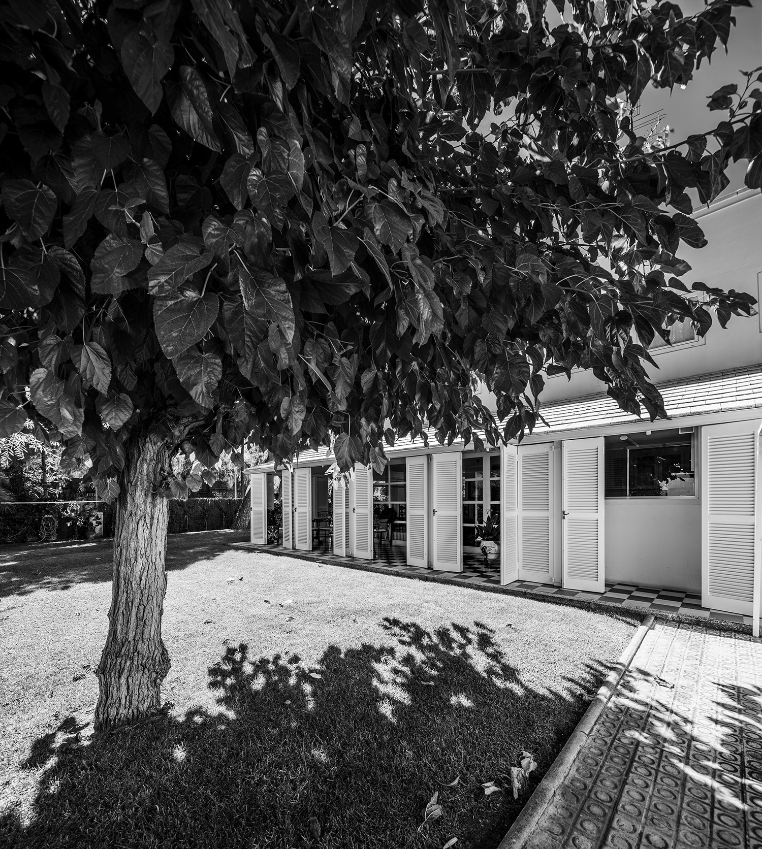 Treinta y ocho años después de terminarla, visito esta pequeña vivienda con una cierta incertidumbre sobre los cambios que en ella se habrán realizado. La casa está ahora rodeada por unos grandes pinos que hablan del tiempo que la ancla al jardín. El resto, está prácticamente igual que el primer día. Con más muebles, objetos y los recuerdos de toda una vida que en ella se ha sucedido.