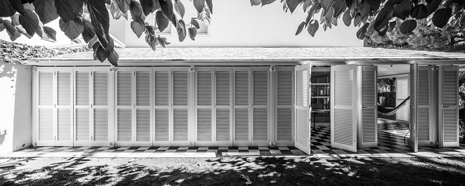 El porche está construido con materiales livianos; estructura metálica, techo de plancha, persianas de librillo y tejas esmaltadas de color blanco. Protege y al mismo tiempo ensancha visualmente las zonas de estar, ya que puede abrirse y cerrarse en su totalidad.
