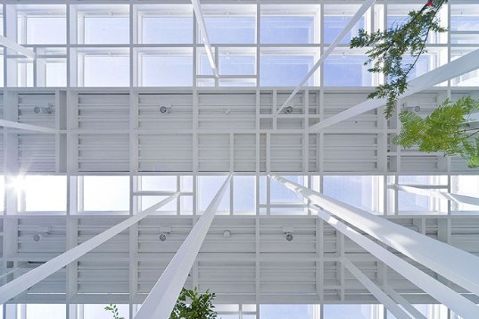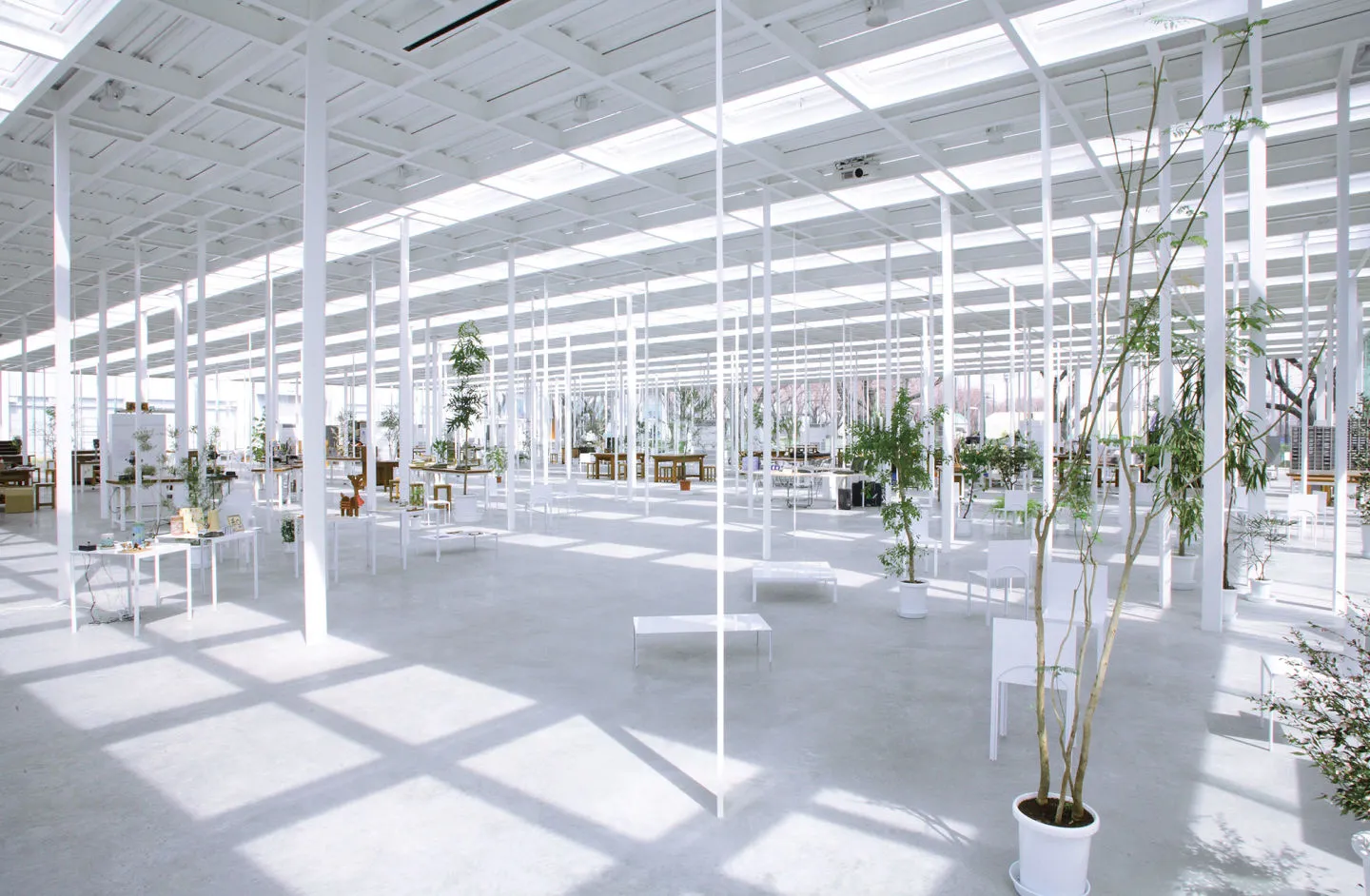 None of the 305 columns are identical in the cross-shaped section and angle. Subtle differences in the shape of the columns are defined by their structural purpose and the role of the spaces they create. Groups of columns ambiguously divide the area to create several different spaces. The columns are arranged within the architecture as trees are placed on a landscape. It makes a comfortable space like a forest.