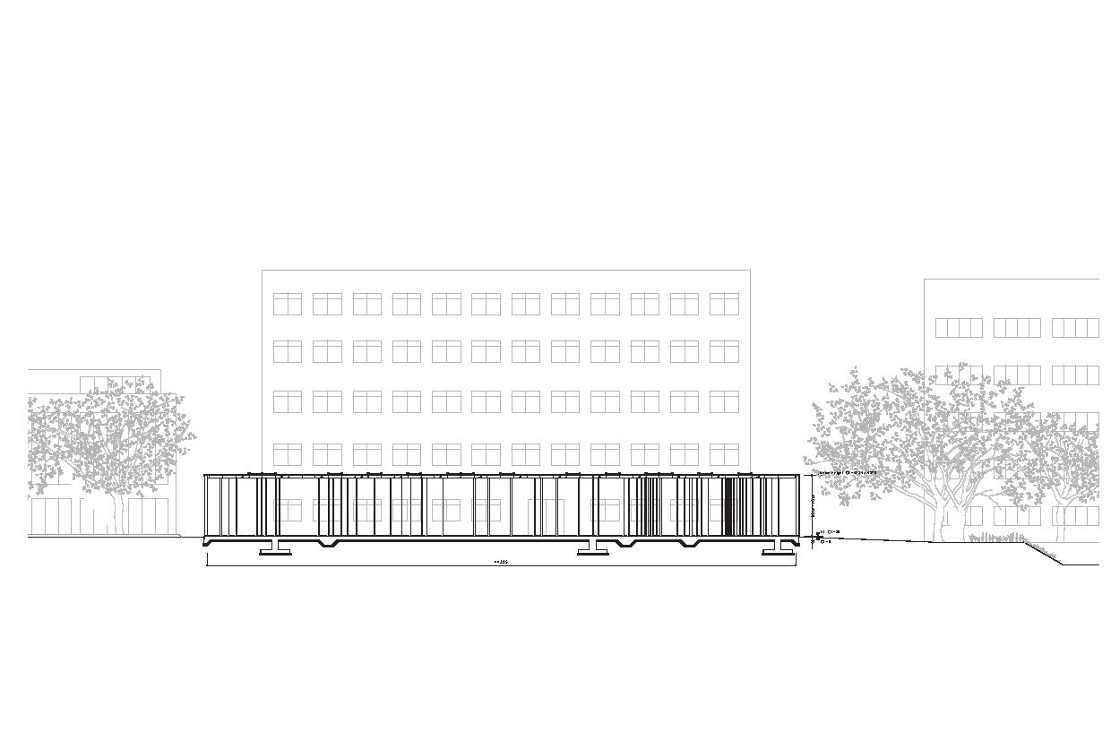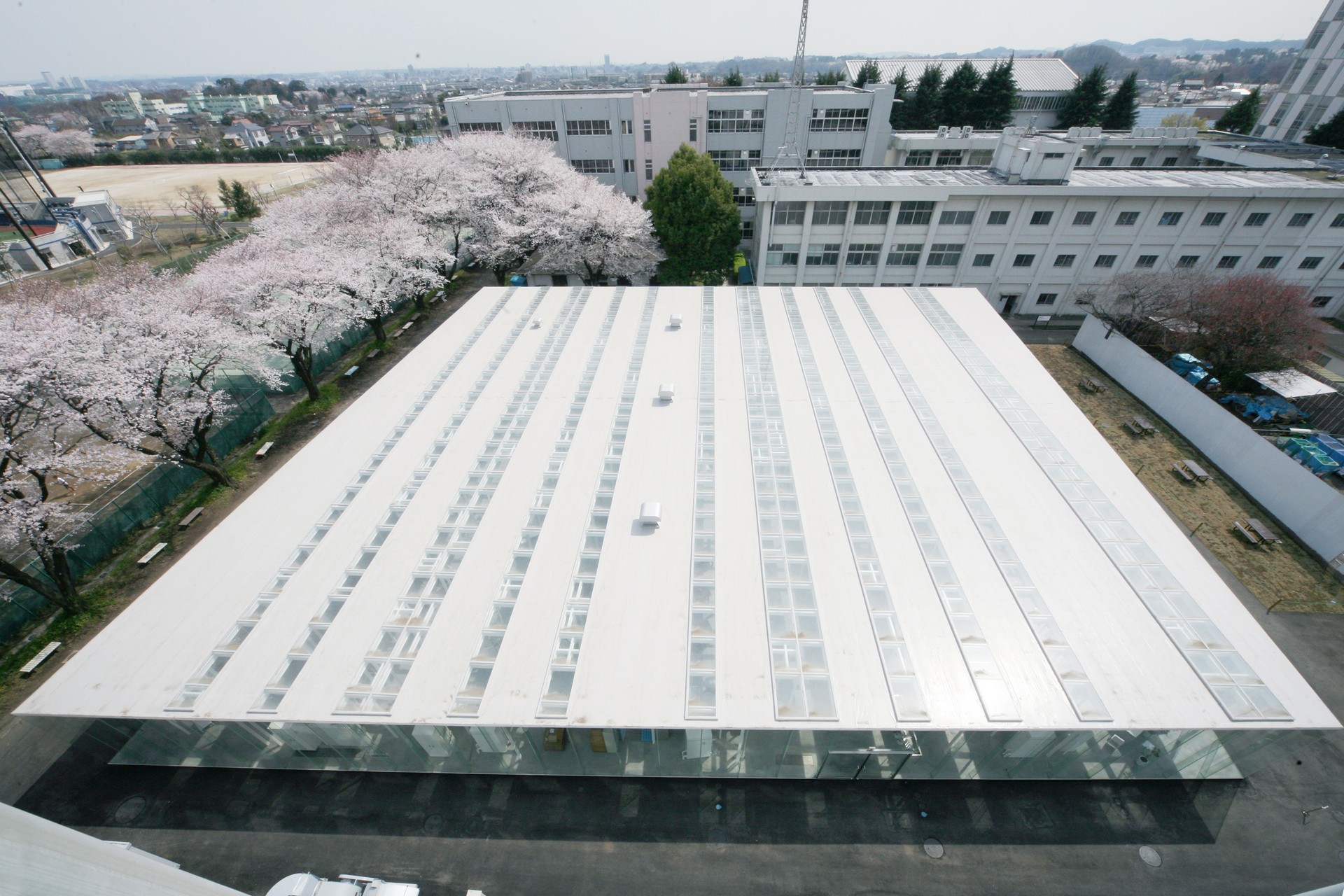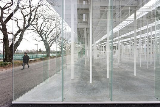 The project aims to seek the ambiguity of architecture. The building is a single-story, one-room, roughly 2000 square meters large. It is a facility for students to come in whenever they like. The facades are all glass. There are no earthquake-resisting walls or braces whatsoever. This building relies entirely on an ensemble of slight columns of varying proportions.