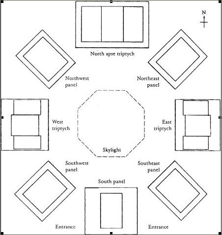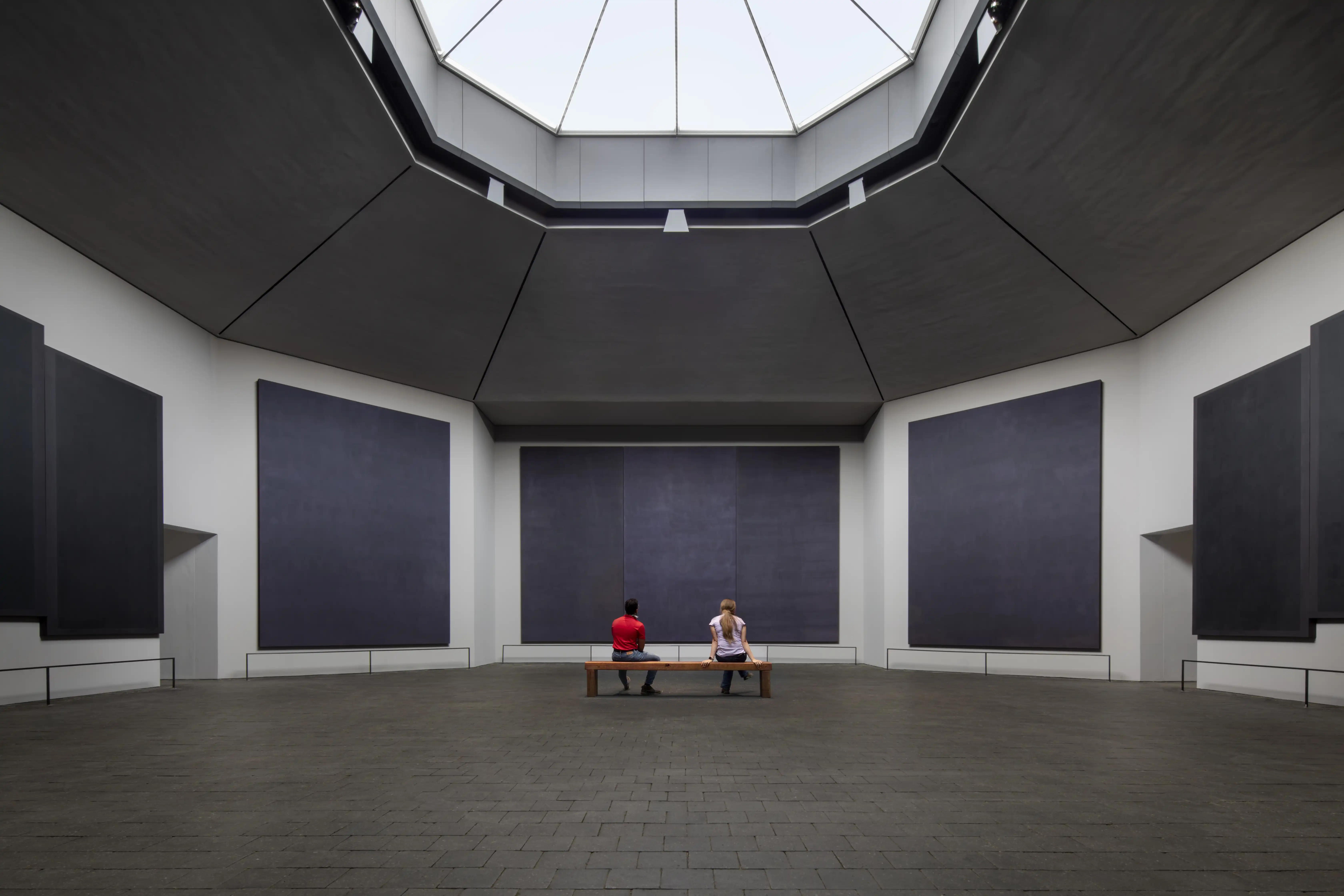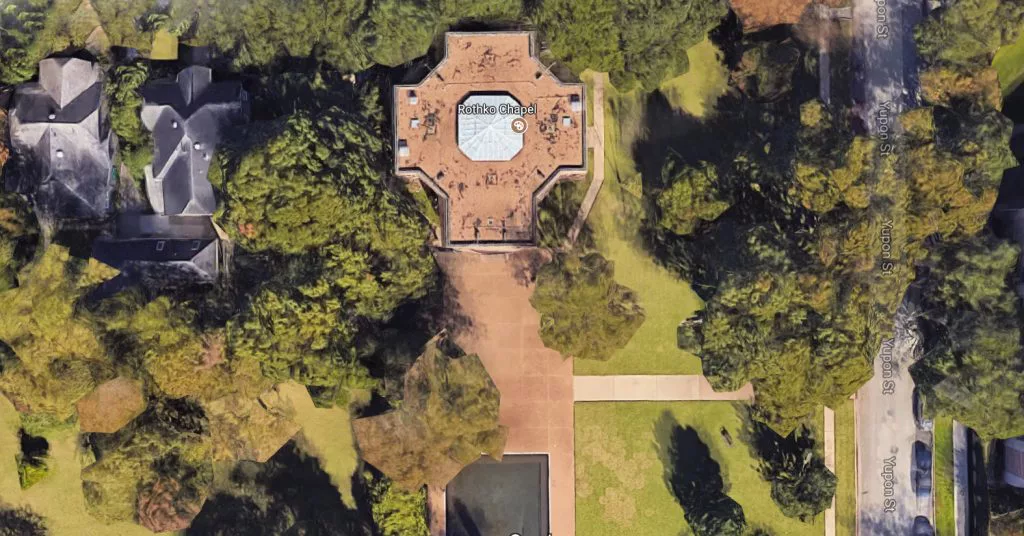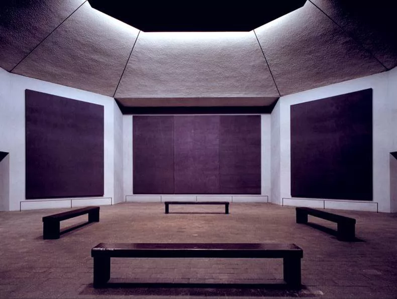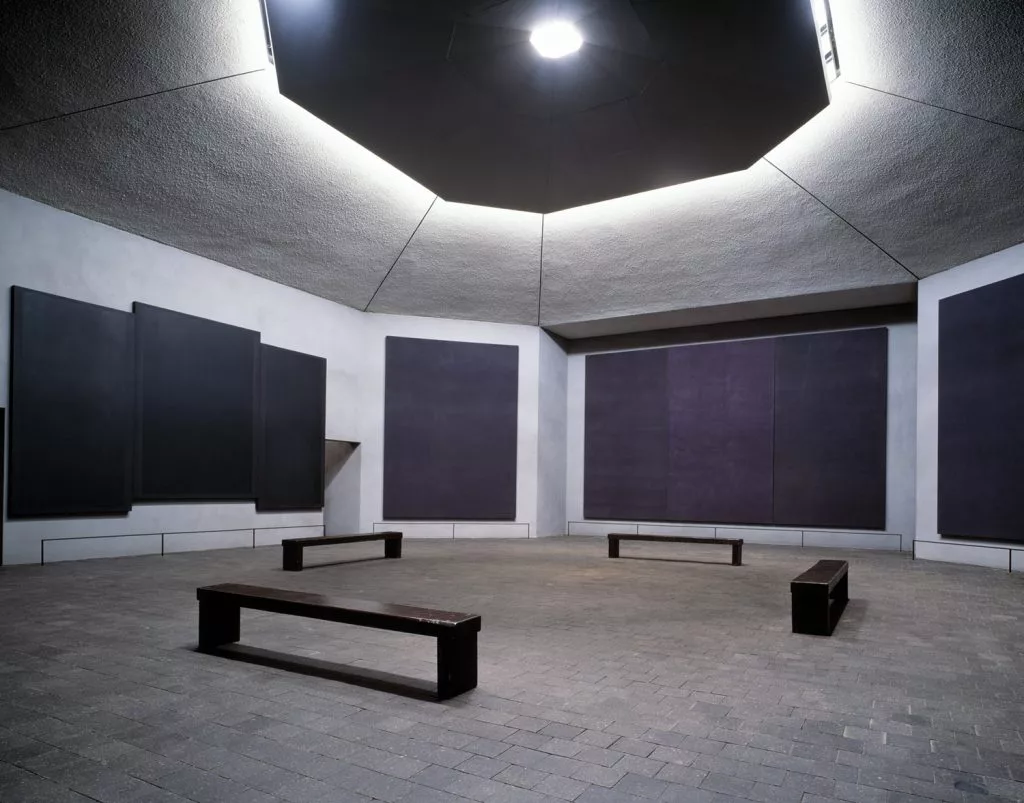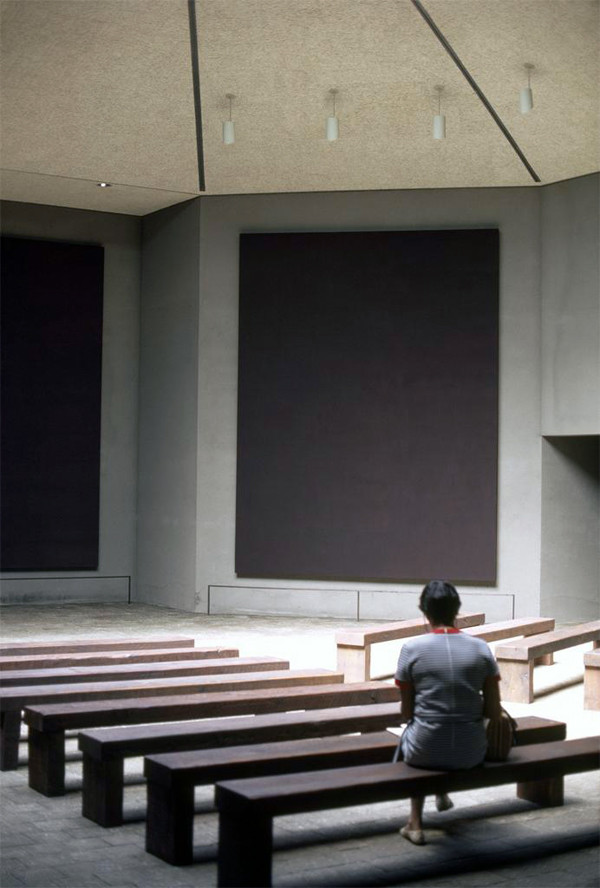 In 1964 Mark Rothko was commissioned by John and Dominique de Menil (who are also founders of the nearby Menil Collection that is housed in the Renzo Piano-designed Menil Museum and Cy Twombly Gallery) to create a meditative space filled with his site-specific paintings.