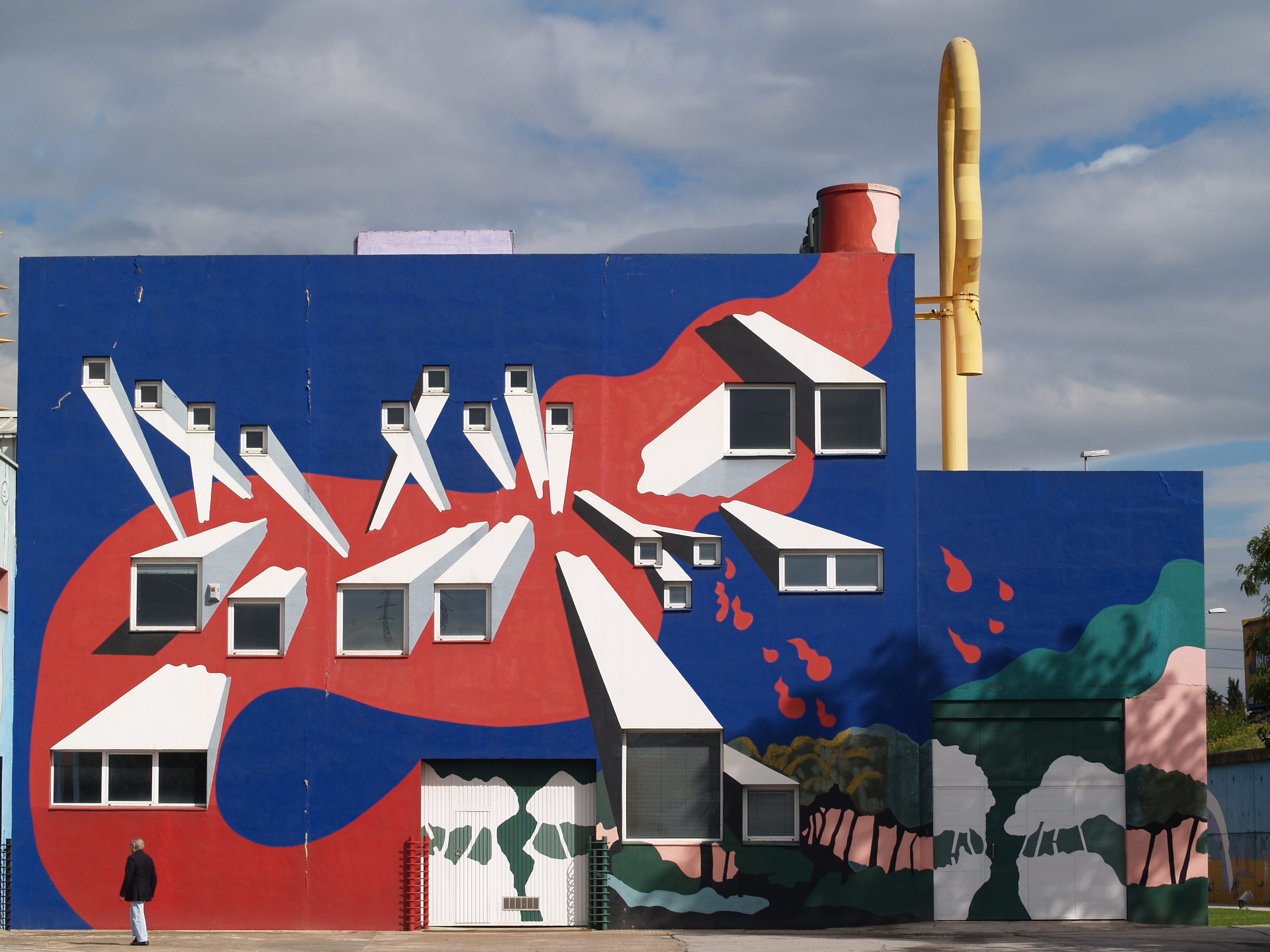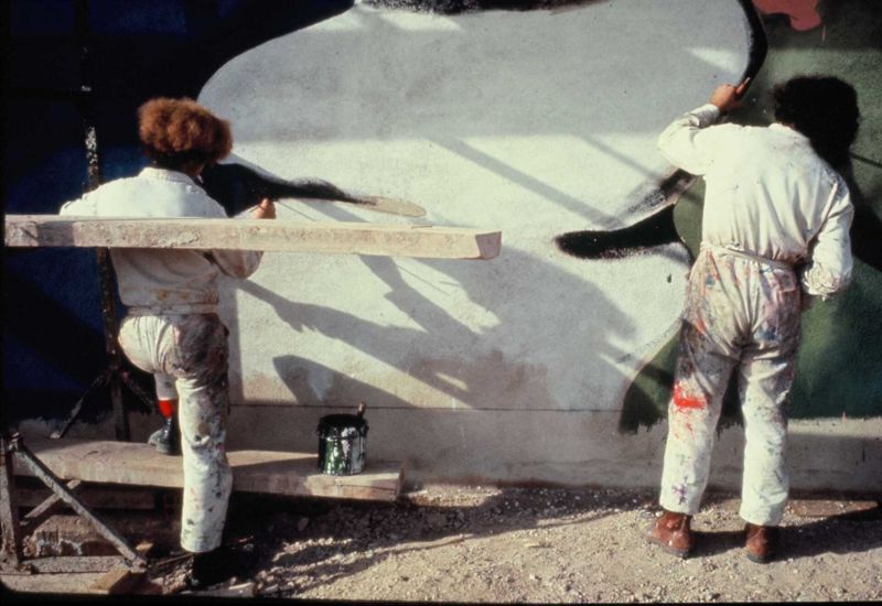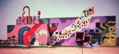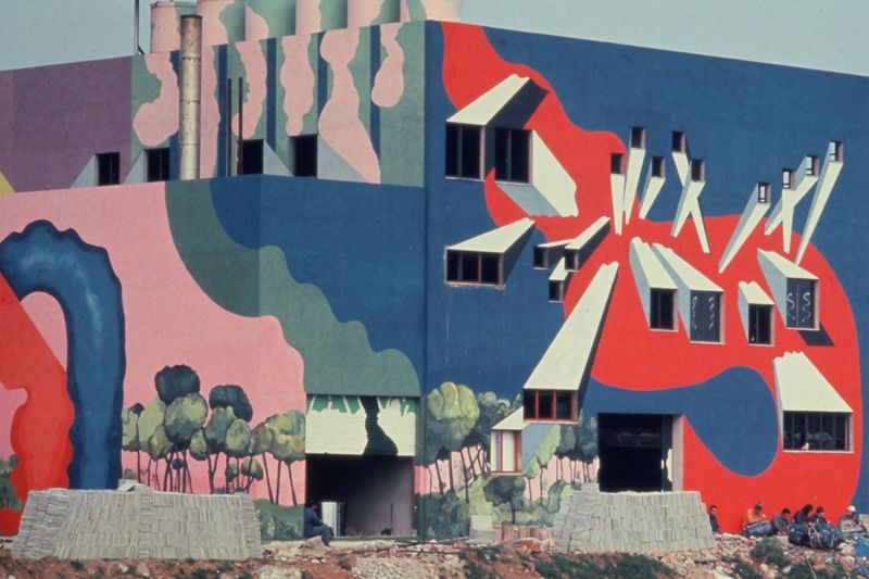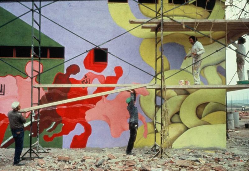 Hace poco más de cincuenta años, en febrero de 1971, se inauguró uno de los iconos más representativos de la cultura artística de los años setenta en Cataluña: las pinturas murales de la fábrica Tipel de Parts del Vallès, realizadas por los pintores Eduard Arranz-Bravo (Barcelona, 1941) y Rafael Bartolozzi (Pamplona, 1943 – Tarragona, 2009). El tándem de artistas se propusieron desbordar un encargo inicial del empresario Isidor Prenafeta -un mural en una sola pared exterior del edificio- y expandirlo a través de los más de dos mil metros cuadrados de superficie de fachada completa de la fábrica, participando incluso en el diseño de elementos estructurales, como las ventanas y la chimenea, así como la elaboración de esculturas -los 8 ocho corderos de yeso por el exterior- o divertidas iniciativas de pintura expandida -los camiones de la empresa, las camisetas de las trabajadoras, y otros objetos insólitos. No había antecedentes ante una iniciativa parecida: con cinco mes realizarán lo que será considerada como la mayor pintura mural del mundo.