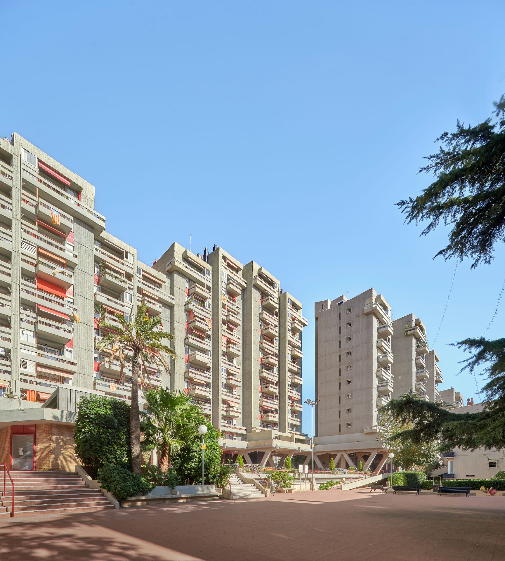 El proyecto se estructura en nueve edificios, todos ellos orientados prácticamente a norte-sur, con una ligera inclinación hacia el este, que rompía completamente la alineación del Plan Pons del entorno. Contiene tres torres de hasta doce plantas de altura que actúan como pantalla frente a la carretera Nacional II. El resto de las edificaciones, de planta baja y dos o tres plantas, se sitúan en la parte cercana a los edificios de planta baja y piso que predominan en este barrio.