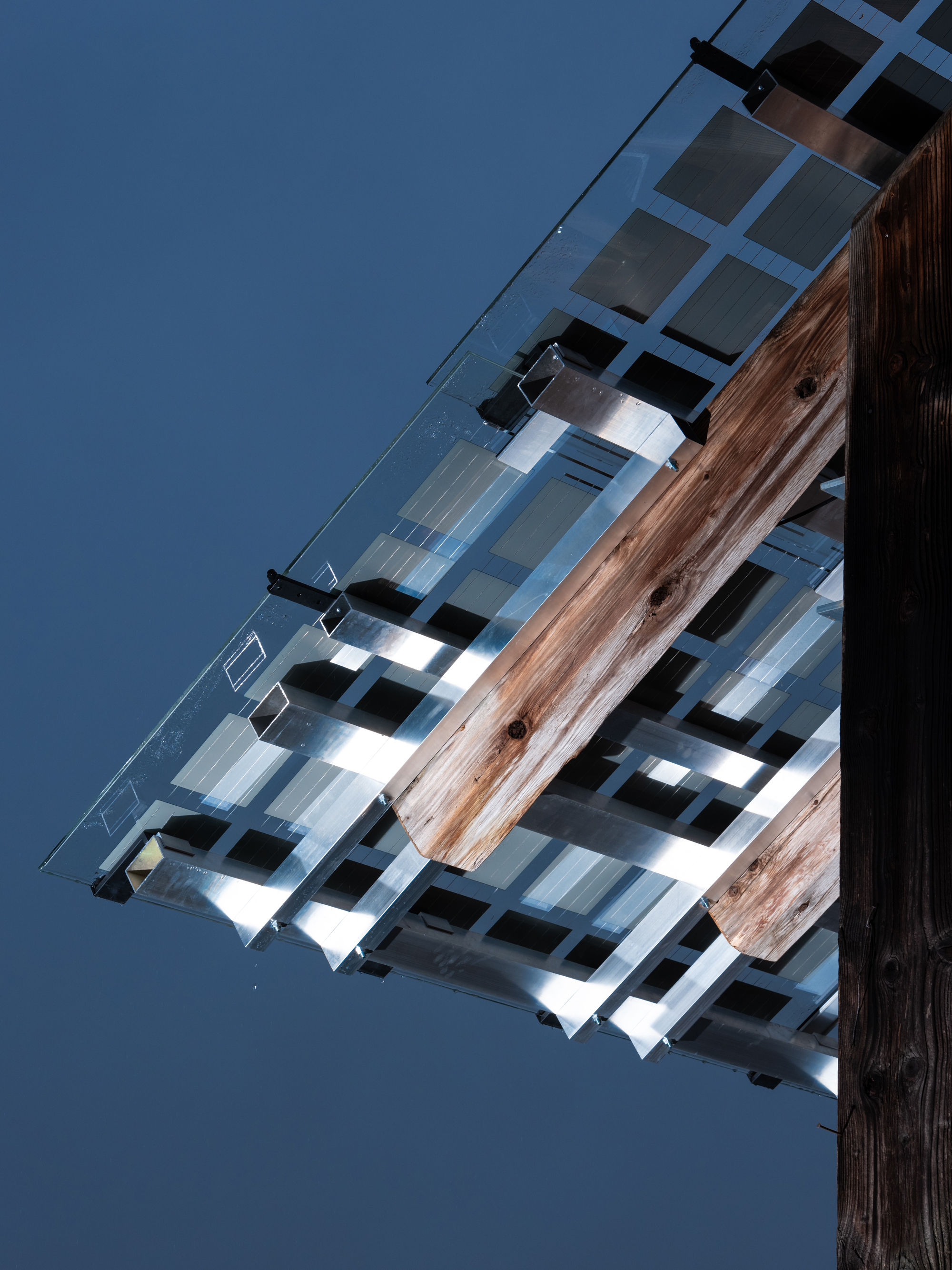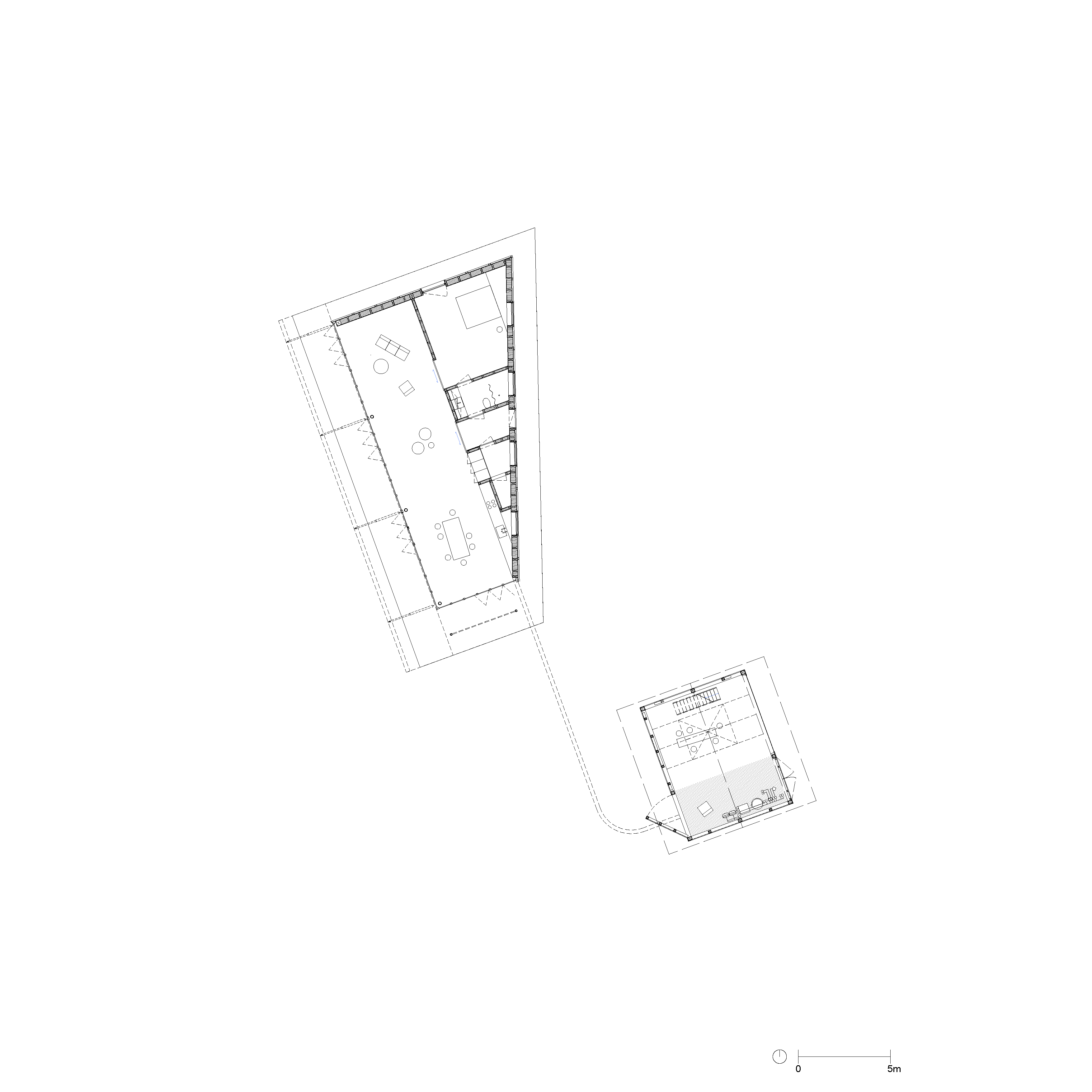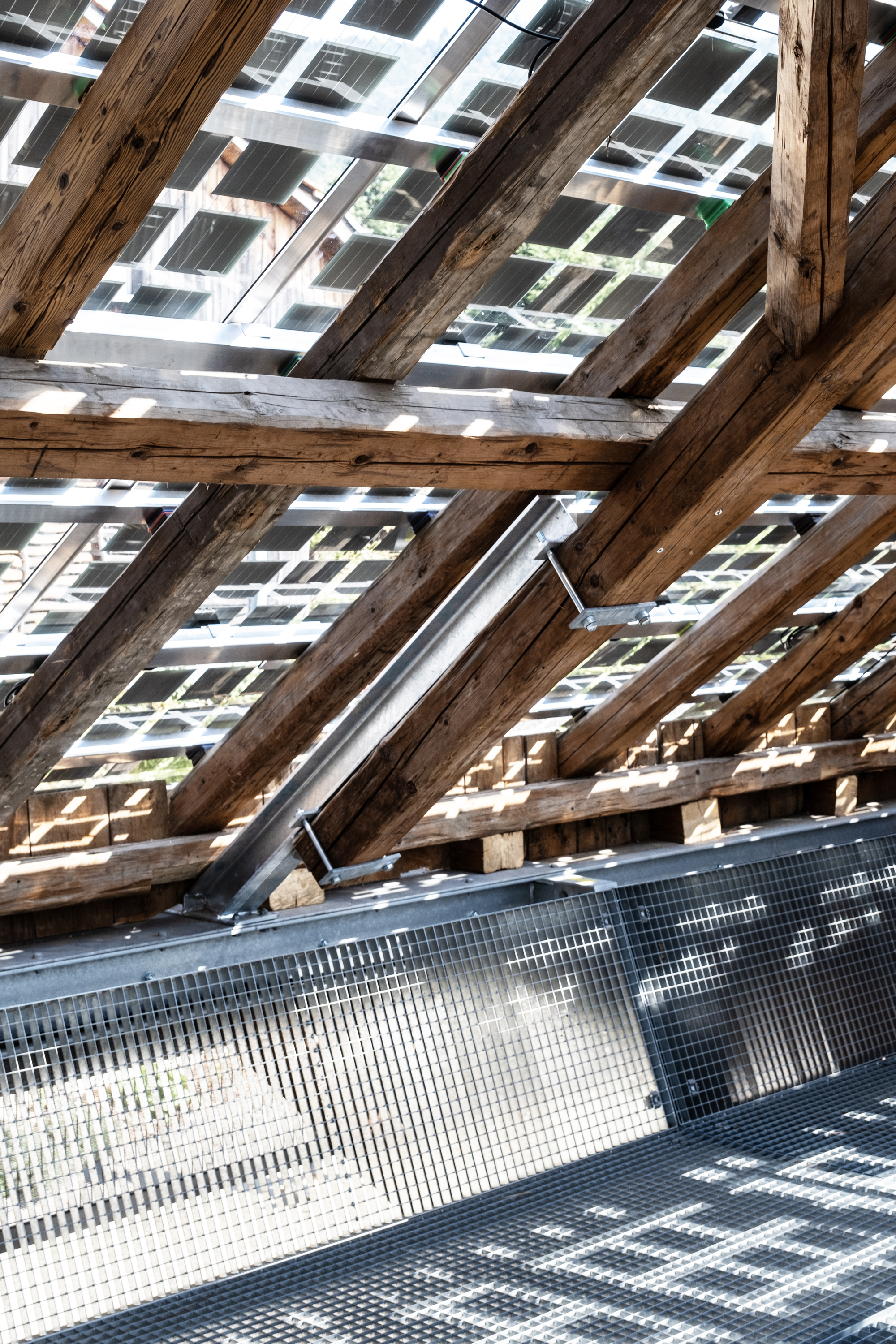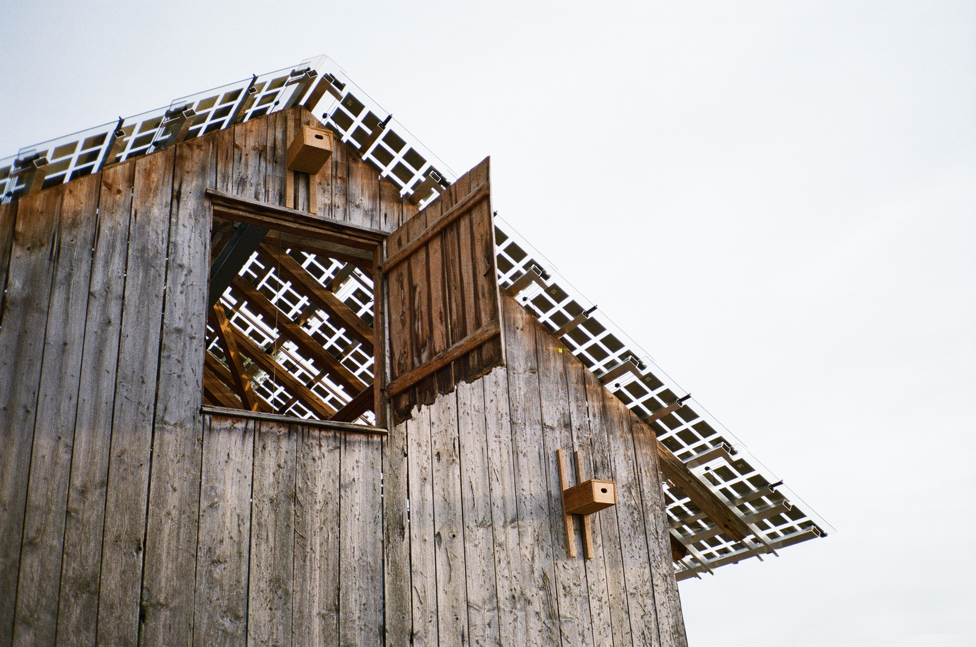 Originally intended to be dismantled, the neighboring wooden barn at the corner of the field was seen as an opportunity to extend the possibilities offered by the project. In this sense, all the interventions necessary to preserve the existing structure were twisted to increase the range of possibilities offered by the project. For instance, the new second-floor platform that strengthens the existing wooden structure, by being lowered, makes the upper level accessible, doubling the usable area.