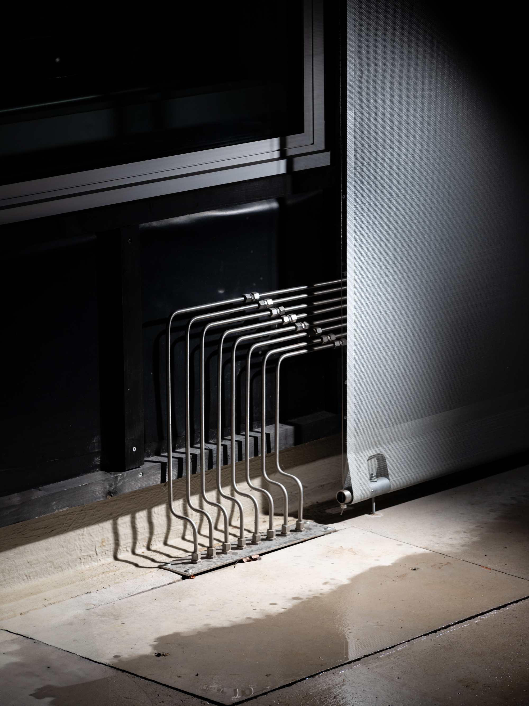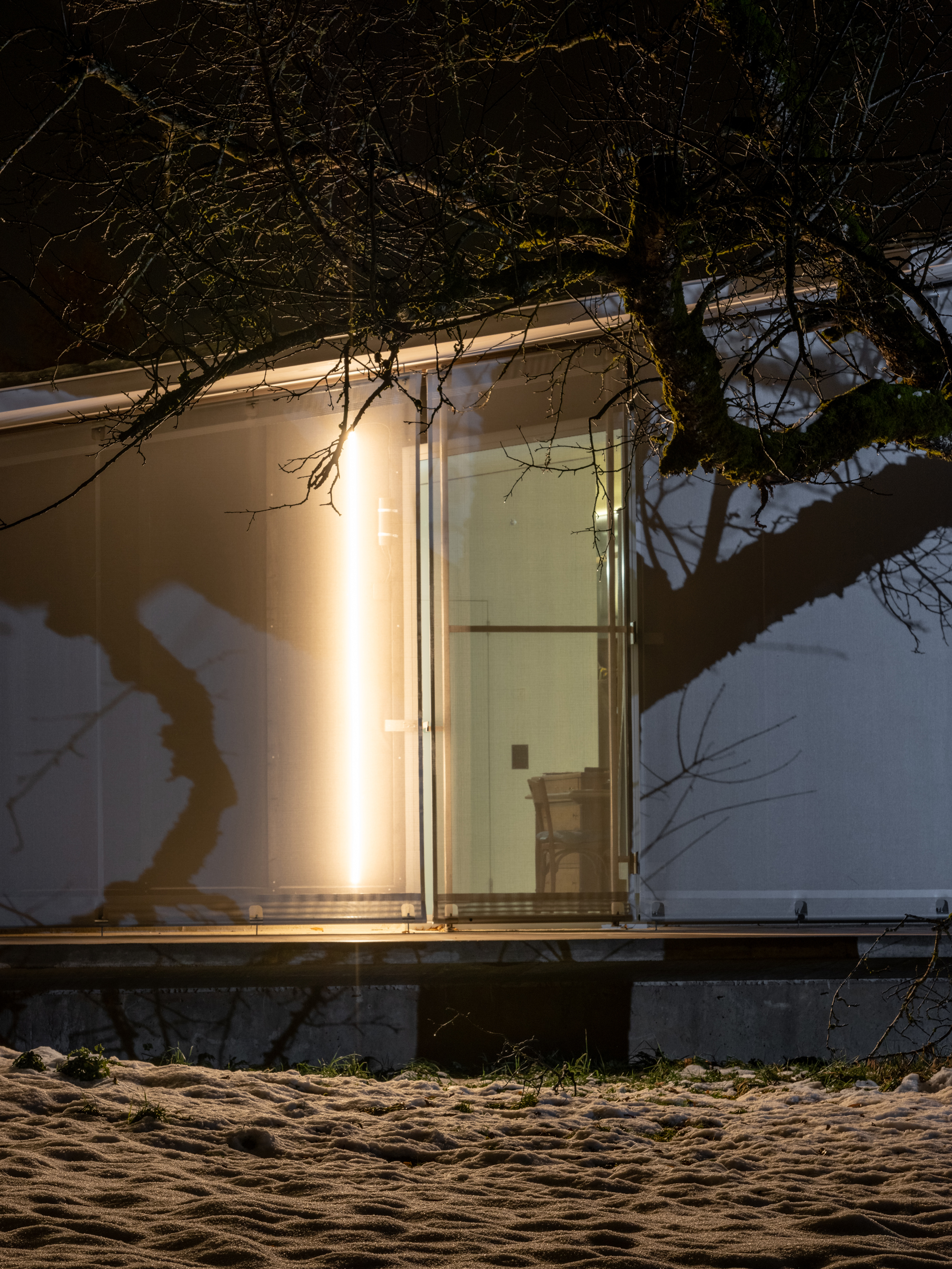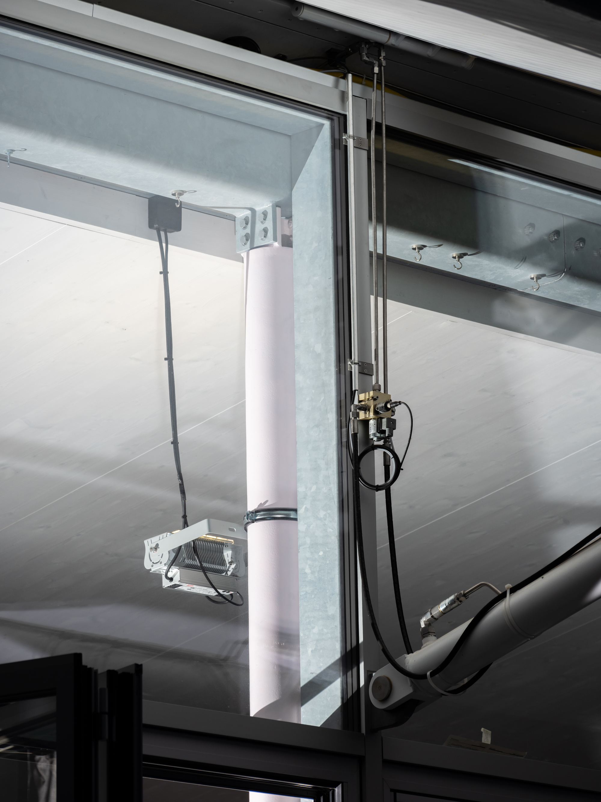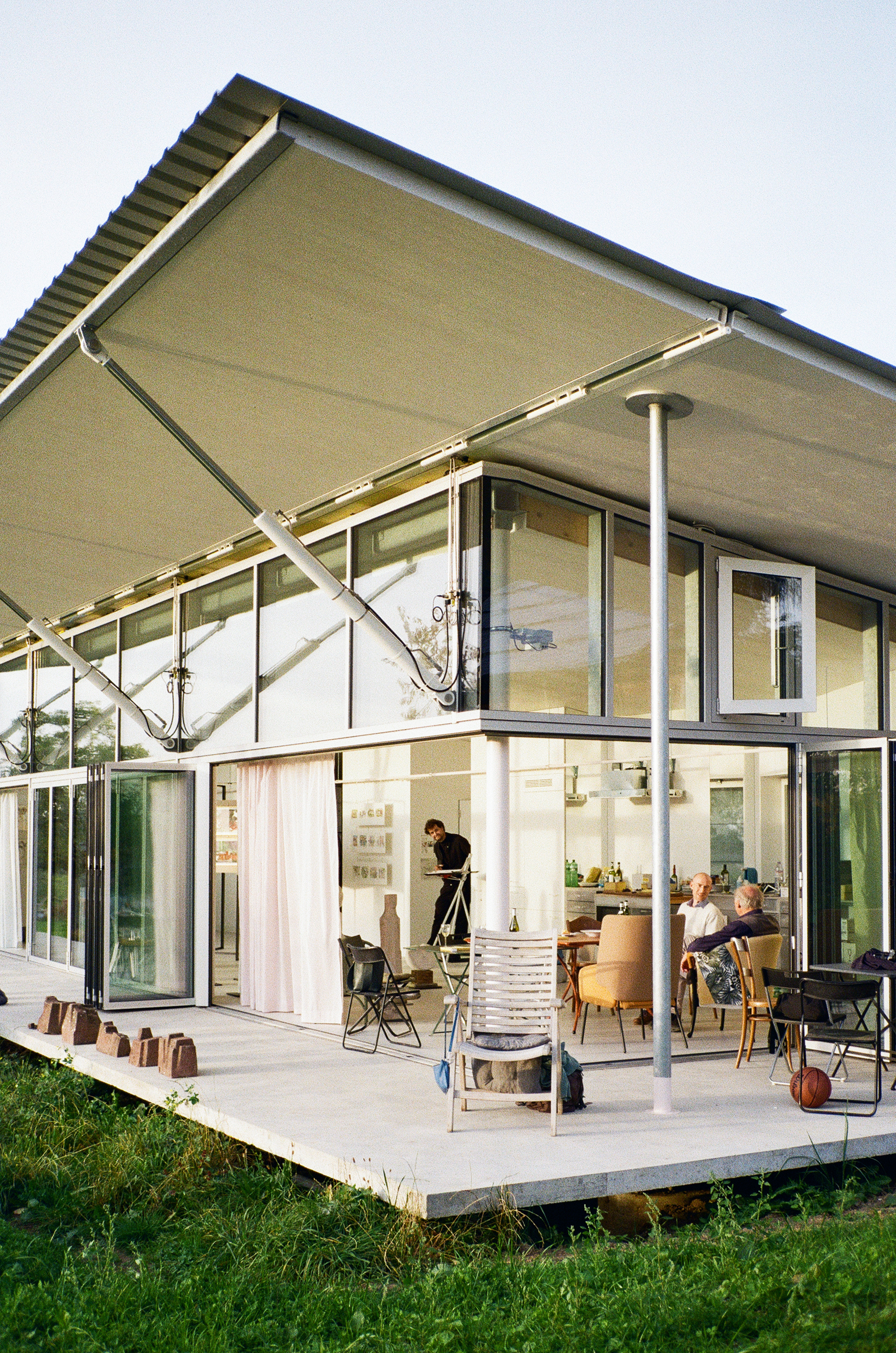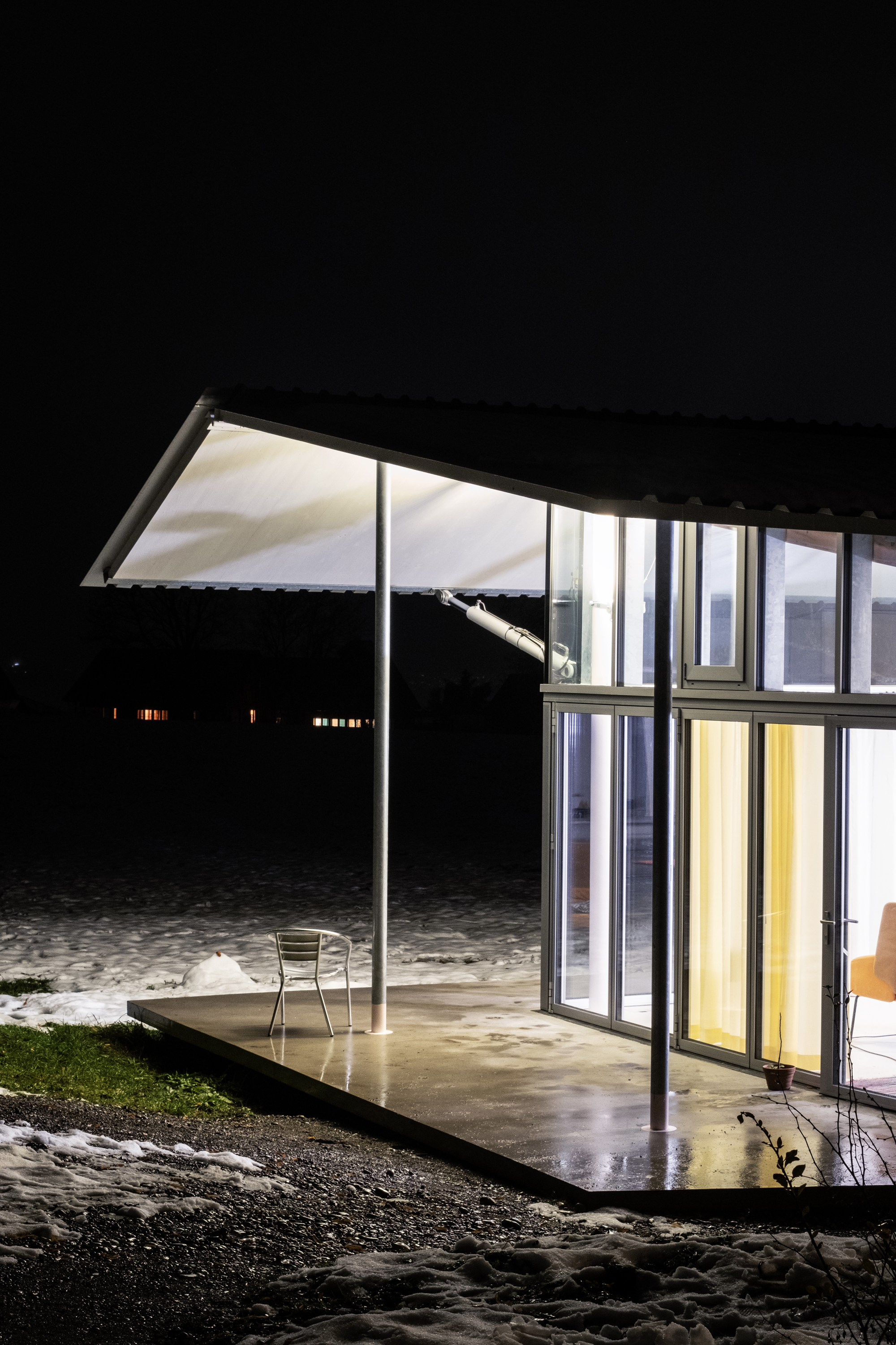 All further construction features and details of both the house and the barn support the reactivity of the project, from the glazed façade that can open completely to the different types of curtains that surround the large open space. The responsiveness of the house also lies in its ability to self-regulate the indoor climate and the humidity level of the air it contains: the façades are made of wooden frames and recycled paper insulation, allowing for optimal regulation of the humidity level, which is also maximized by the façade’s lightweight membrane.
