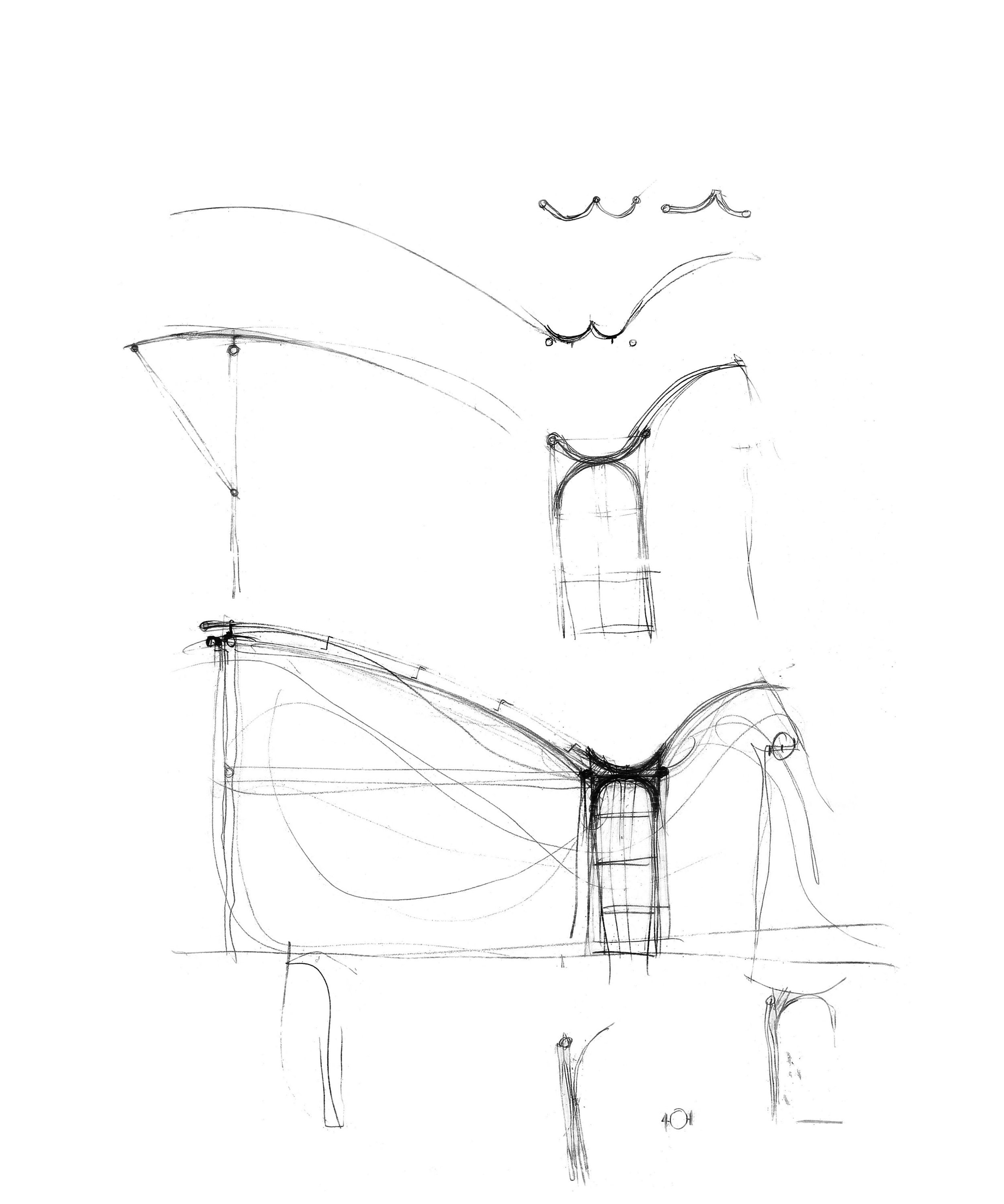 A repetitive bay structure is employed. Typically, large rooms with rear service facilities are divided by a lower circulation zone rendering a functional distinction in the bipartite section. The implied internal corridor supports an oversized gutter which connects at either end to two large single downpipes. In this way both the functional hierarchy of the house and the collection of rainwater are given symbolic representation in the east and west elevations.