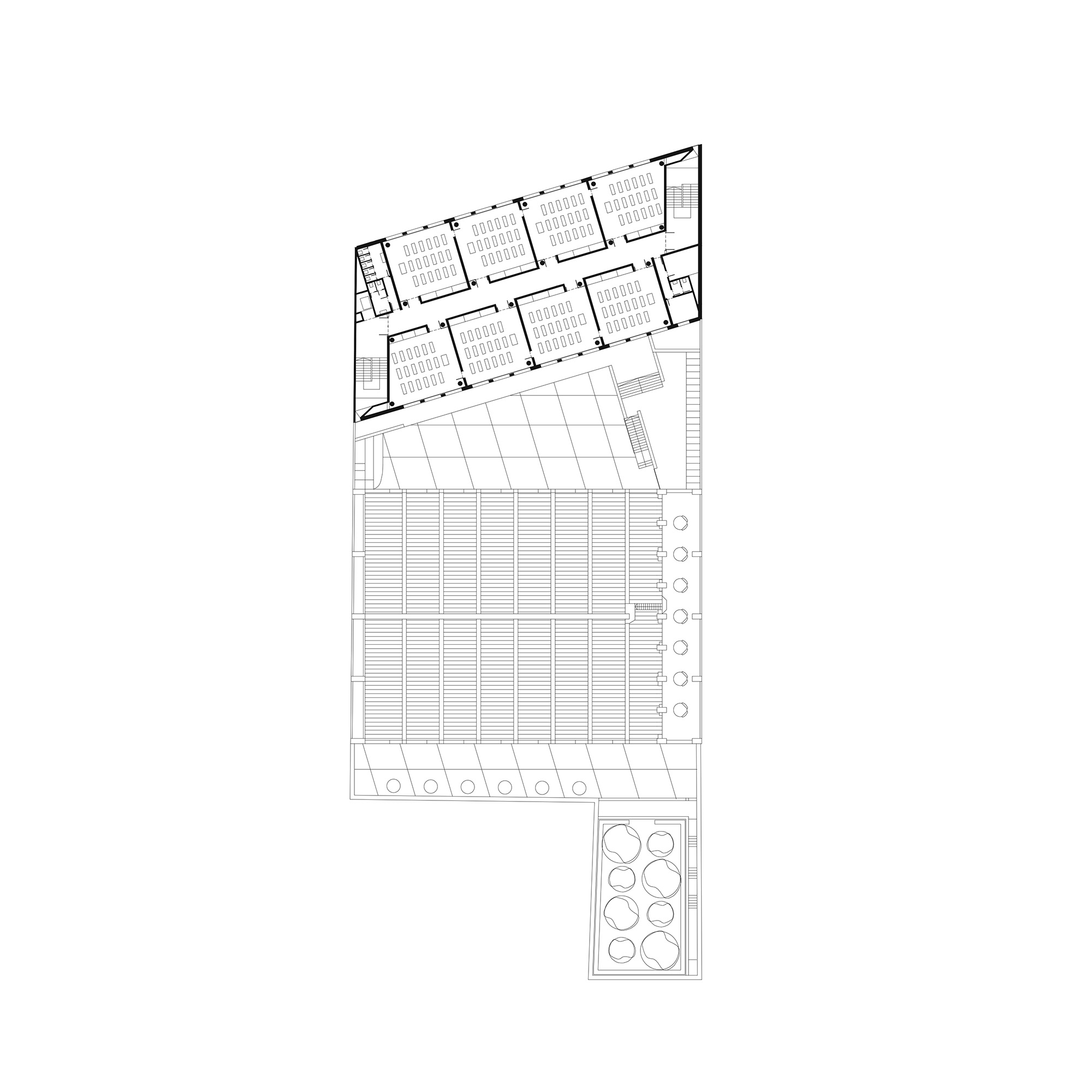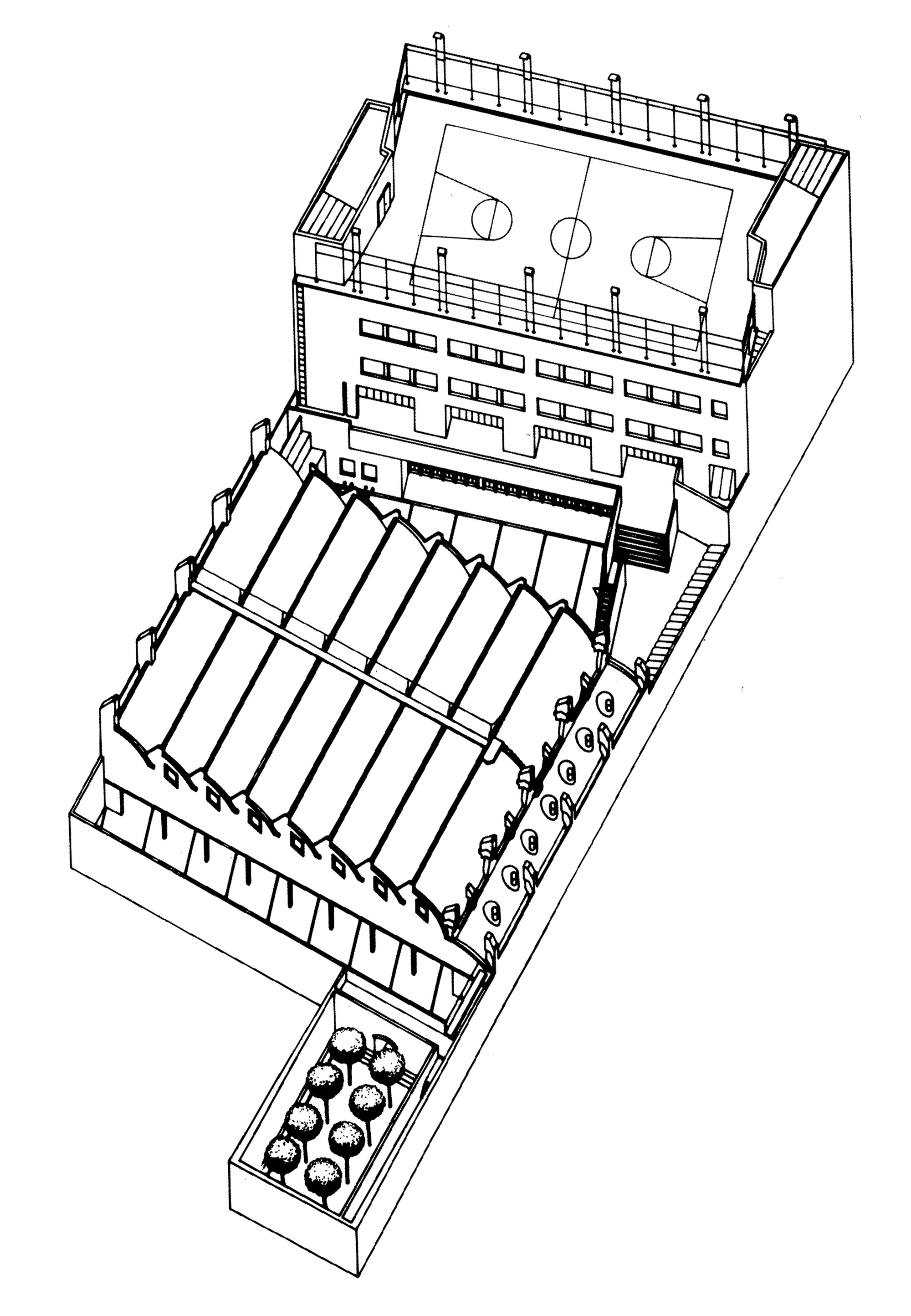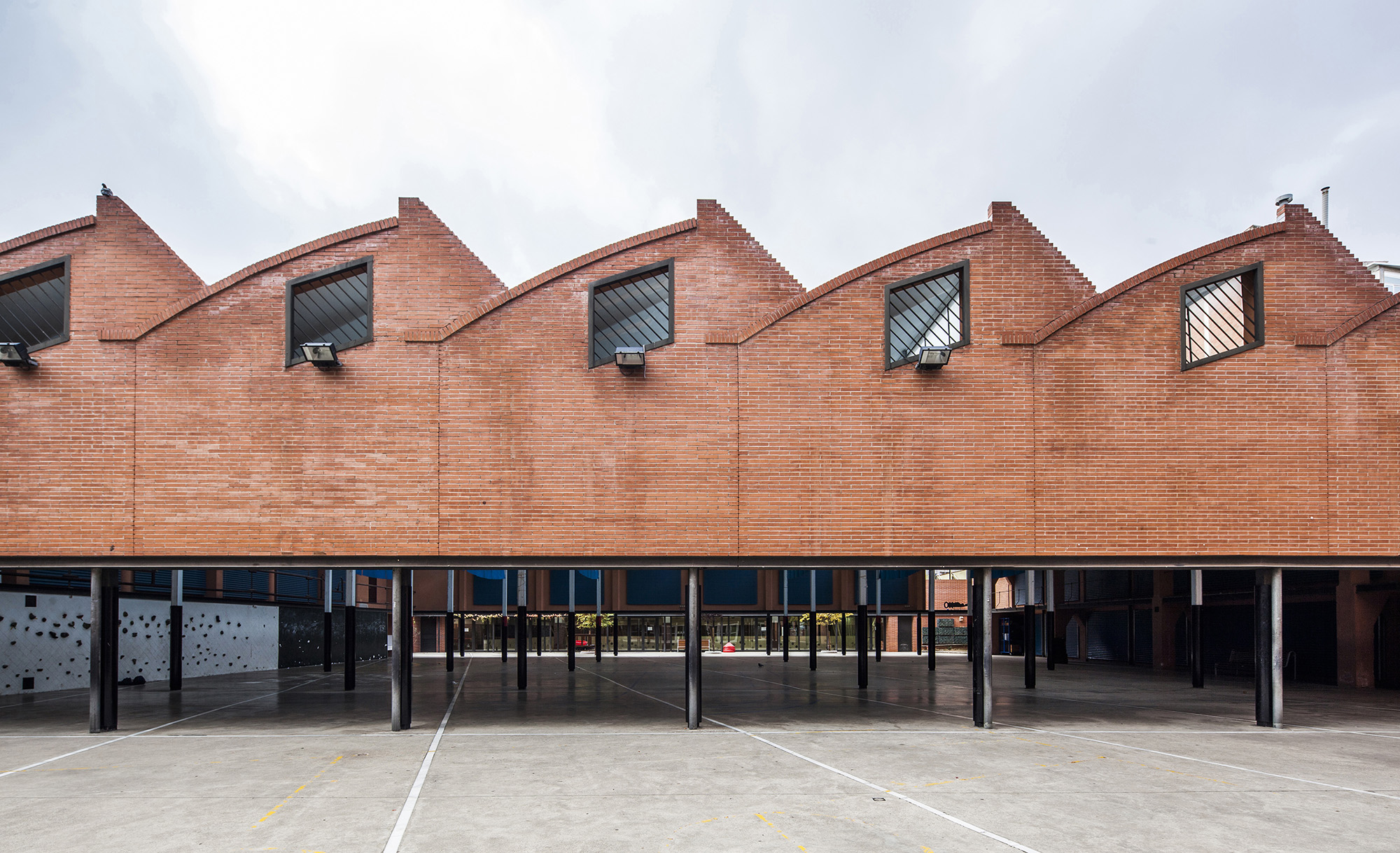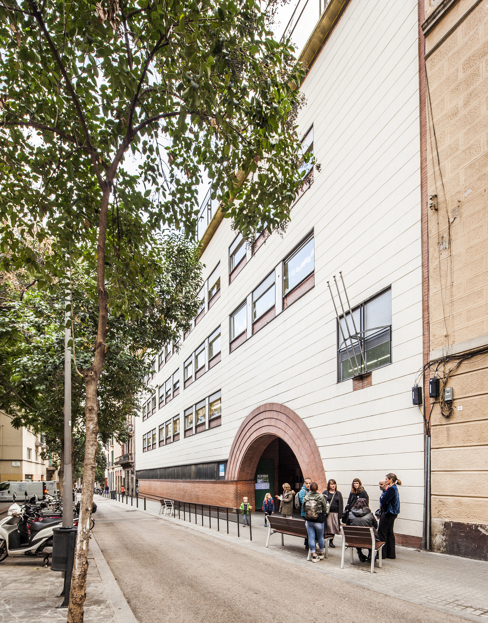 In a high-density area of Barcelona’s Gràcia district, the Josep Maria Jujol school is built on a plot between plain dividing walls. The block’s inner patio contains the warehouses of the old Mañach workshops (1916), built by the architect Josep Maria Jujol. Given the lack of space, this project would also be multi-storey, in line with the street of Riera de Sant Miquel. It would take up all of the available land and, therefore, close up the block. The obligatory sports court is placed on the roof, while the floor plan is easily adapted to fit the brief, and a passage on the ground floor allows access towards the Jujol warehouses. Both the interior and exterior are clad in brick, but the windows are covered in fine pieces of artificial stone, creating windows divided into three sections, fitting the width of the blinds.