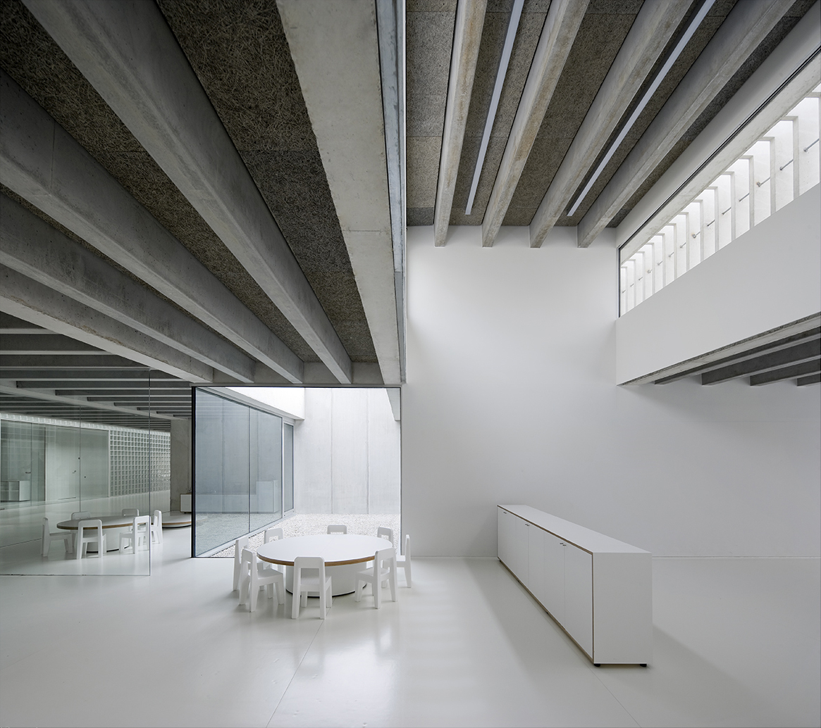 Por el contrario, con este proyecto de Carlos Pereda y Óscar Pérez las palabras de Breuer alcanzan otro sentido, porque sinceramente creo que este edificio es de los que mejoran con la edad. Imagino esos pasillos y esas aulas llenas de cartulinas pegadas y de niños corriendo y veo un proyecto más real y completo, como si sus volúmenes lisos y blancos necesitaran urgentemente ser “ensuciados” por las personas destinadas a ello.