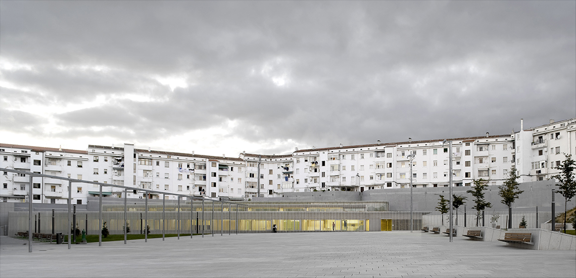El proyecto en sí es limpio y coherente con un contexto complicado, un solar casi triangular en el límite de un barrio periférico de la capital navarra y con 2 de sus 3 lados haciendo las veces de medianera trasera con las edificaciones preexistentes.