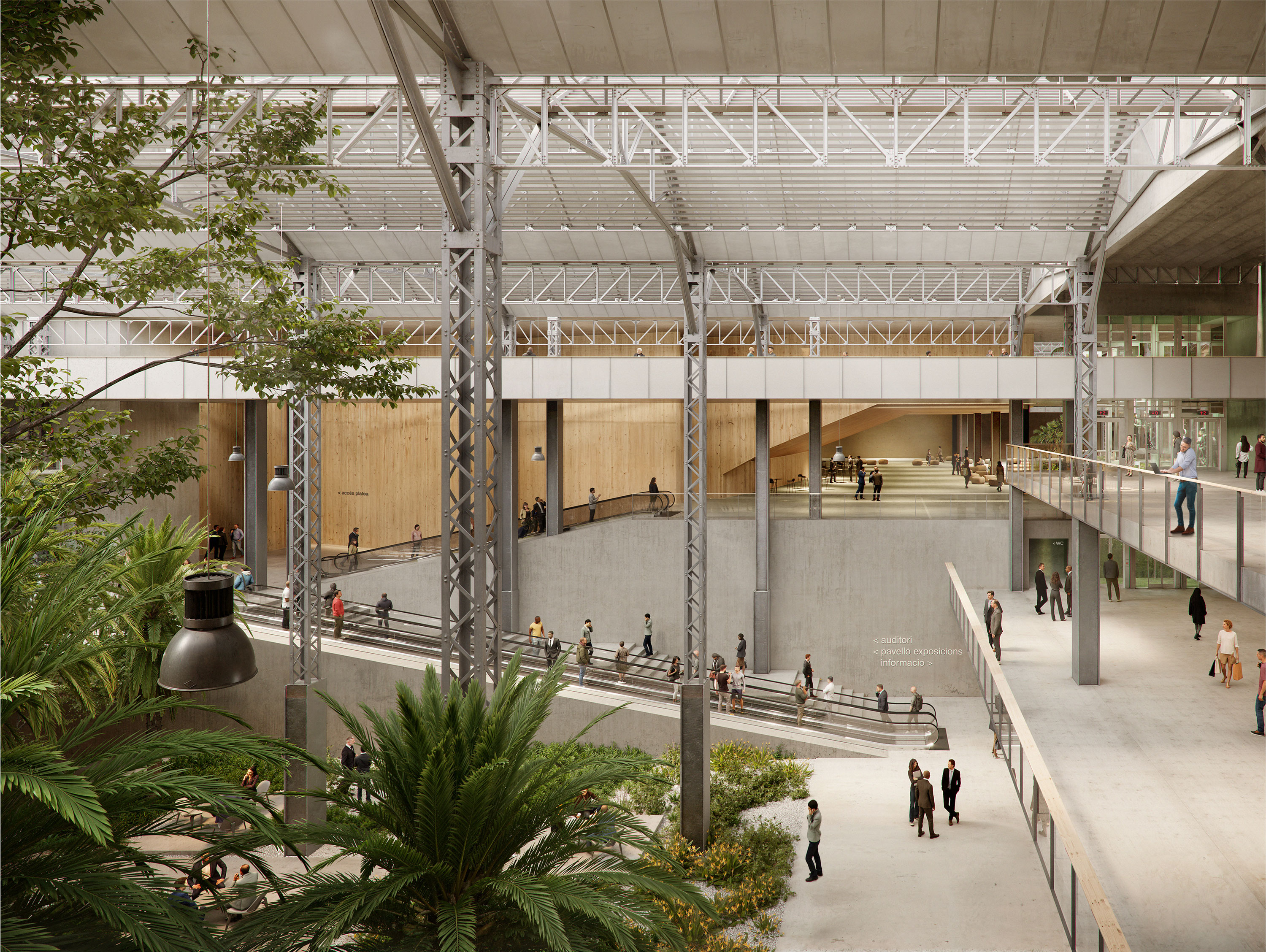 - Considering Montjuïc’s natural surroundings as part of the site’s heritage and incorporating its greenery into the interior as an extension of the landscape. The interior garden serves both as an organizing element for the space and as a heritage link between Montjuïc and Barcelona.