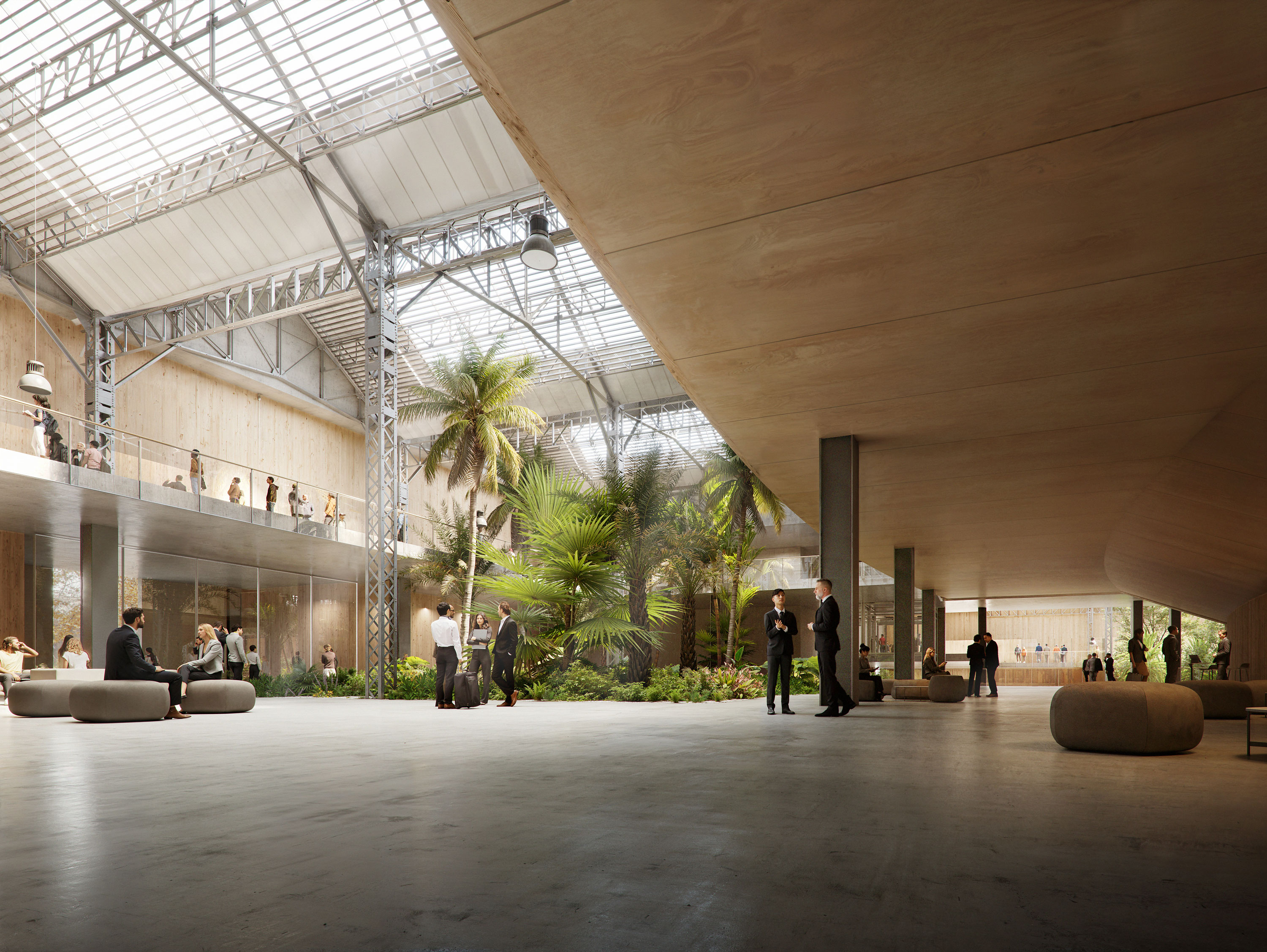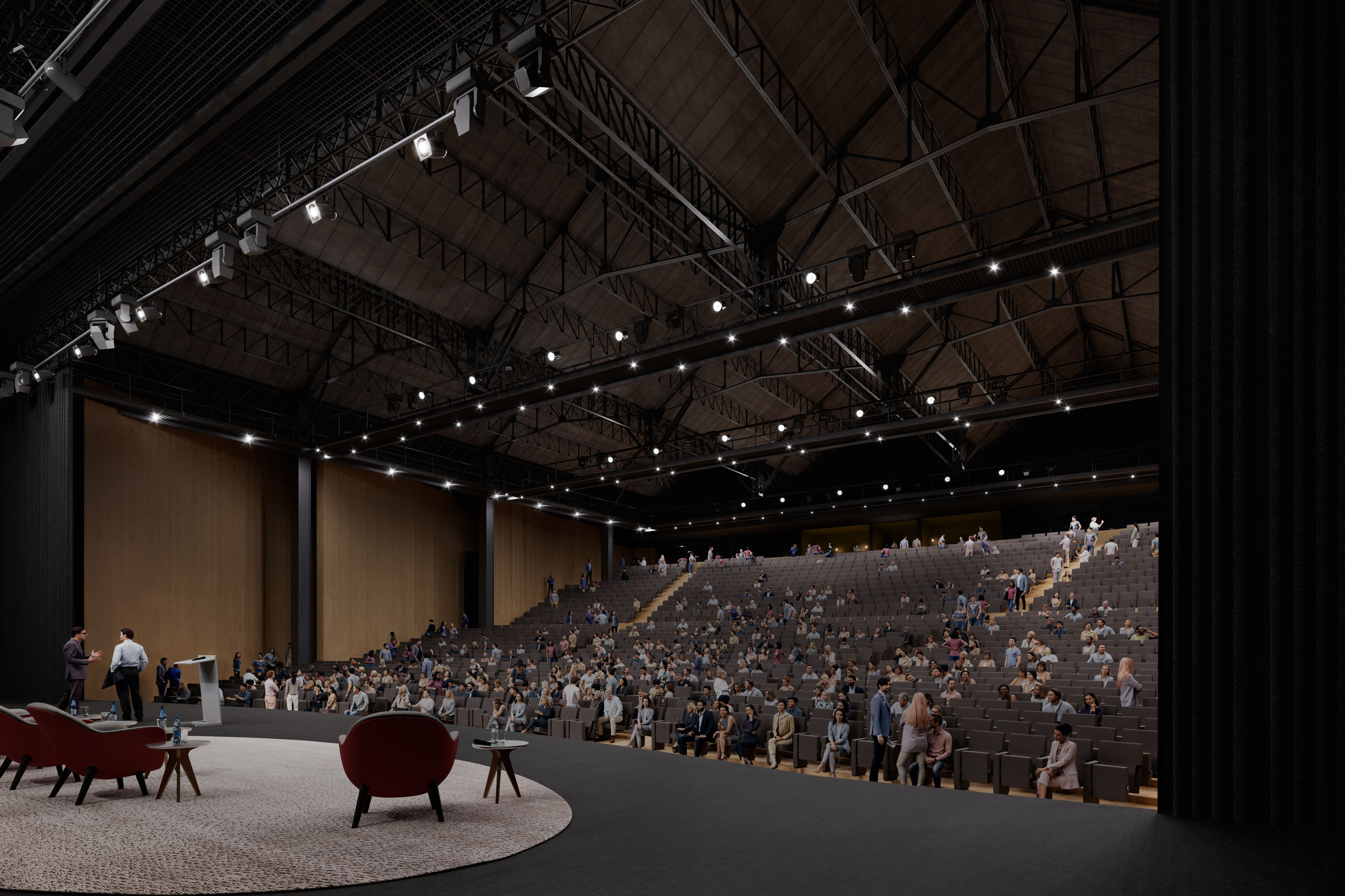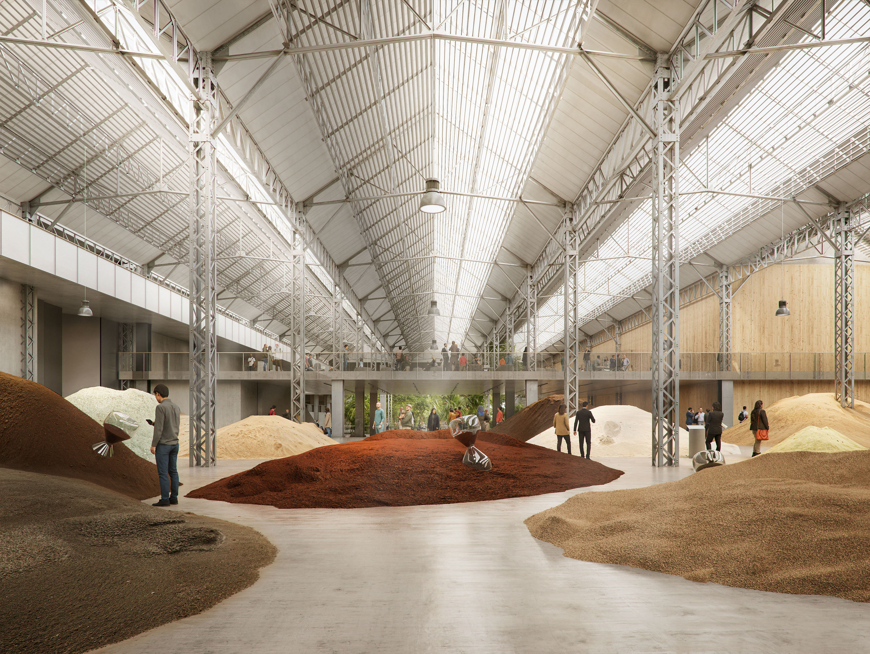 - A new UMBRACLE, maintaining and highlighting the existing metal structure that connects lobbies, circulation areas, and halls to ensure continuity in spatial perception. This recalls the origins of the original structure and its relationship with similar exhibition and industrial structures from the 19th and early 20th centuries across Europe.