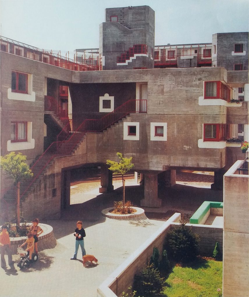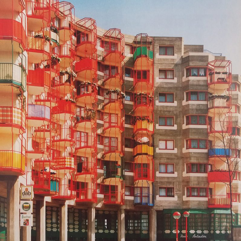 En algún lugar leímos que incluso la hiedra pintada en algunas paredes fue realizada por Böhm, de incógnito, cuando acabaron el proyecto, con la intención de que los recién llegados vecinos siguieran el ejemplo y pintaran sus propias plantas en las fachadas. Los 40 años pasados han permitido que las hiedras sean ahora reales, y trepen por algunas fachadas por encima de aquéllas que pintaron entonces.