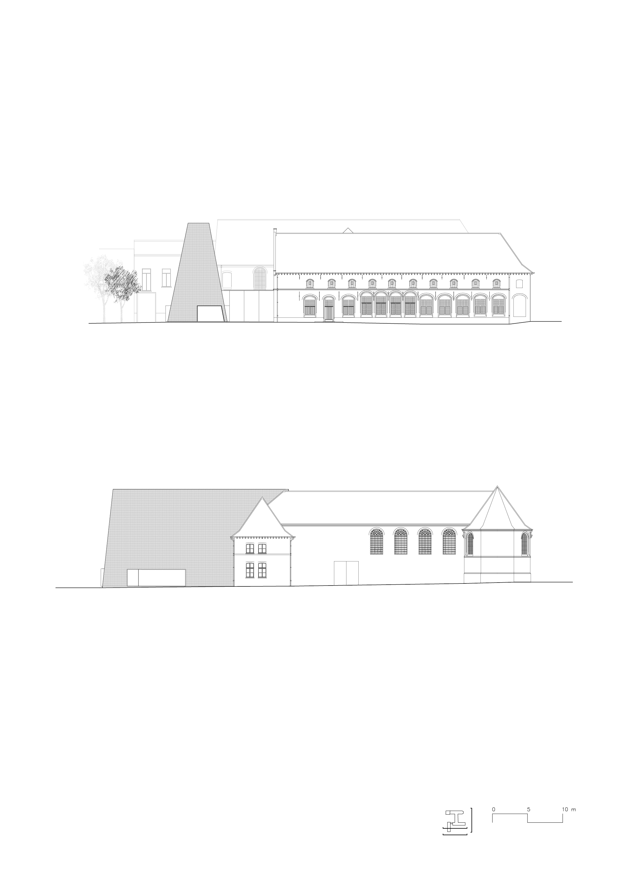 The proposal reveals the beautiful spatiality of the original structure of the abbey chapel and dormitories, restores the former courtyard and adds a state-of-the-art subterranean exhibition space. Each of these ‘rooms’ has a different atmosphere, creating space for art and shared activities in their own specific ways.