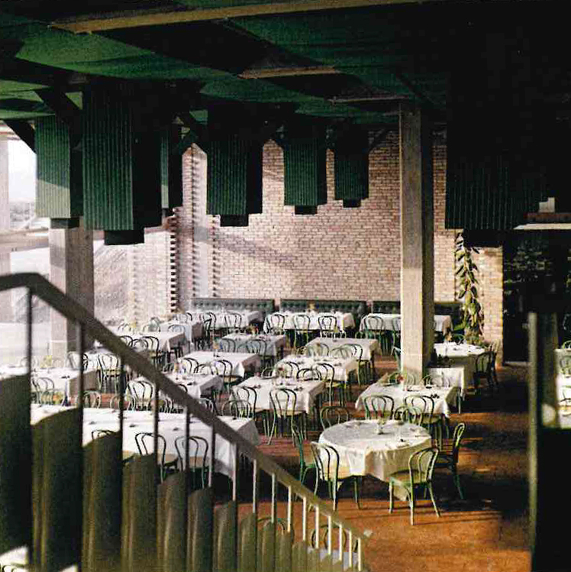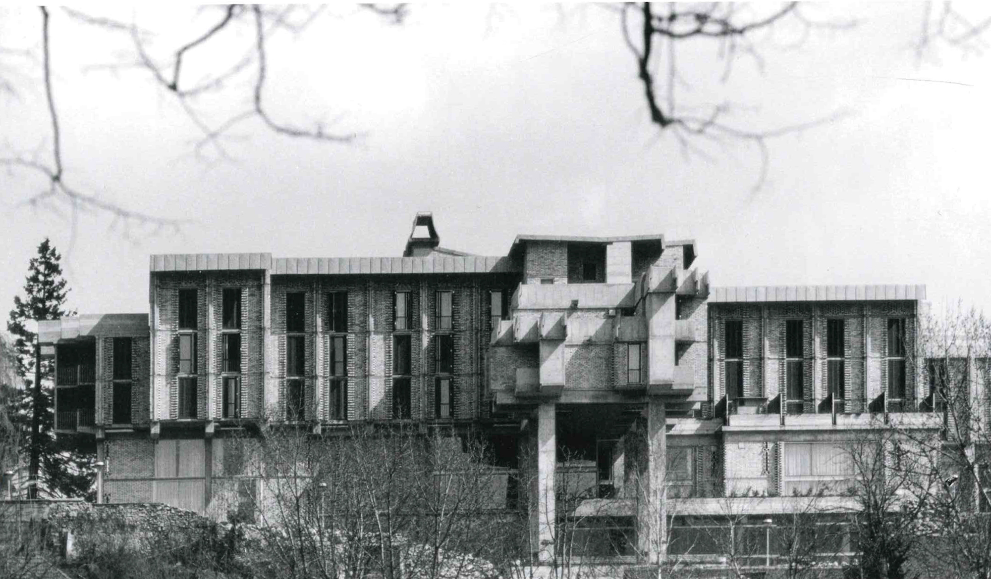 The building itself consists of a reinforced concrete frame structure filled with masonry. Most of the hotel operations (ground-floor promenade, restaurant terrace, and hotel room balconies) are oriented westward into the valley, offering the most interesting views. While the facade of the hotel maintains a compact appearance towards the square, from the valley side, the mass seems as if it wants to burst forth. Ravnikar himself compared his concrete protrusions at the edges of the attic to “feathery bird decorations.” The richly articulated shape above the southwestern slope Ravnikar likened to a “castle standing in harmony with the surrounding nature.”