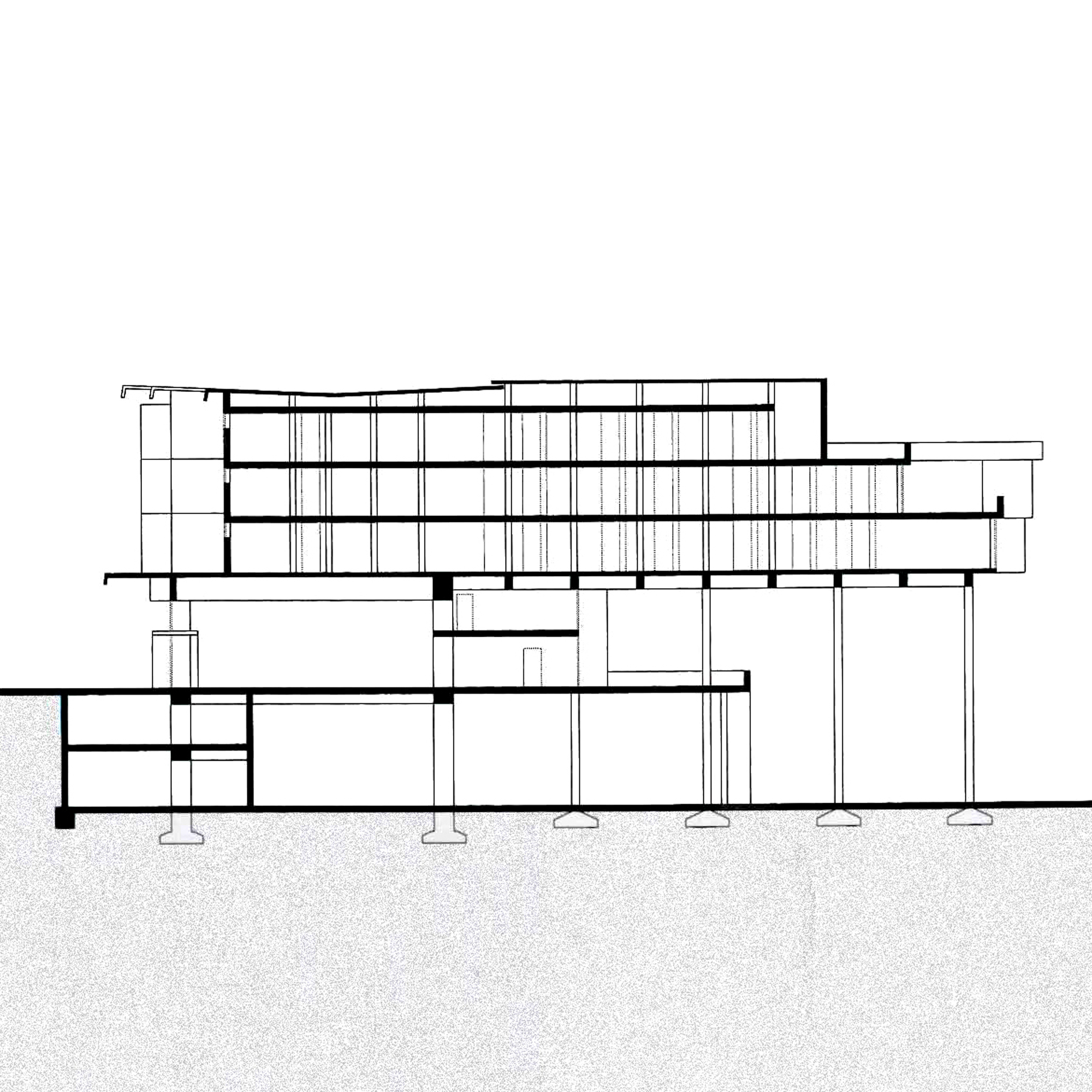 The hotel offered a classic range of services from an indoor pool, sauna, café, and restaurant to a disco. The faded glory is not saved by the current tenants, who offer clothing and slot machines in the ground-floor spaces. The hotel has also undergone several stages of extensions, which like swallow nests, have been attached to Ravnikar’s structurally daring building, each renovation diminishing its strength.