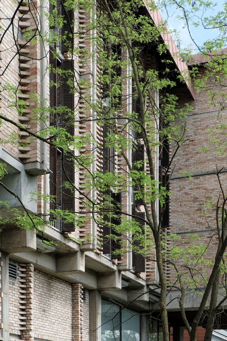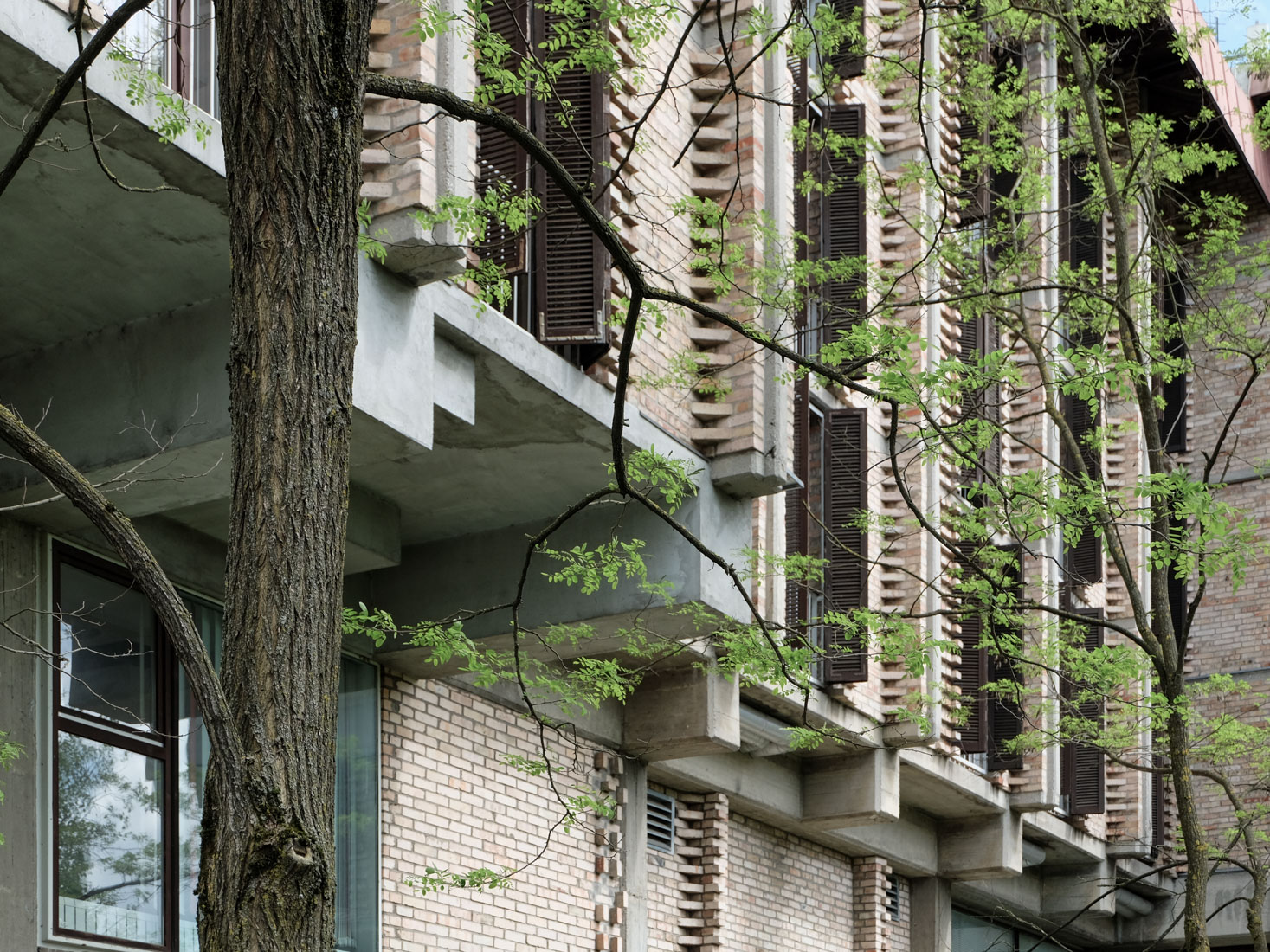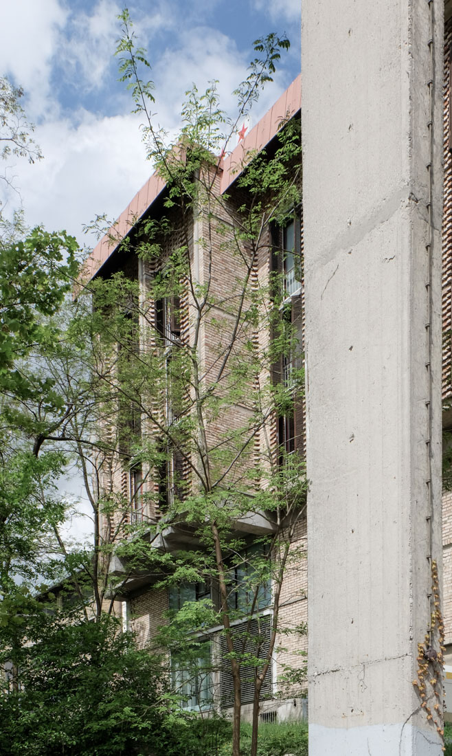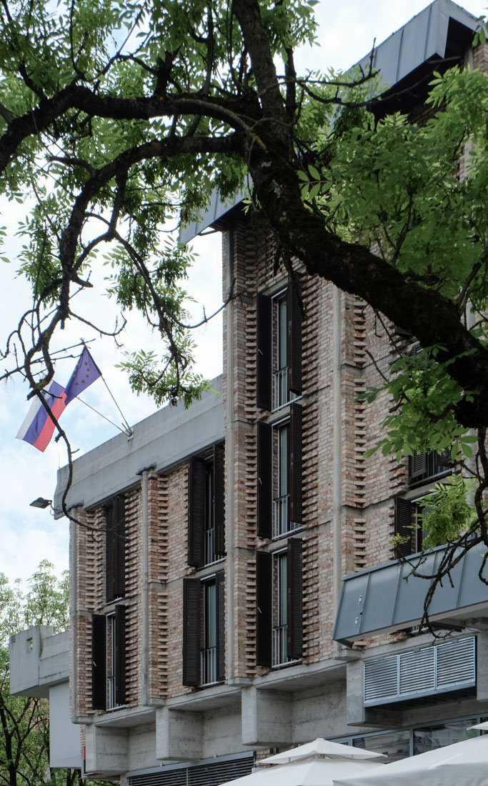 The hotel is a place for a short stay, and the people in it are like migratory birds, which is why Ravnikar built birdhouses for them in the most beautiful spots in the treetops. It is an excellent location from which one can quickly and effectively get to know the city. At the same time, it is an unmistakable structure that can be seen from a distance of one kilometer upon exiting the train. For distant views, the architect works with sculptural view concrete, while for close-up views, Ravnikar works with the texture of bricks.