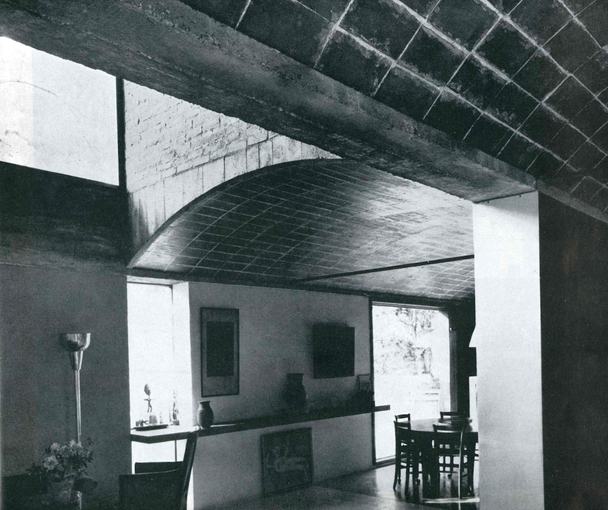 The “meritorious” work is this, that it represents a cogent bringing into focus of elements that constitute an architecture, to wit: the structural system, the choice of materials, the method of ventilation: both lighting and ventilation, and of course, the disposition of the plan which, in the case of individual clients, is complicated by small individual details.