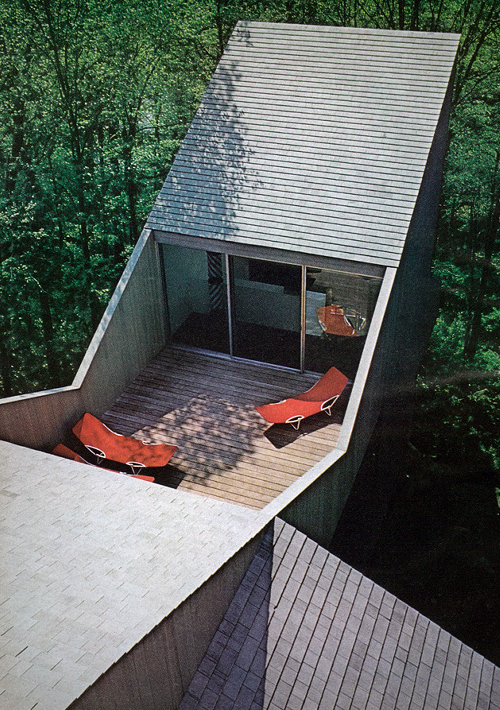 The cedar-clad house is so intensely sculptural, inside and out, and so dramatically related to its rocky, wooded site that technical considerations semm to matter little. But as the photographs and drawings presented on these four pages indicate, it is a very complicated building, no matter how rational the basis of its design.