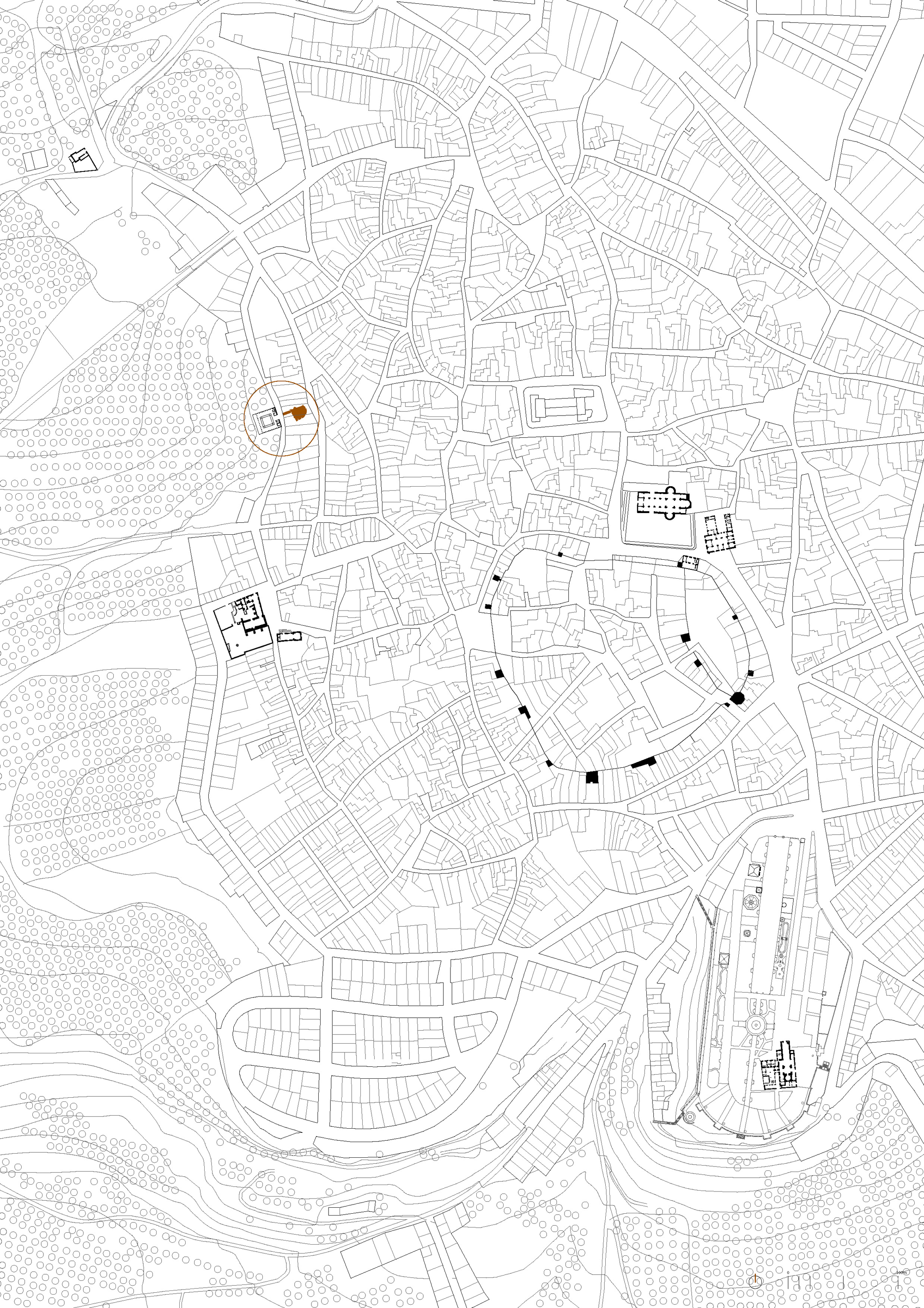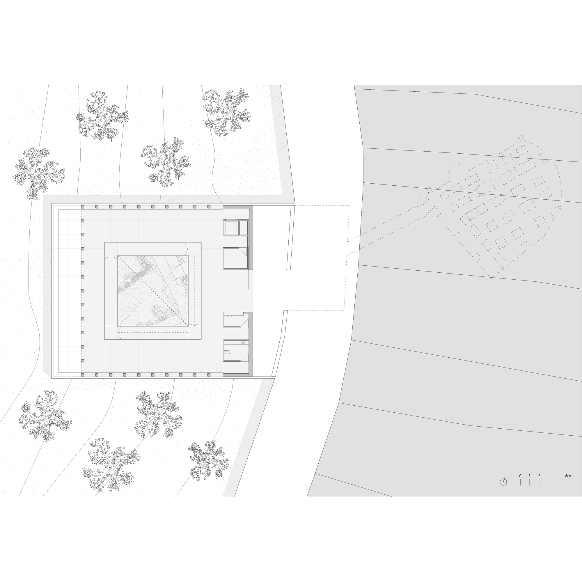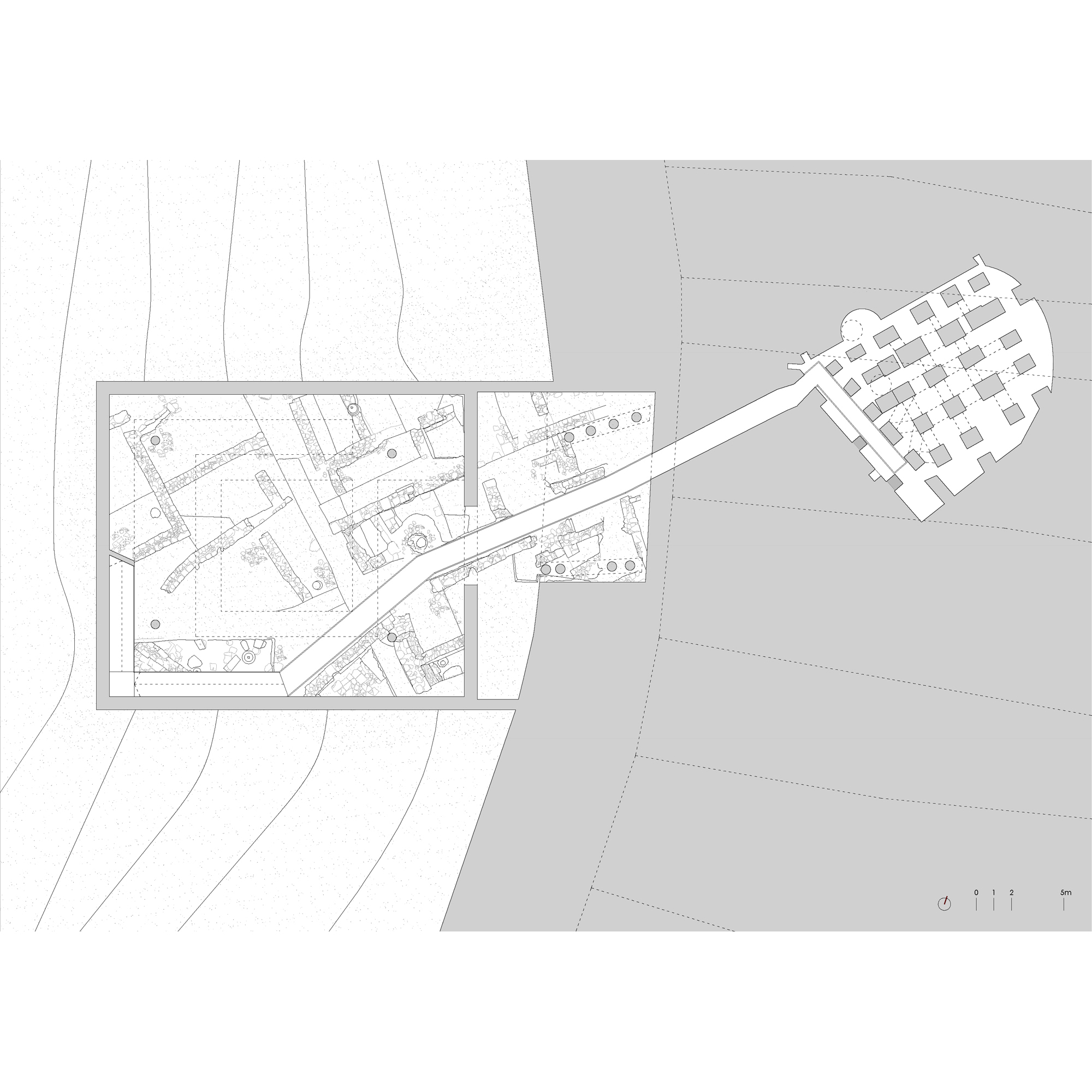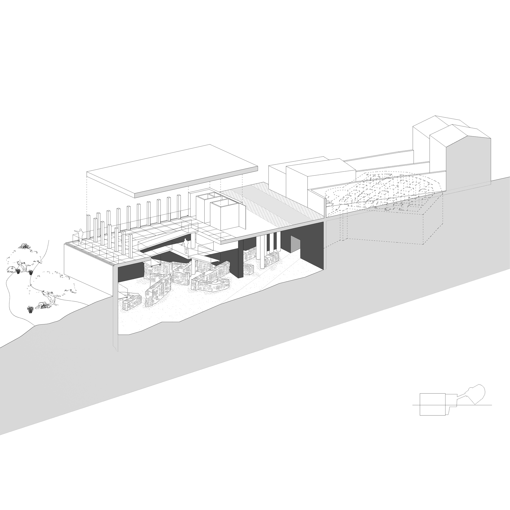 The land on which the development project is located is on the edge of the urban municipality, on a slope of what was once the epicentre of this ancient Roman city. There, the new building opens out towards the slope, forming a space which, at the same time, offers a clear reading with respect to the context in which it is situated. It serves as an iconic reference to the cistern monument itself, displayed on the lower level. The construction is closed to the domestic architectures of the area, which have irregularly formed an area devoid of the sense of heritage, inherent to the architecture of the stratum. Thus, with a clear structure, a space for light is configured as a preliminary step, before accessing the heritage world of the shadows.