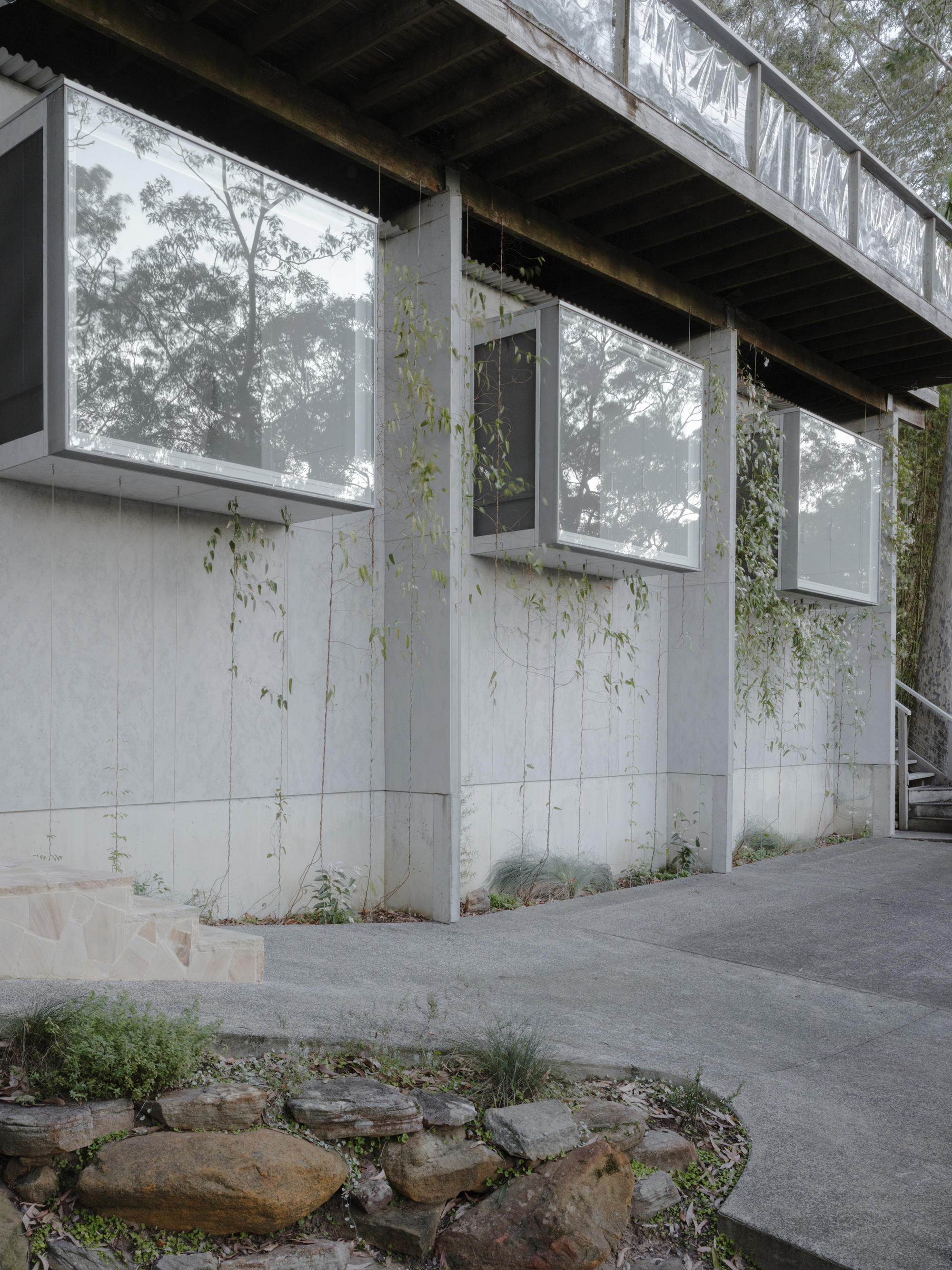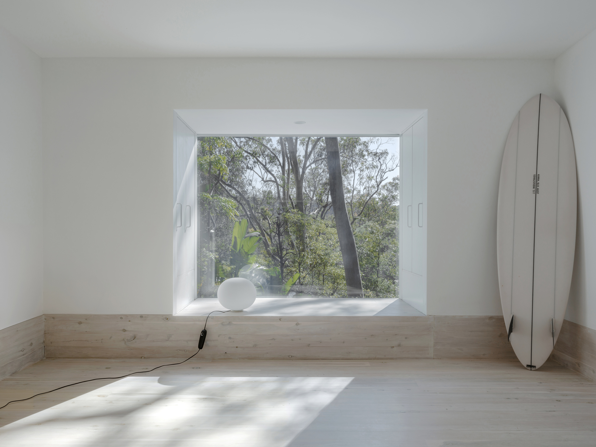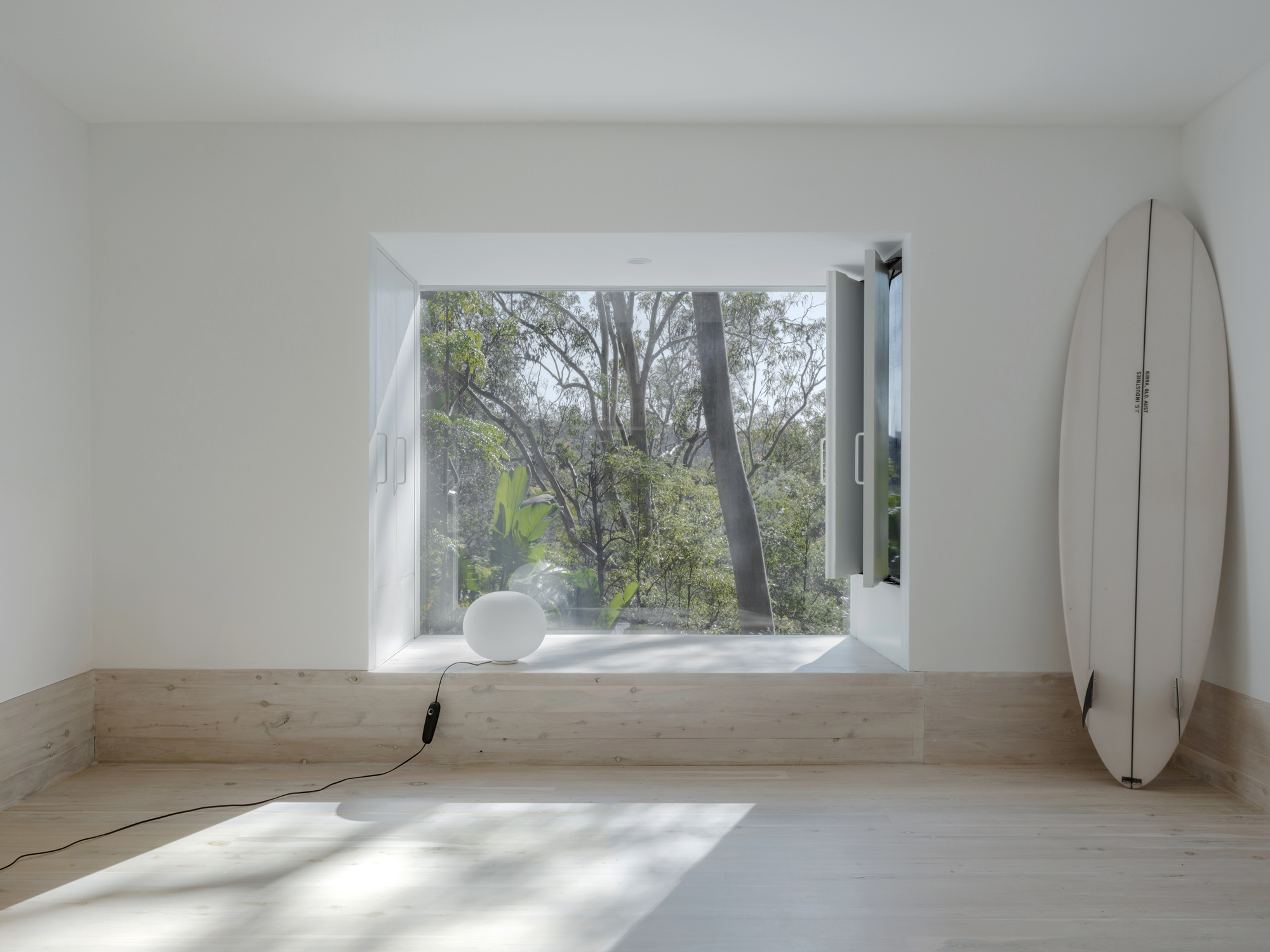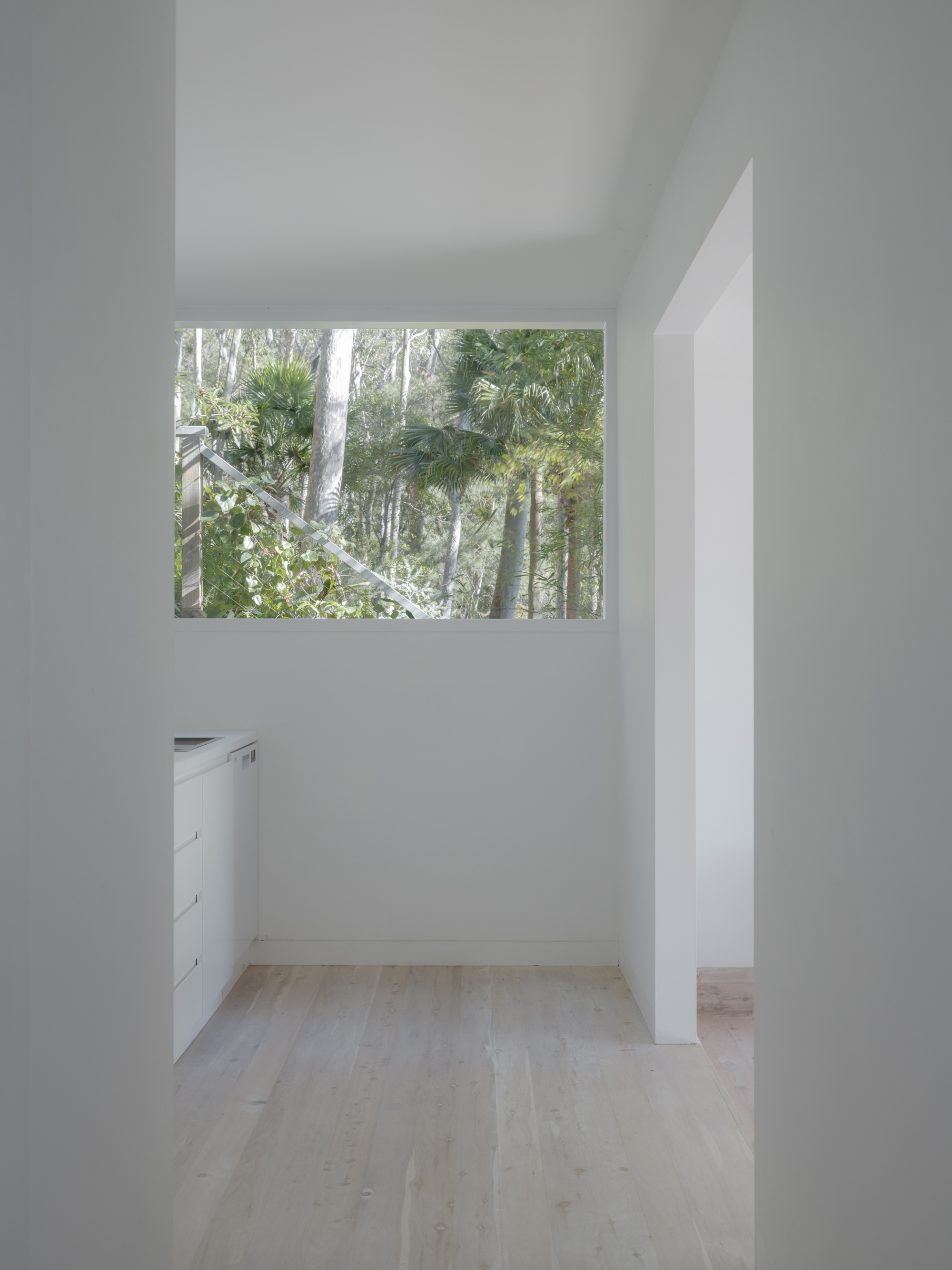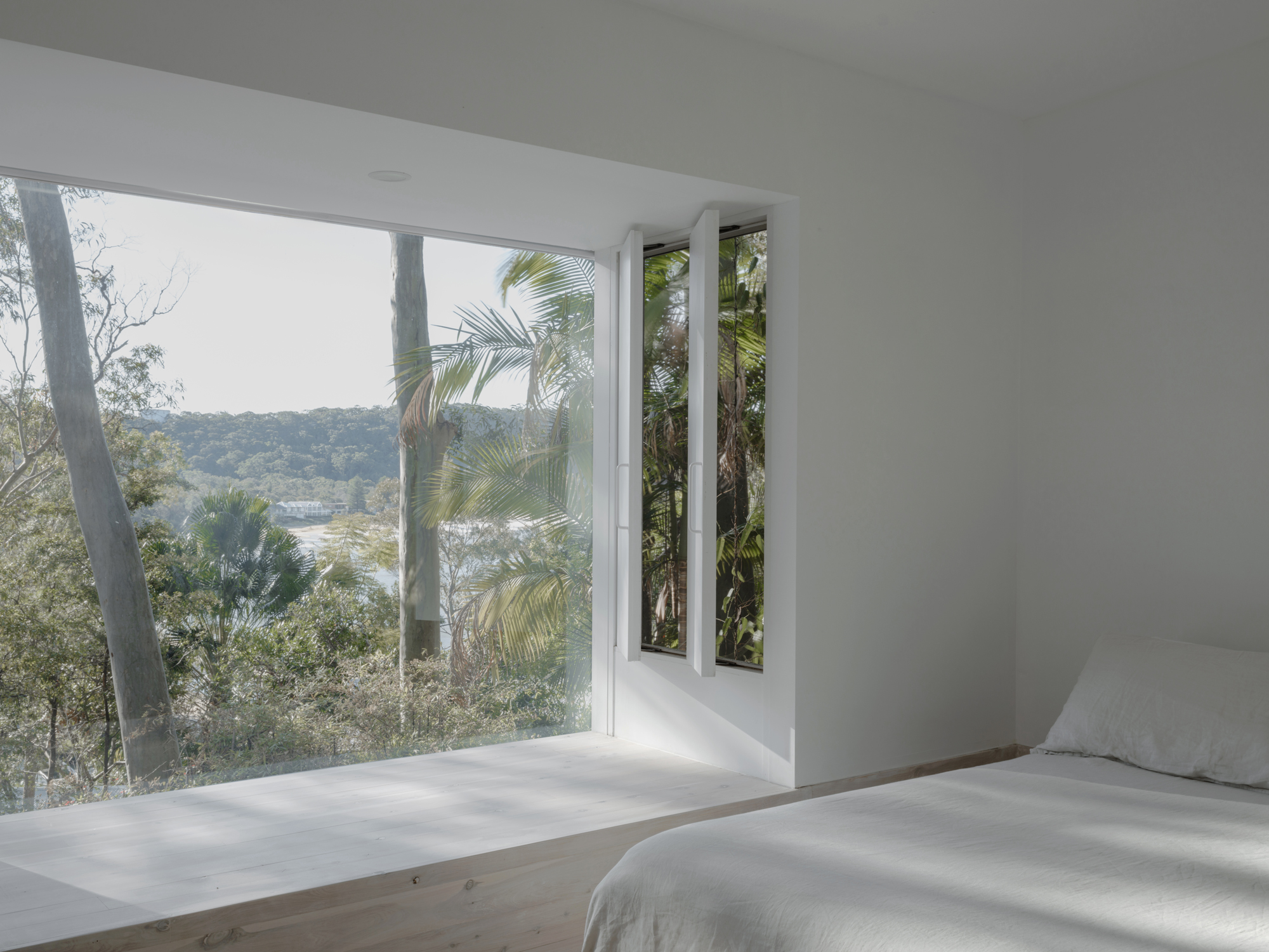The works are largely under the footprint of the existing house, so as to minimally impact the surrounding landscape. Design work encompassed carefully considered structural and construction techniques to support the house during construction. The existing deck overhang shades the new north windows in summer and allows a place to sit in the direct sunlight in winter. There is no air conditioning, instead tree canopy overhead and the north-east breezes relieve in summer. The thin floorplate with north and south ventilation hatches provides cross ventilation of all spaces, which perform well environmentally. Over the years these three small rooms in addition to an existing house by Broken Bay have become emblematic for us of the act of doing very little. A low-resolution architecture that eschews virtuosic technical making but nonetheless enables heightened experience and facilitates an enduring connection with country.
