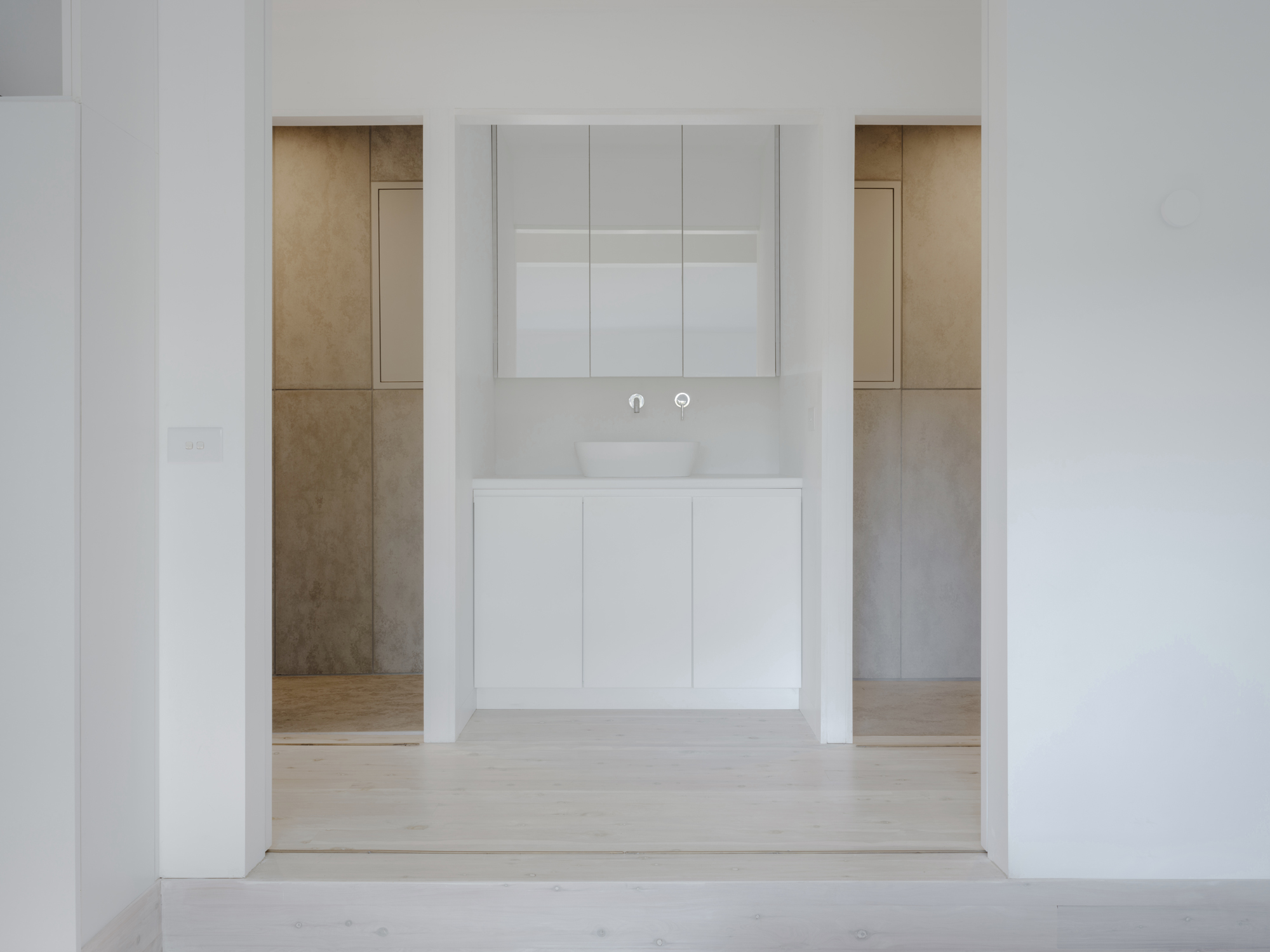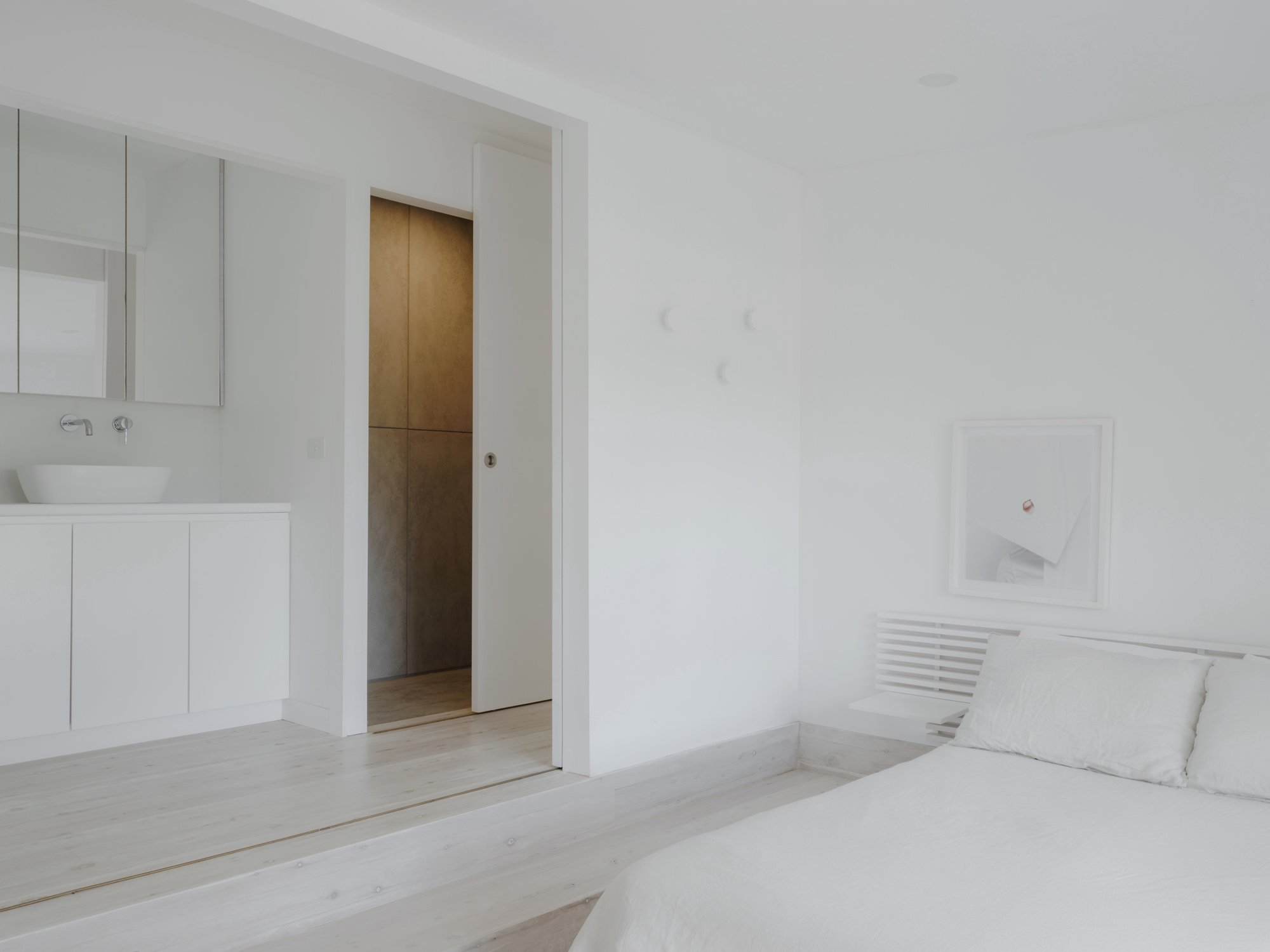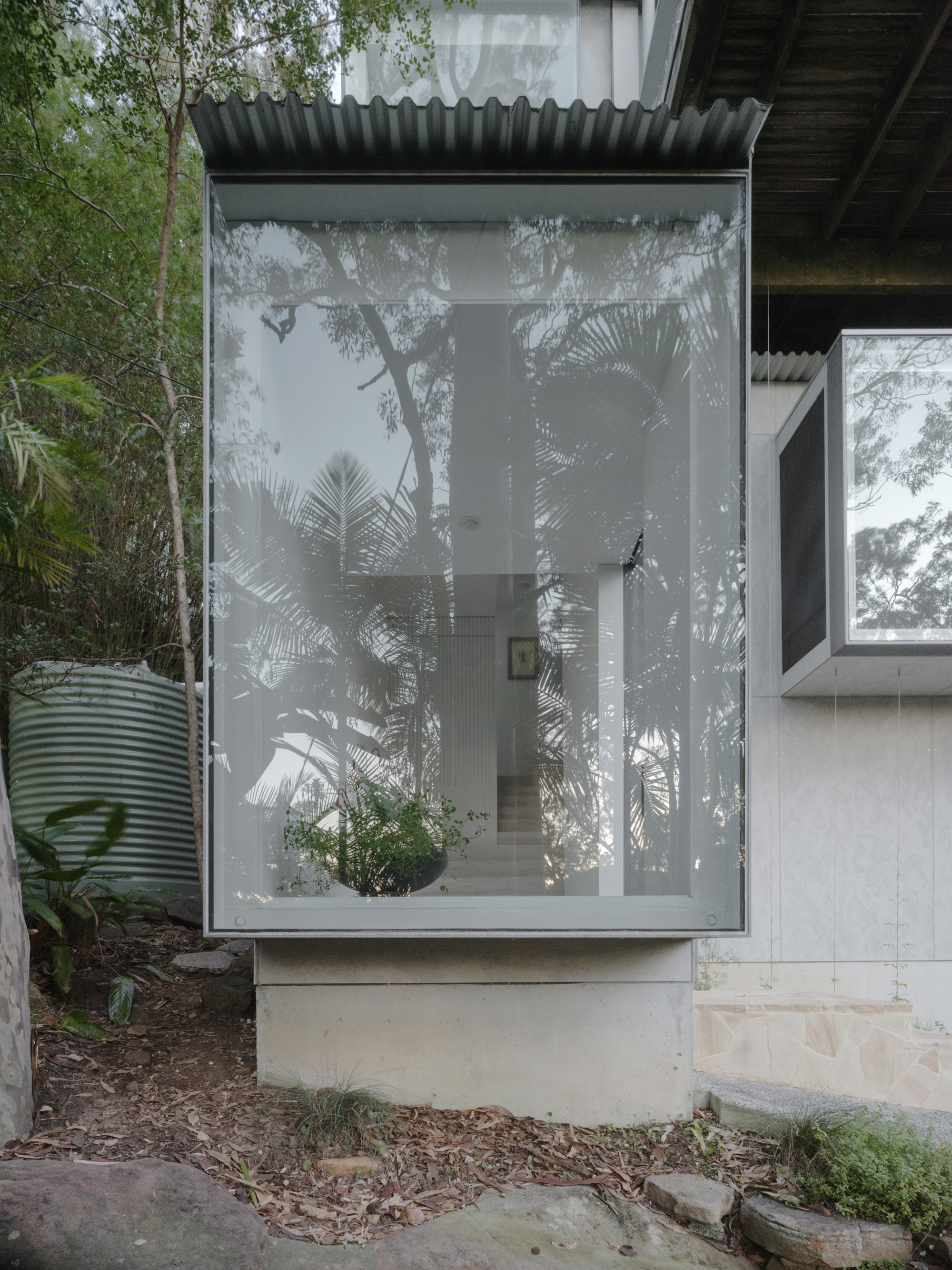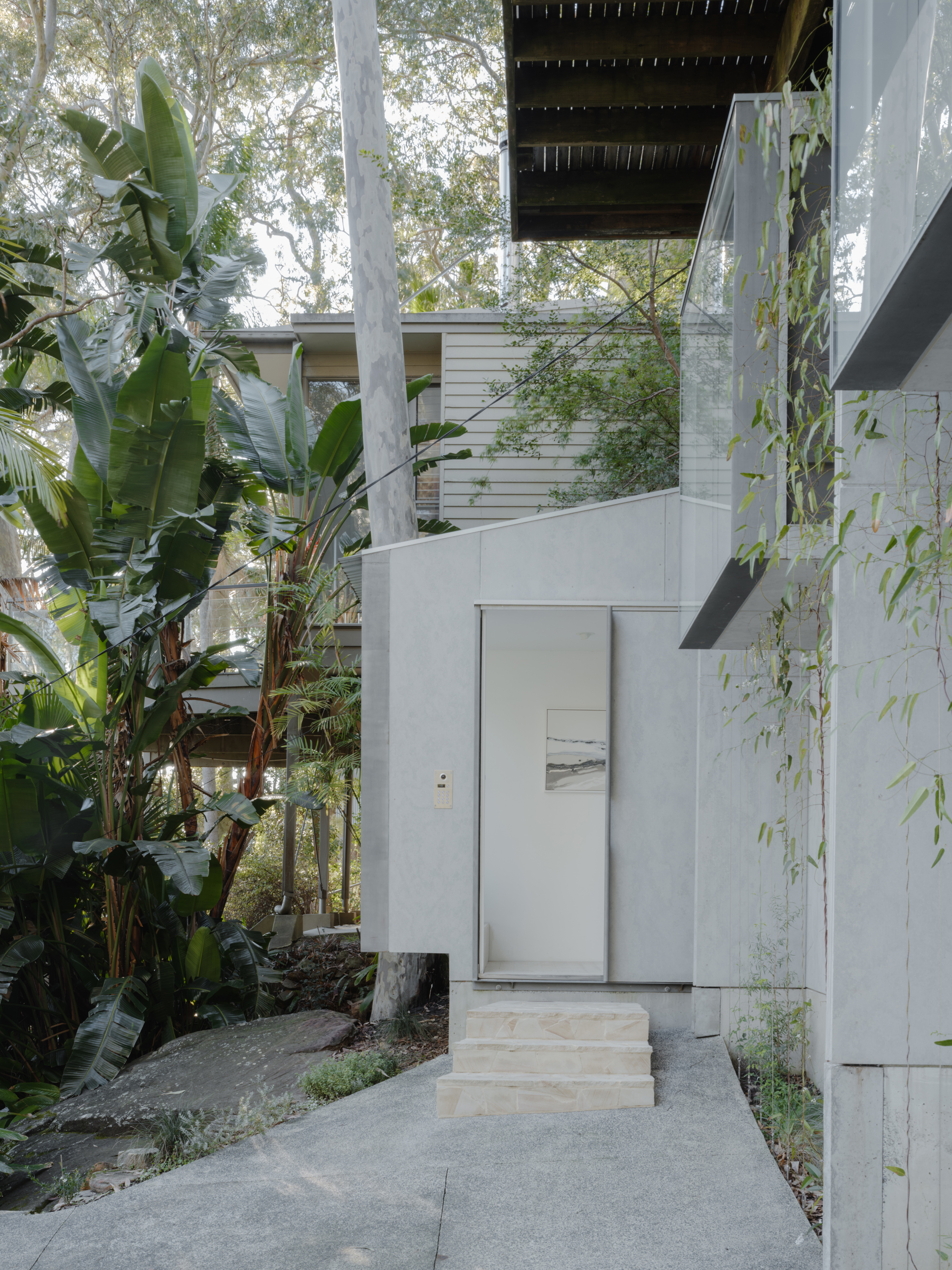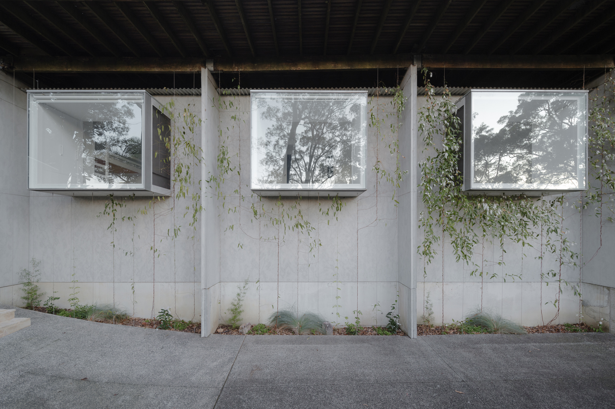The works are largely under the footprint of the existing house, so as to minimally impact the surrounding landscape. Design work encompassed carefully considered structural and construction techniques to support the house during construction. The existing deck overhang shades the new north windows in summer and allows a place to sit in the direct sunlight in winter. There is no air conditioning, instead tree canopy overhead and the north-east breezes relieve in summer. The thin floorplate with north and south ventilation hatches provides cross ventilation of all spaces, which perform well environmentally. Over the years these three small rooms in addition to an existing house by Broken Bay have become emblematic for us of the act of doing very little. A low-resolution architecture that eschews virtuosic technical making but nonetheless enables heightened experience and facilitates an enduring connection with country.