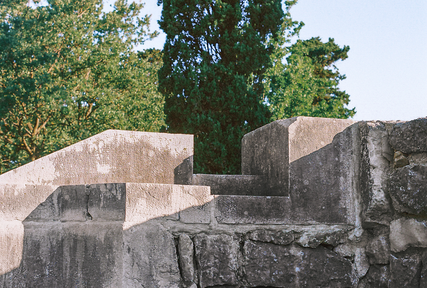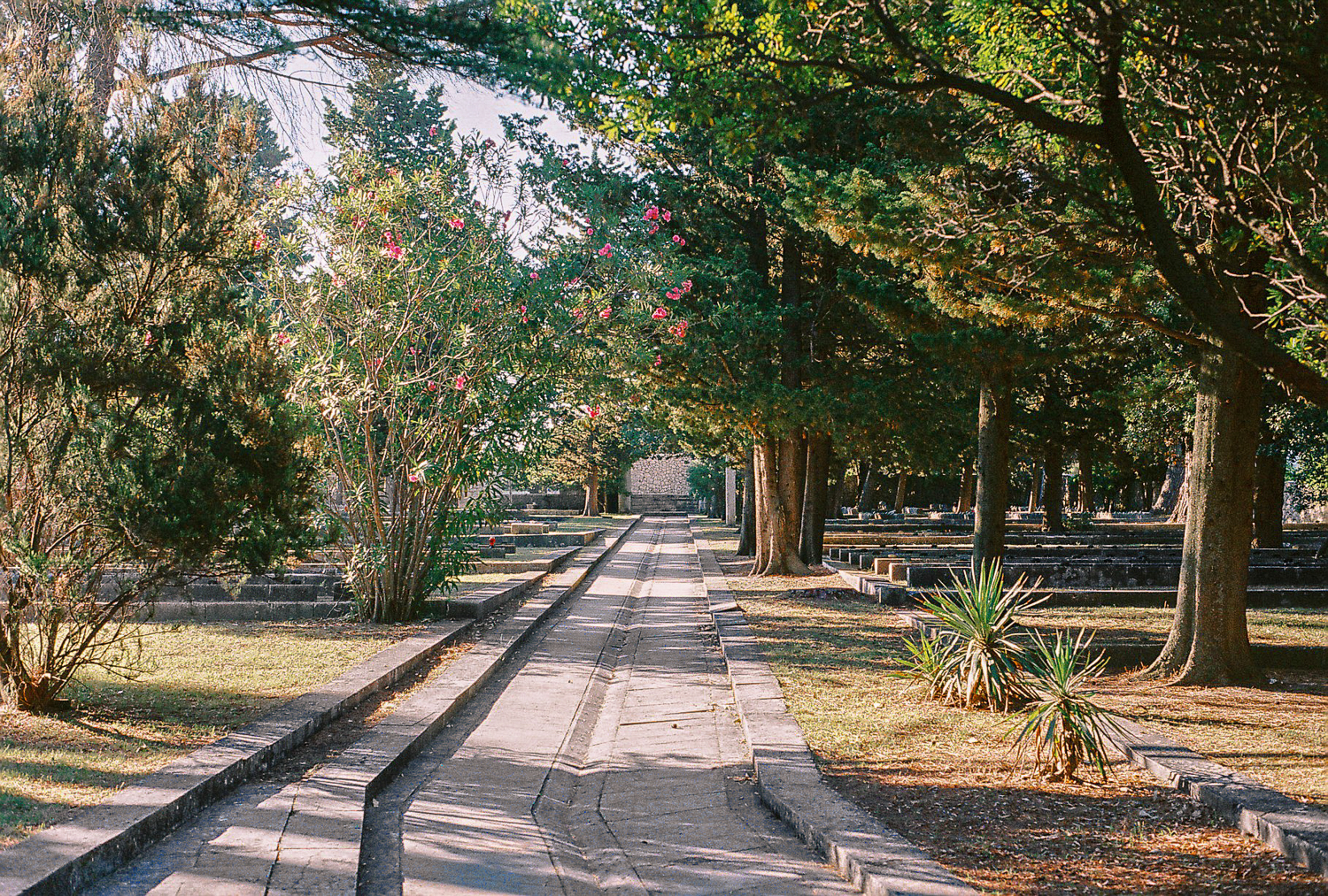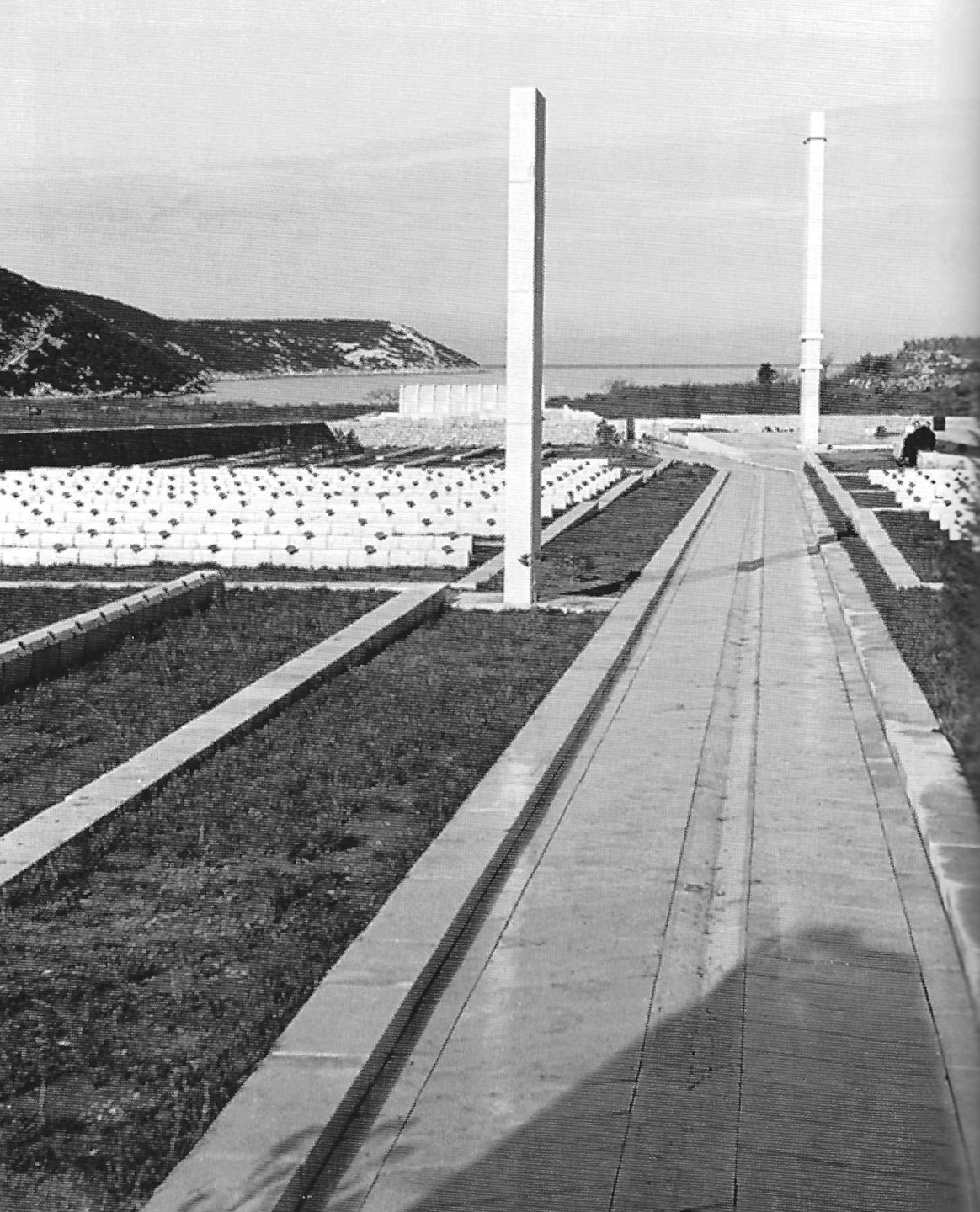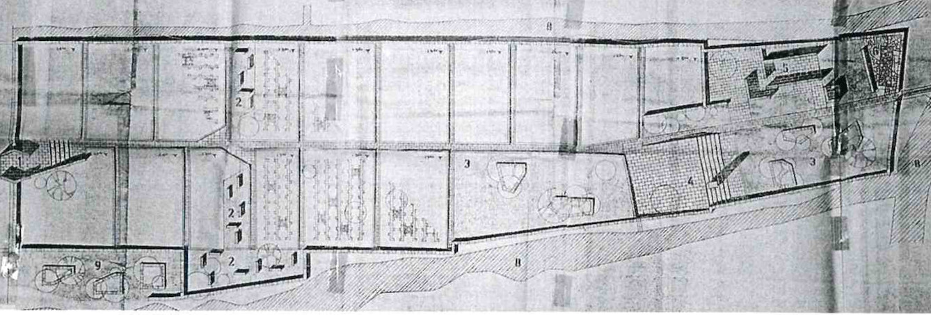 The Kampor memorial complex lies at the bottom of the valley that runs out into the sea and is therefore surrounded by slopes with lush greenery, trees and fields on both sides, with the sea and the contours of the island of Krk in the background. The concept envisages the organisation of the enclosed site in terraces, which are always horizontal to prevent any further washing away of the soil.