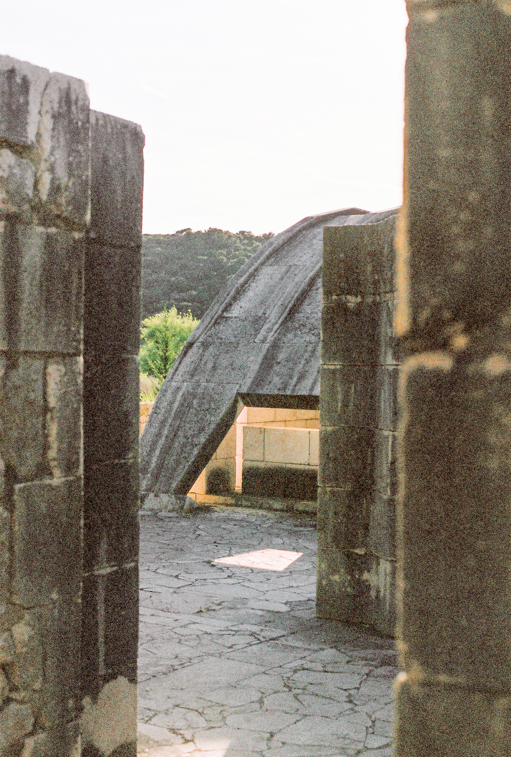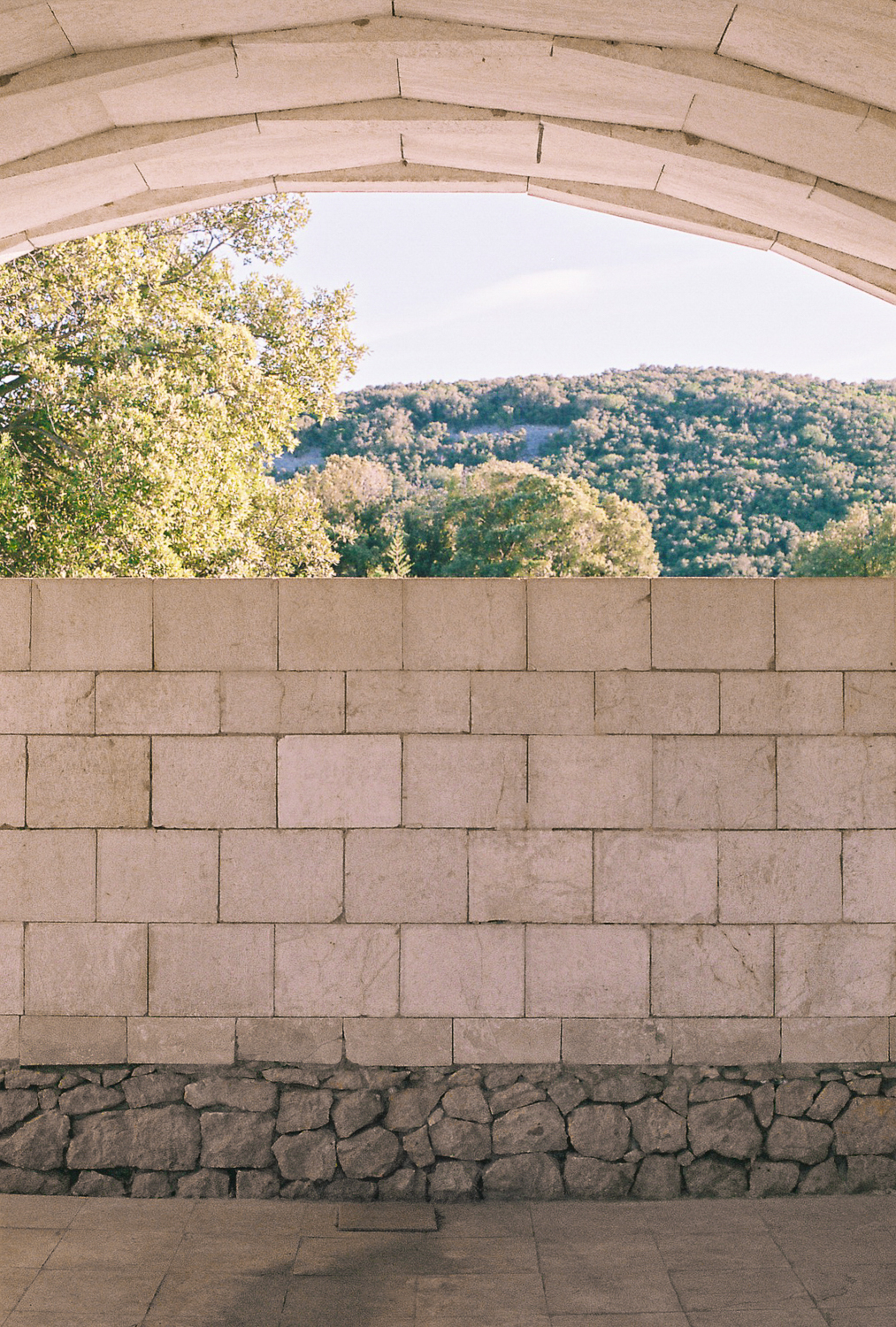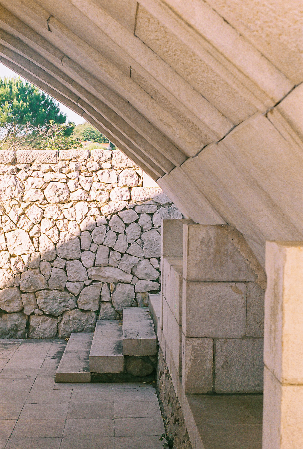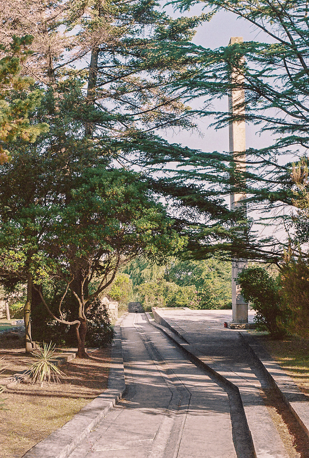 The architect tried to transfer the architectural qualities from the decorative and structural to the optical. Colour contrasts provided by the stone and the greenery of the environment and the blue of the sky, the verticals of the architecture and the horizontals of the sea, together with the composed views that connect existing landscape elements with the new are the main means that the architect uses in order to influence the visitors.