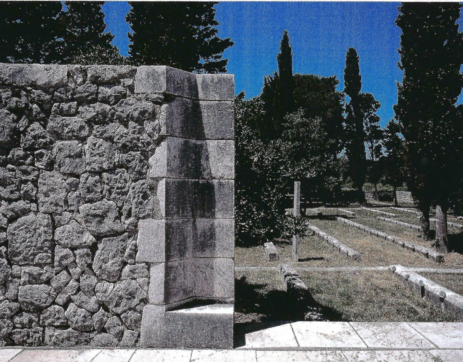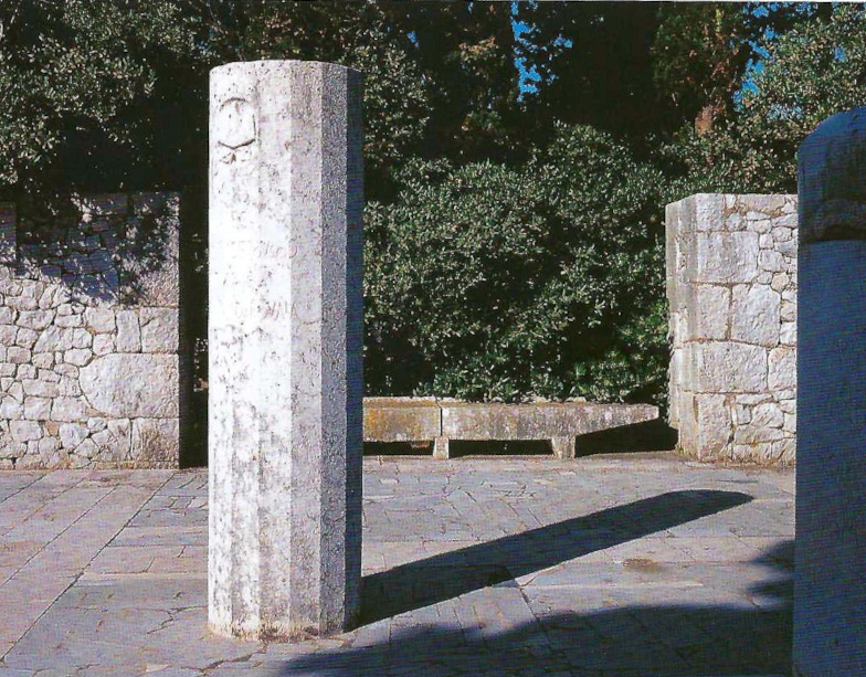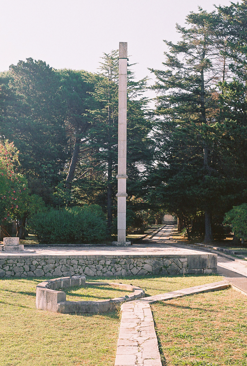 Next to the path a 12 m-high obelisk made of large stone blocks is positioned as a visual landmark. Due to the great force of the bora wind the stone blocks are connected with a wire all the way up to the last-but-one stone.