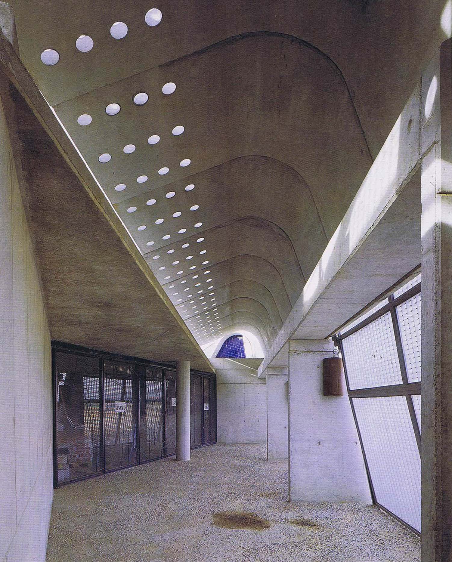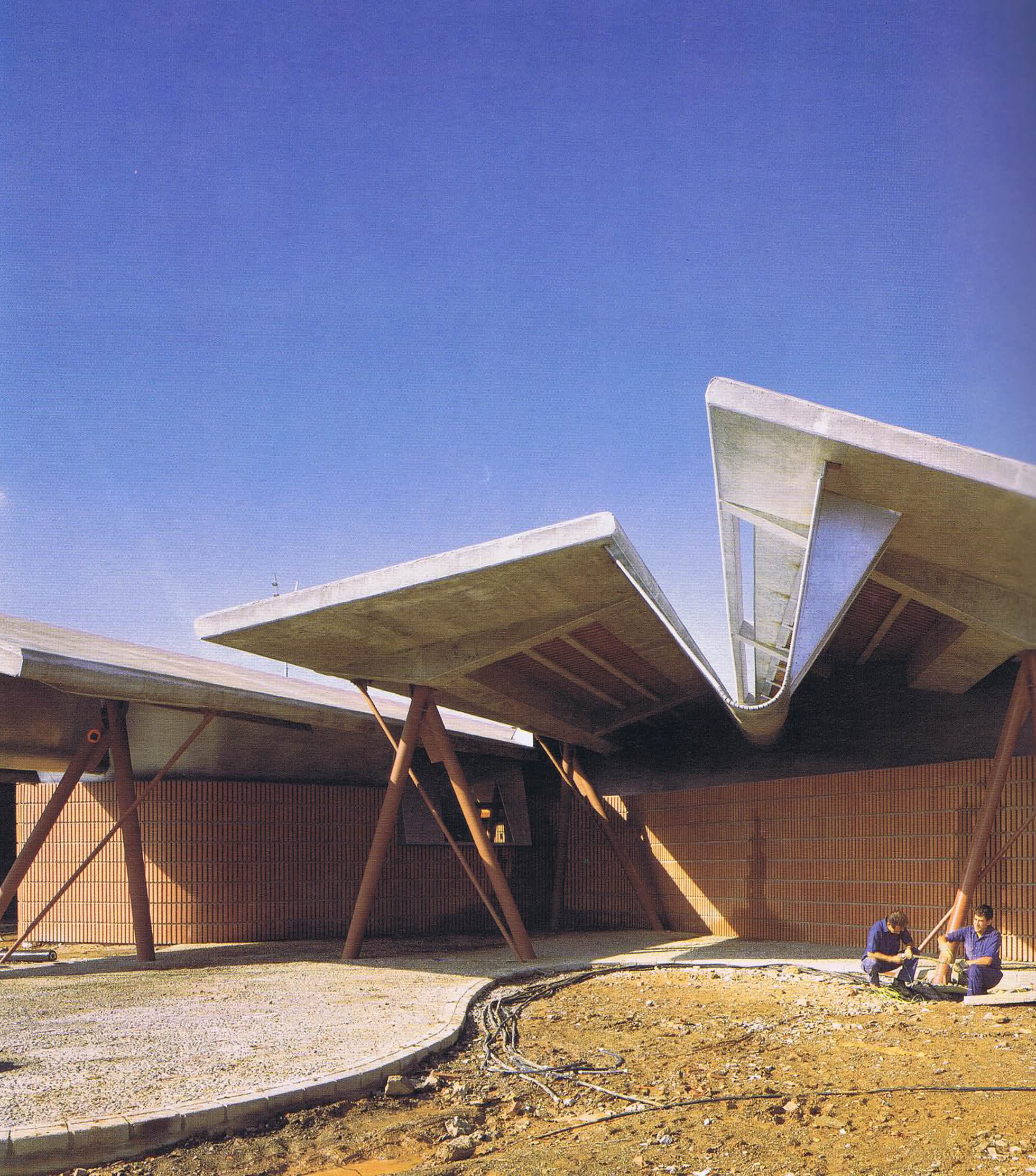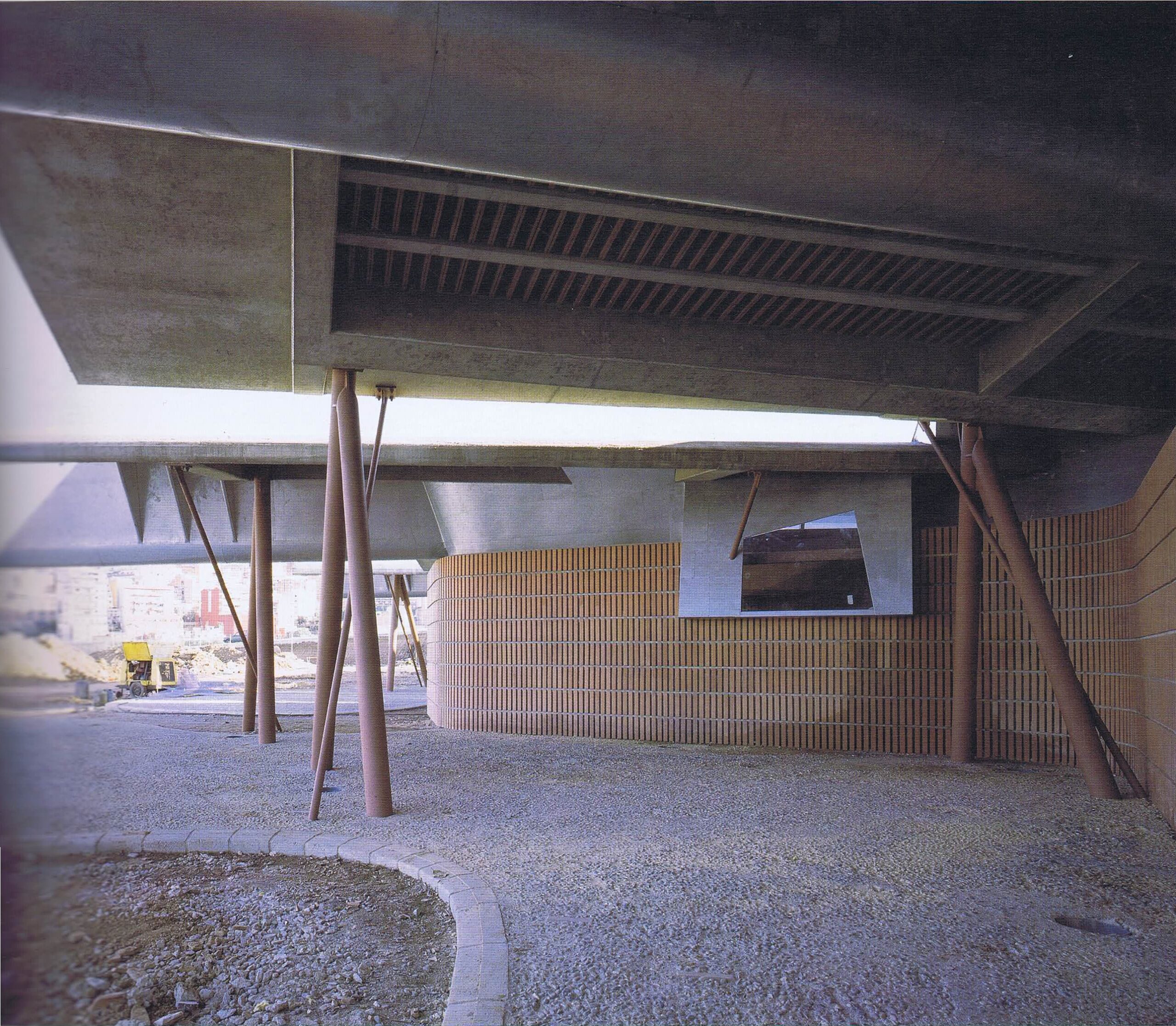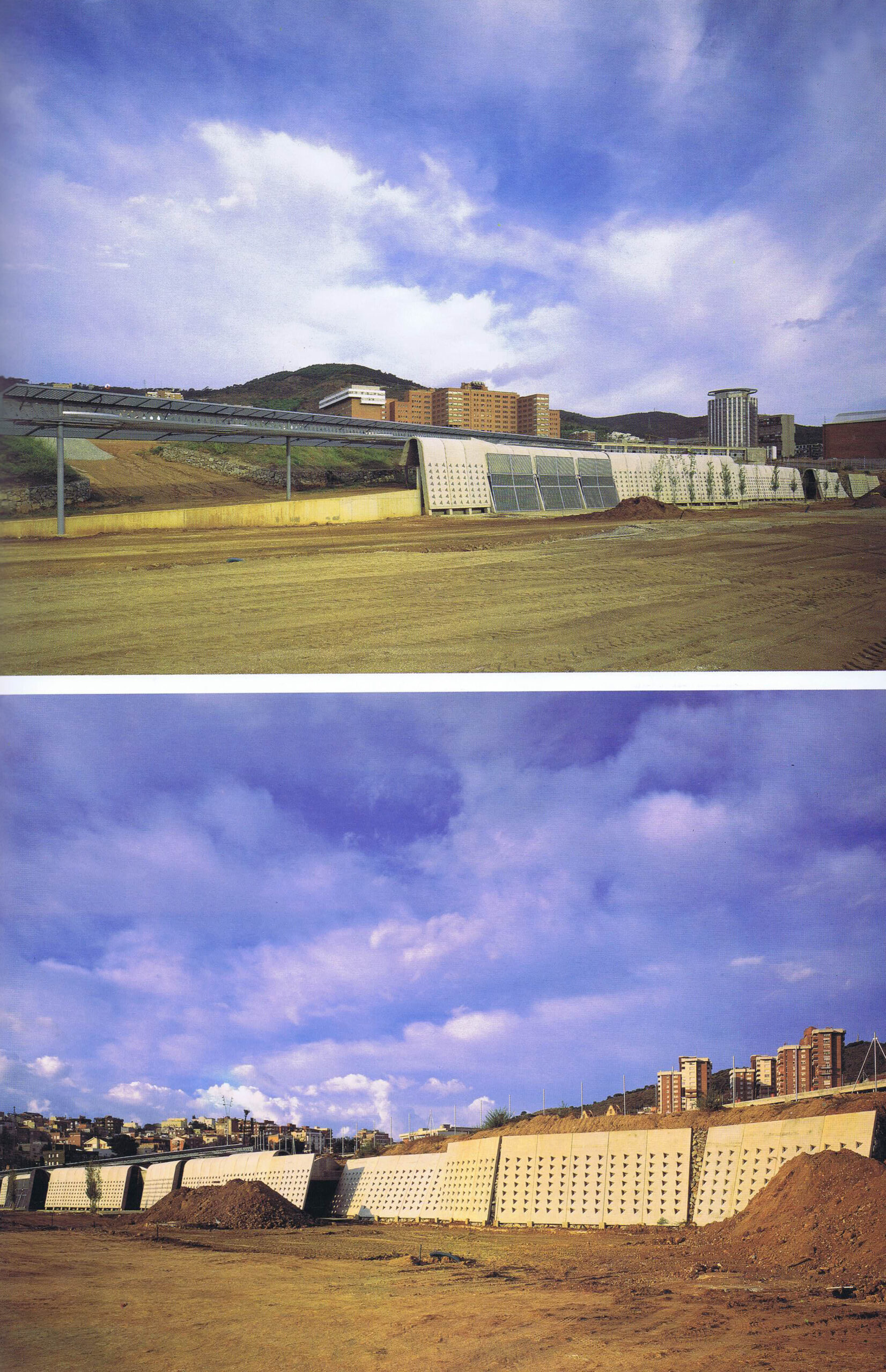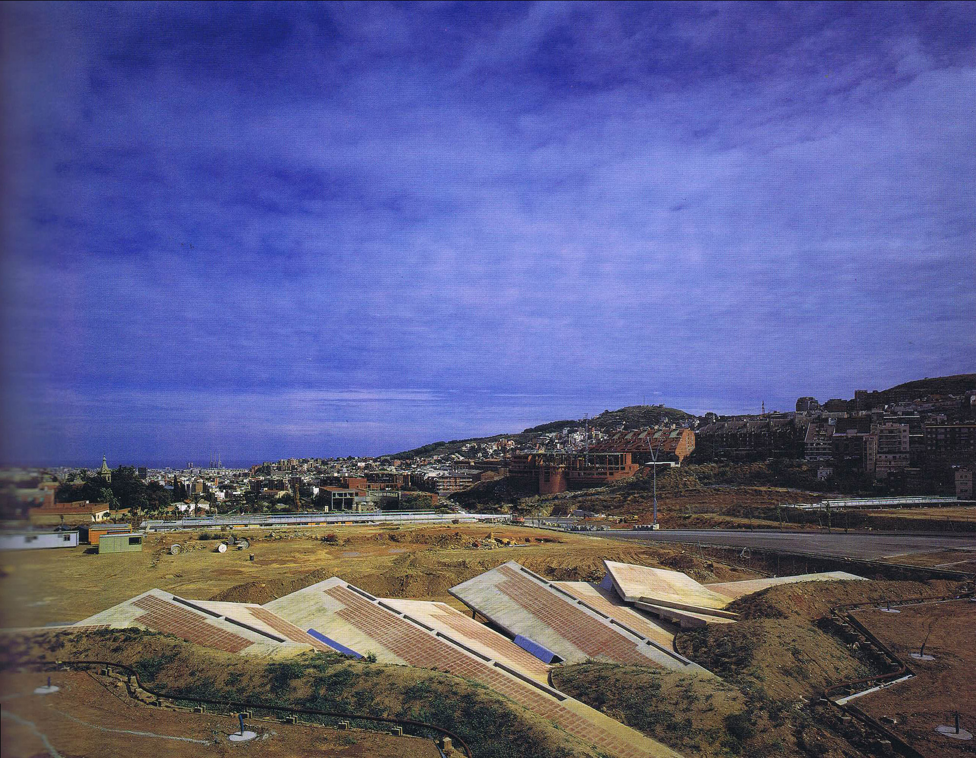 Por eso, durante la construcción se han producido varios desplazamientos que lo acercan al lugar: en el edificio de entrenamiento, las cubiertas buscan relacionarse con la emergente vegetación del complejo Marti-Codolar situado en las plataformas inferiores… Y en el de competición, los prefabricados de hormigón se acercan al desorden y fraccionamiento de las zonas de autoinstrucción laterales del parque.