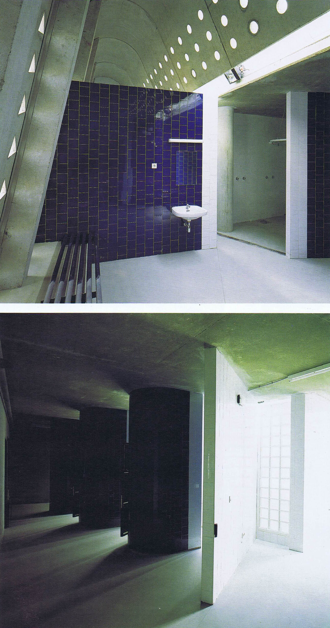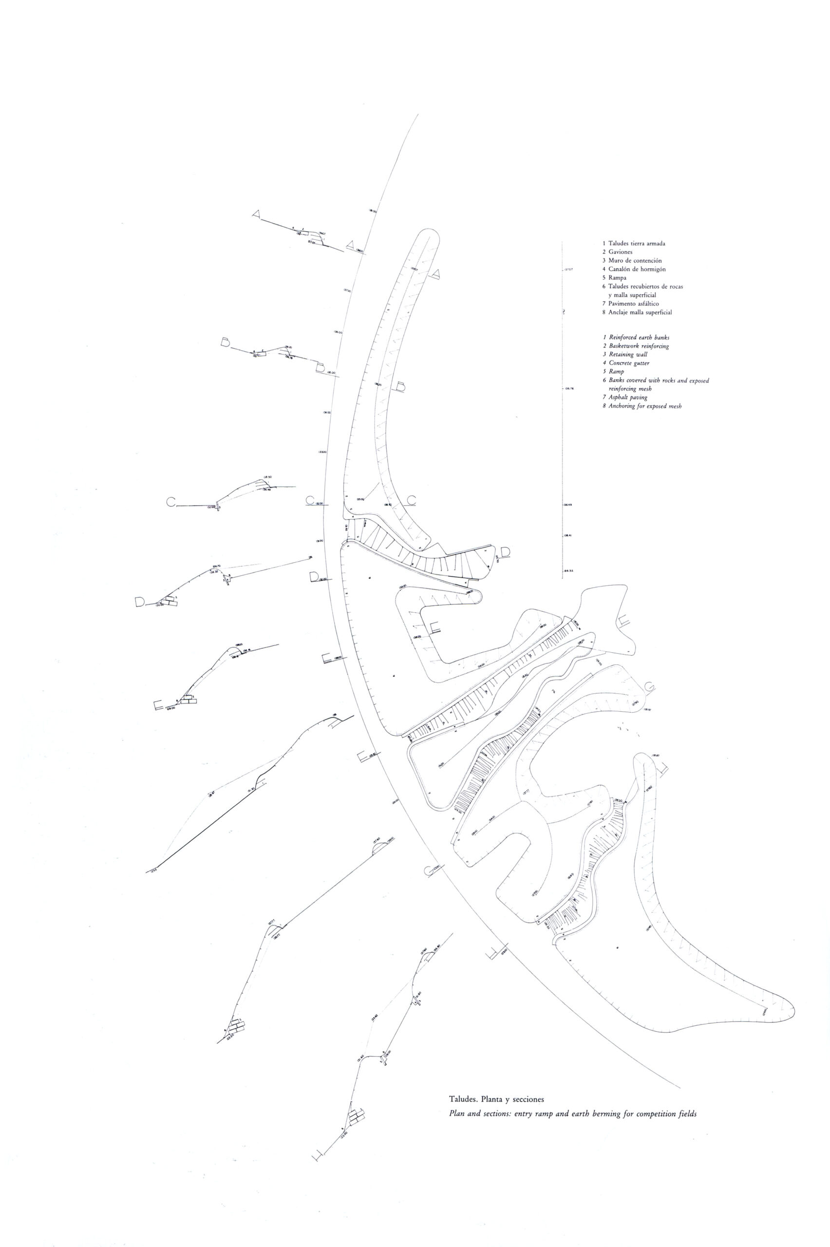 Sin embargo, ambos se pliegan a distintos ritmos de ocupación: el edificio para entrenamiento sigue casi los movimientos de los atletas -es un porche que se mira a sí mismo-, mientras que el edificio de competición distribuye en su cota superior los 4.000 espectadores que acudirán a las pruebas.