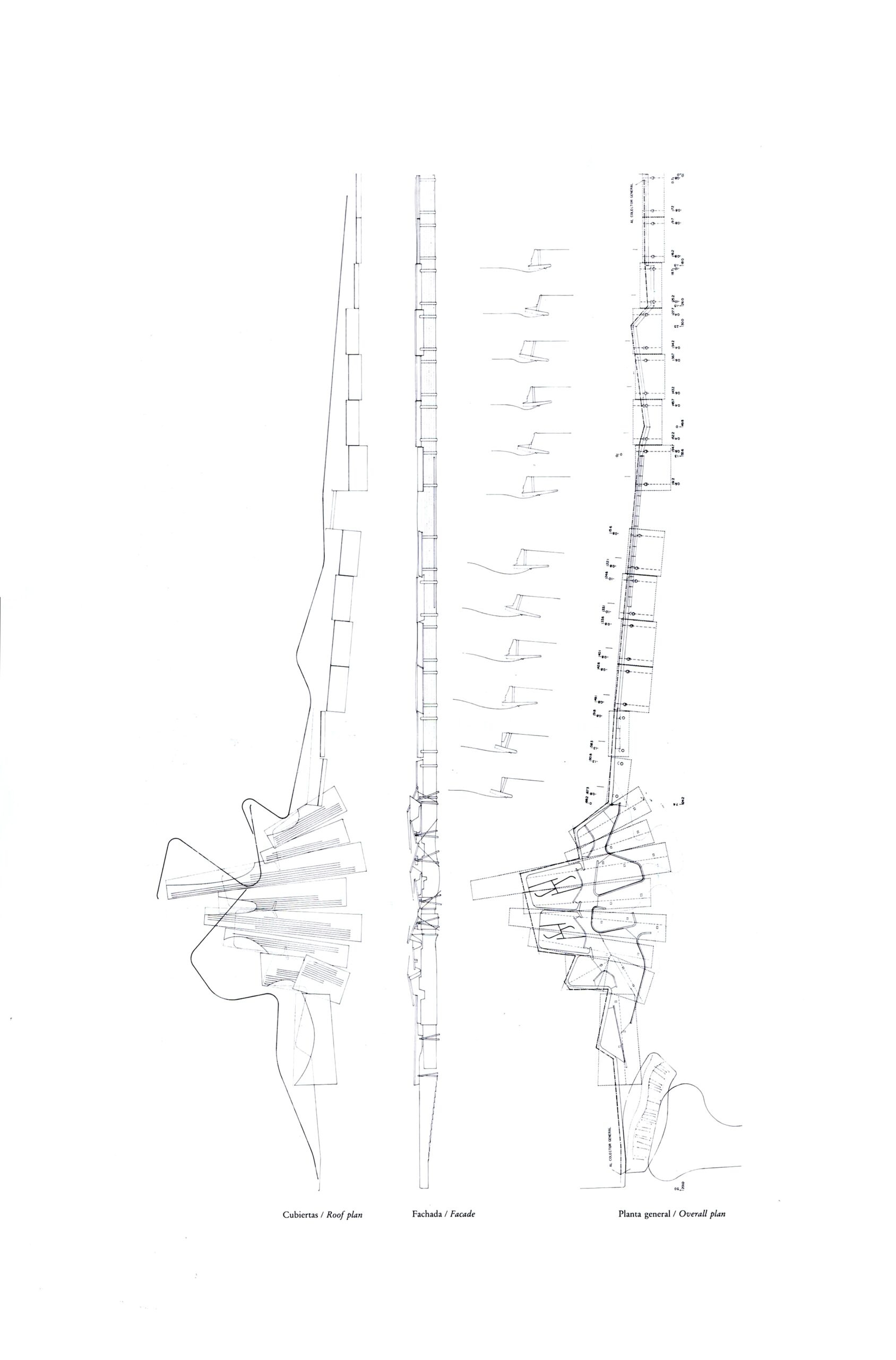 Es un proyecto que aparece y se forma en un instante. Se pliega, como en un calco, sobre las condiciones del talud y del programa, probando a ser un interior. Un lugar protegido, indiferente.