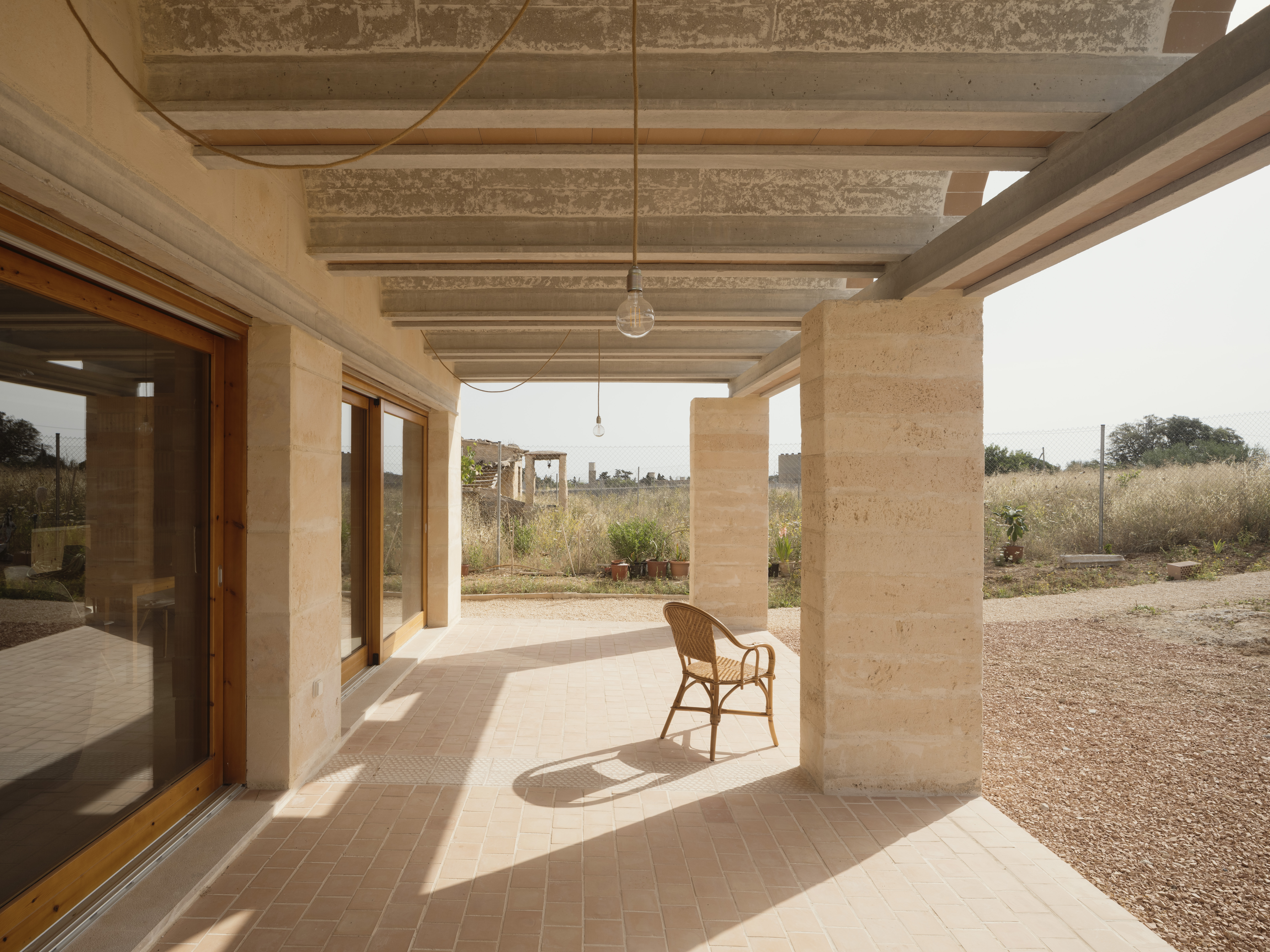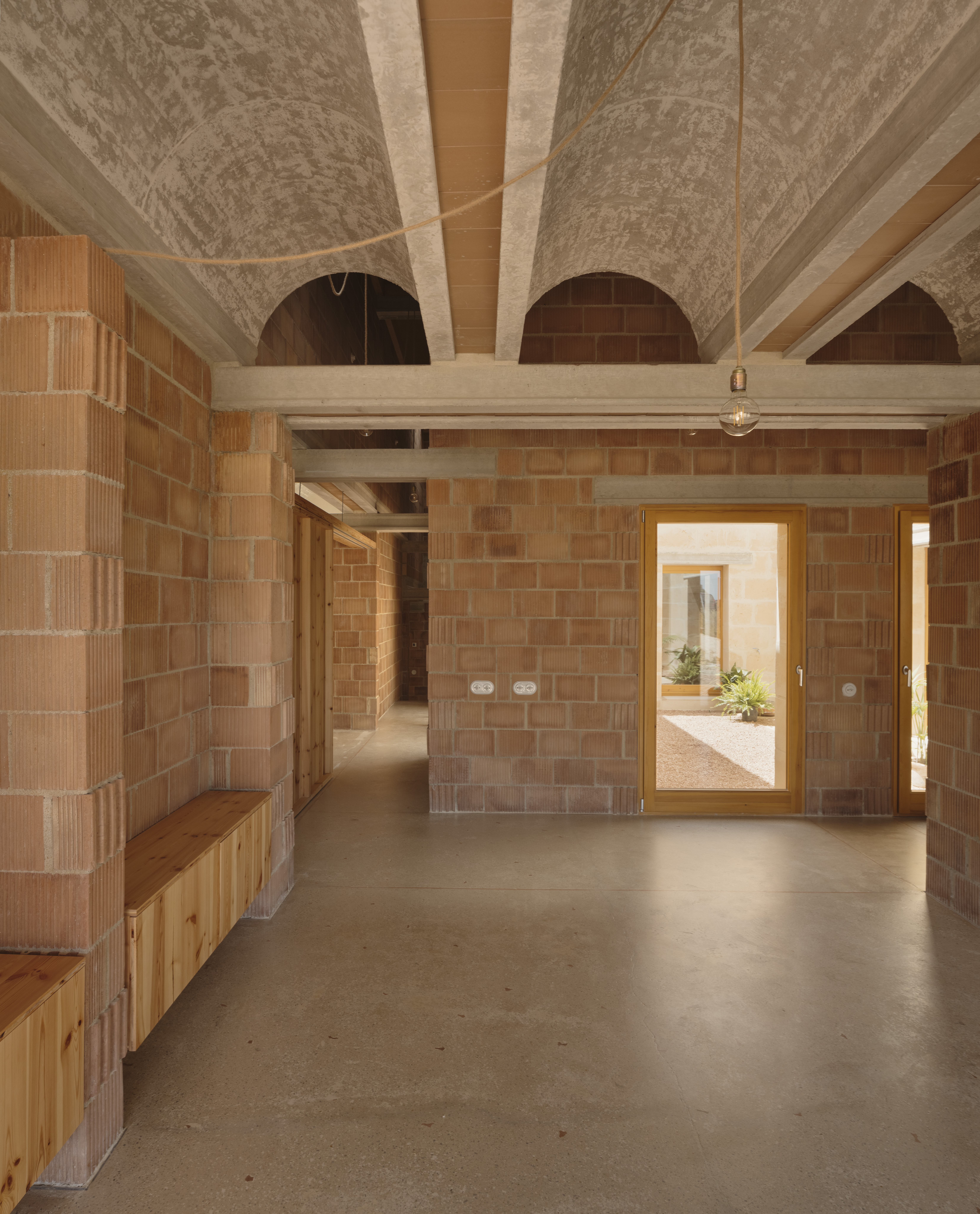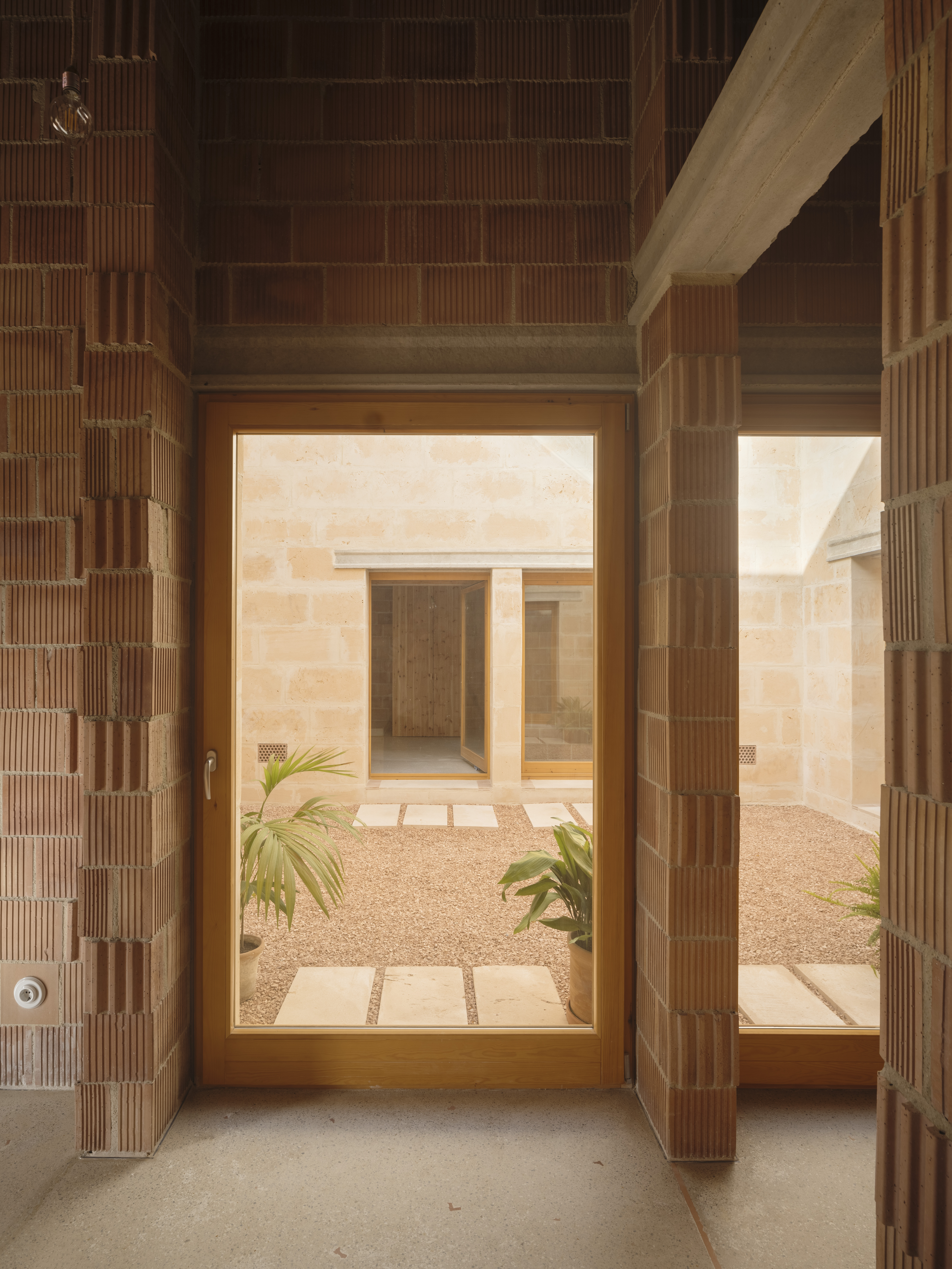 Ca na Catalina i en Joan se ordena en forma de cruz alrededor de un patio. El patio mejora las condiciones de iluminación natural y potencia el movimiento del aire. La geometría en cruz permite que todas las estancias disfruten de un pequeño espacio exterior recogido e íntimo.